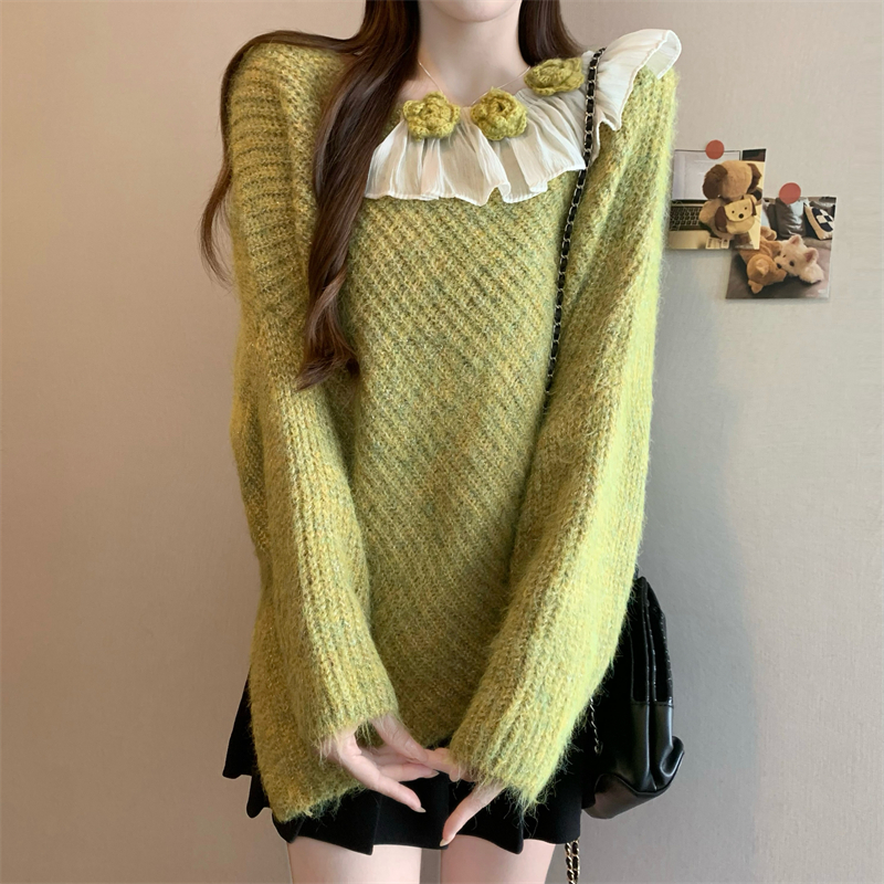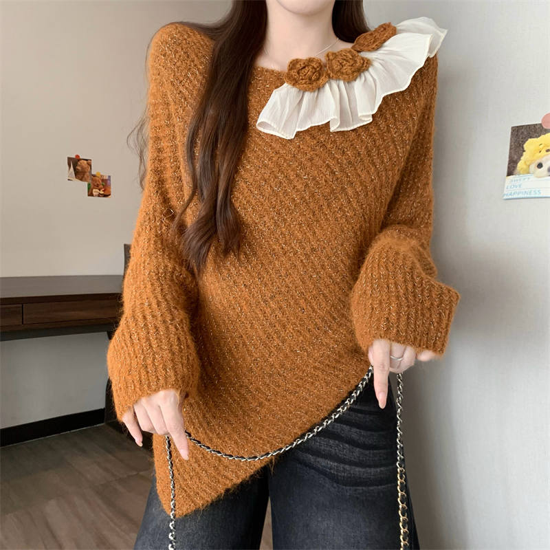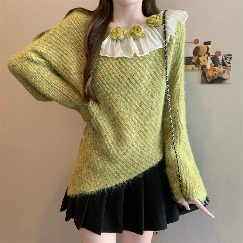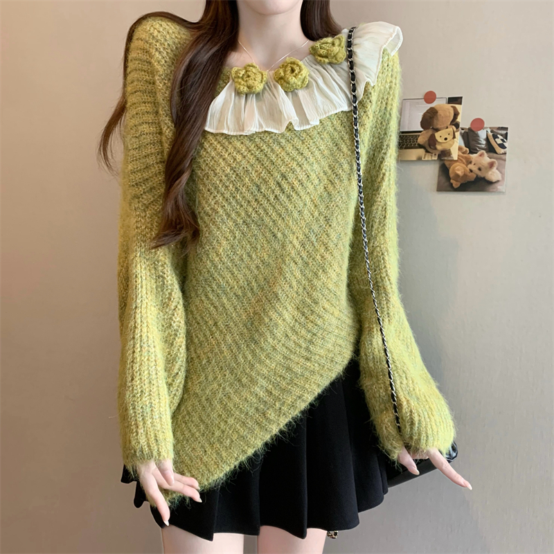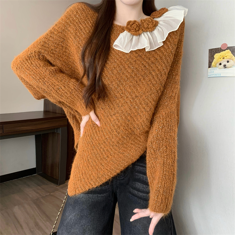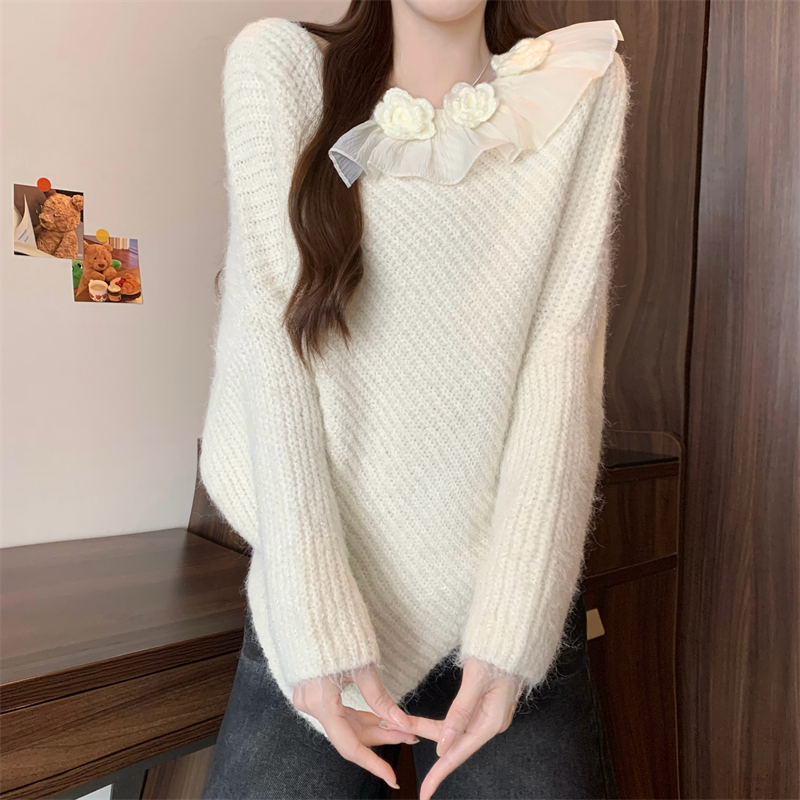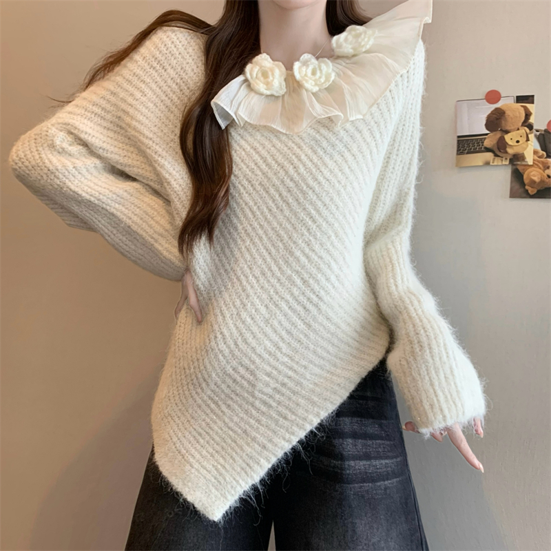 MY14458# 新版韩风设计感不规则立体花朵针织衫毛衣女裝貨源服裝批發