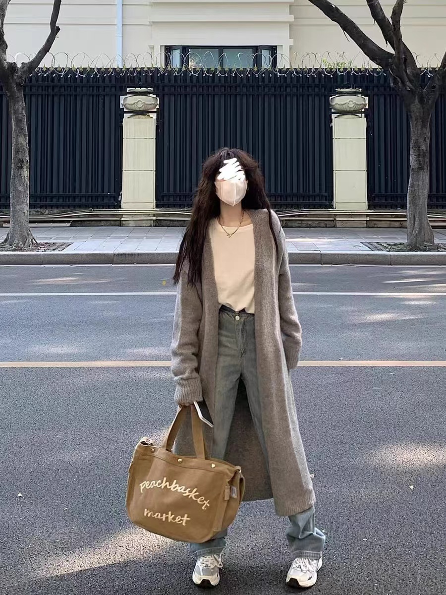 MY14518# 中长款过膝毛衣外套女秋冬季慵懒风加厚百搭针织衫开衫大衣女裝貨源服裝批發