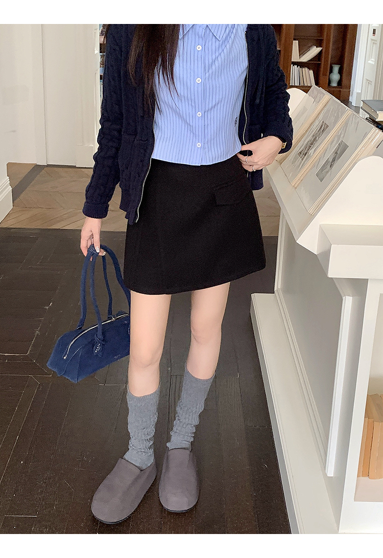 MY14528# 新款胖mm大码女百搭气质显瘦a字短裙西装毛呢半身裙女裝貨源服裝批發