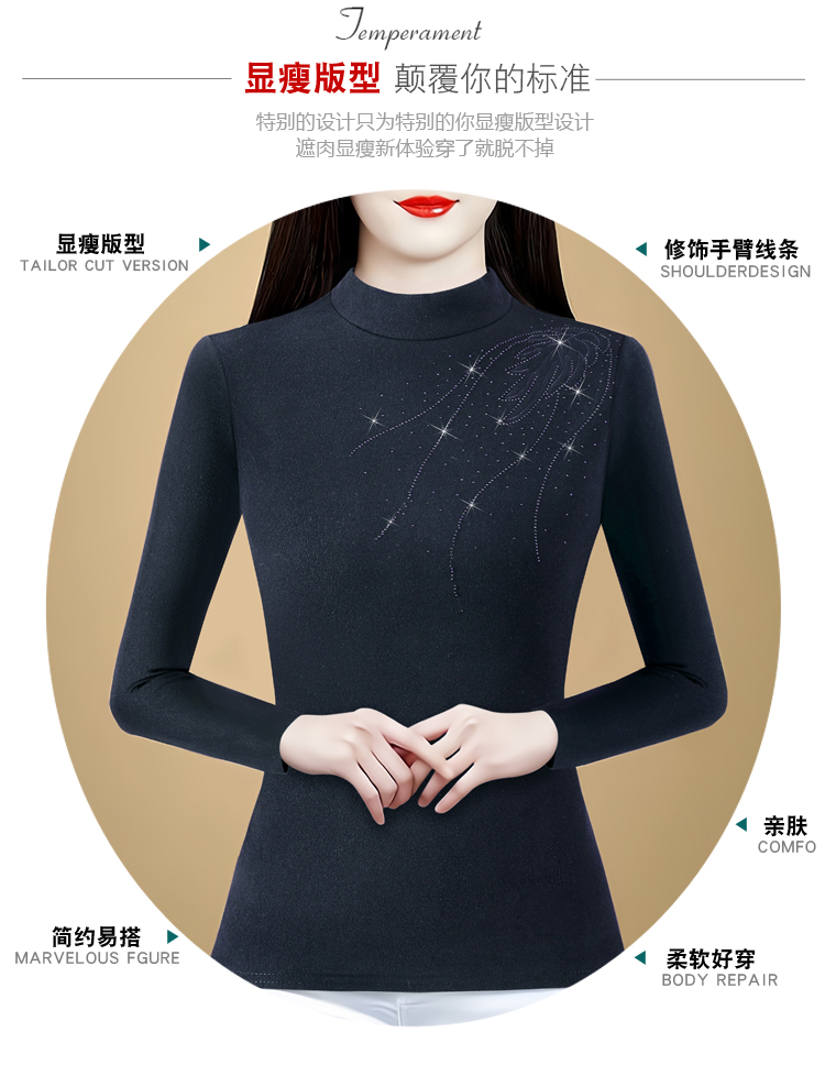 MY14599# 洋气打底衫新款保暖内搭女加绒加厚小衫长袖打底衣女裝貨源服裝批發
