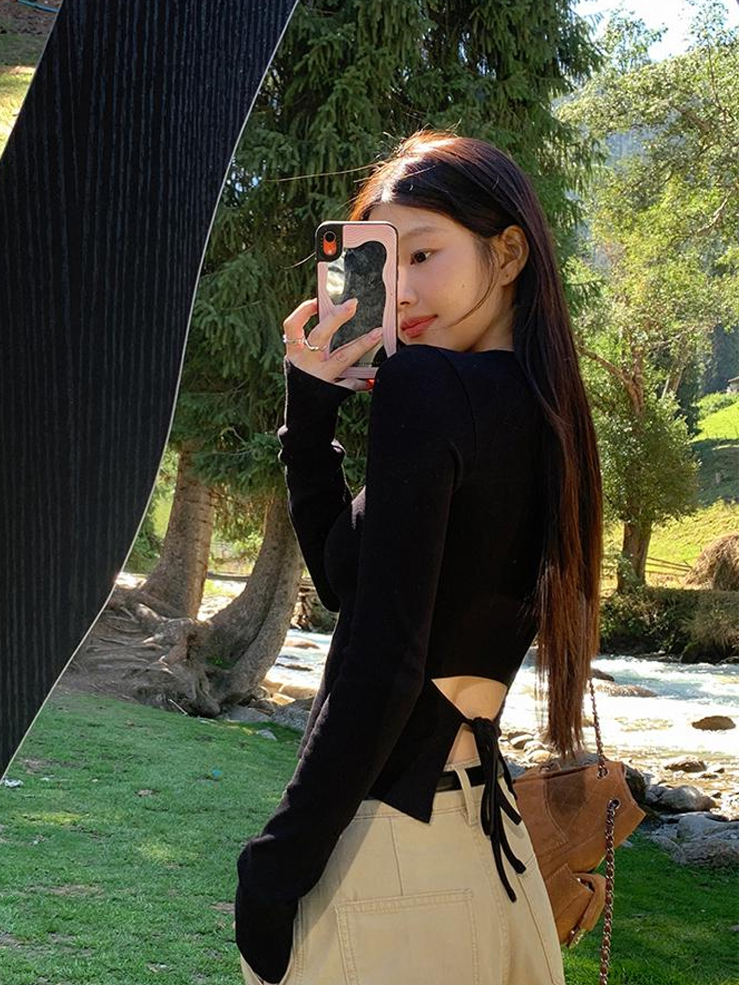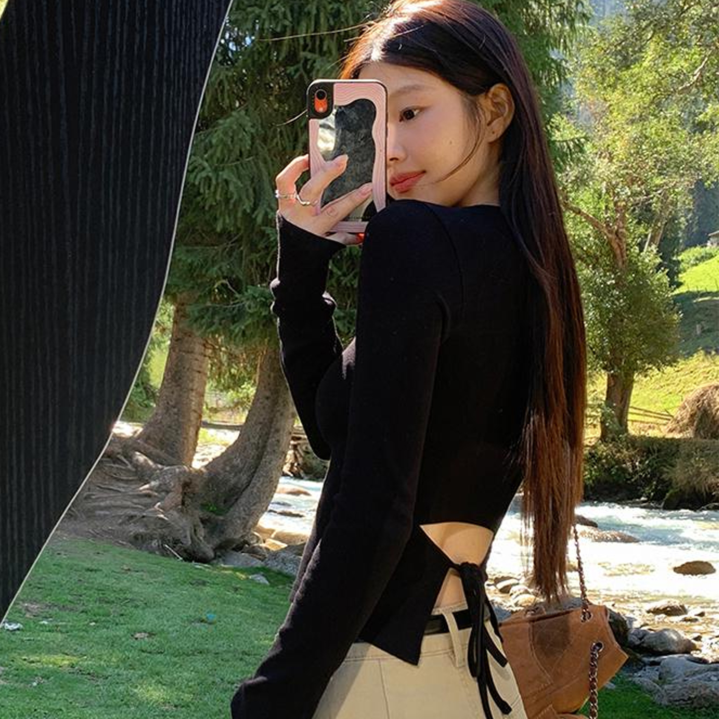 MY14609# 仿棉螺纹 辣妹长袖打底衫t恤女秋设计感露腰内搭小上衣女裝貨源服裝批發