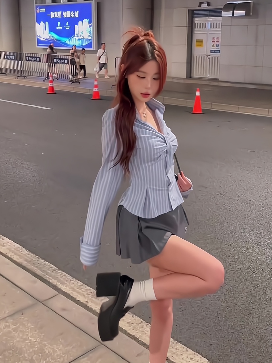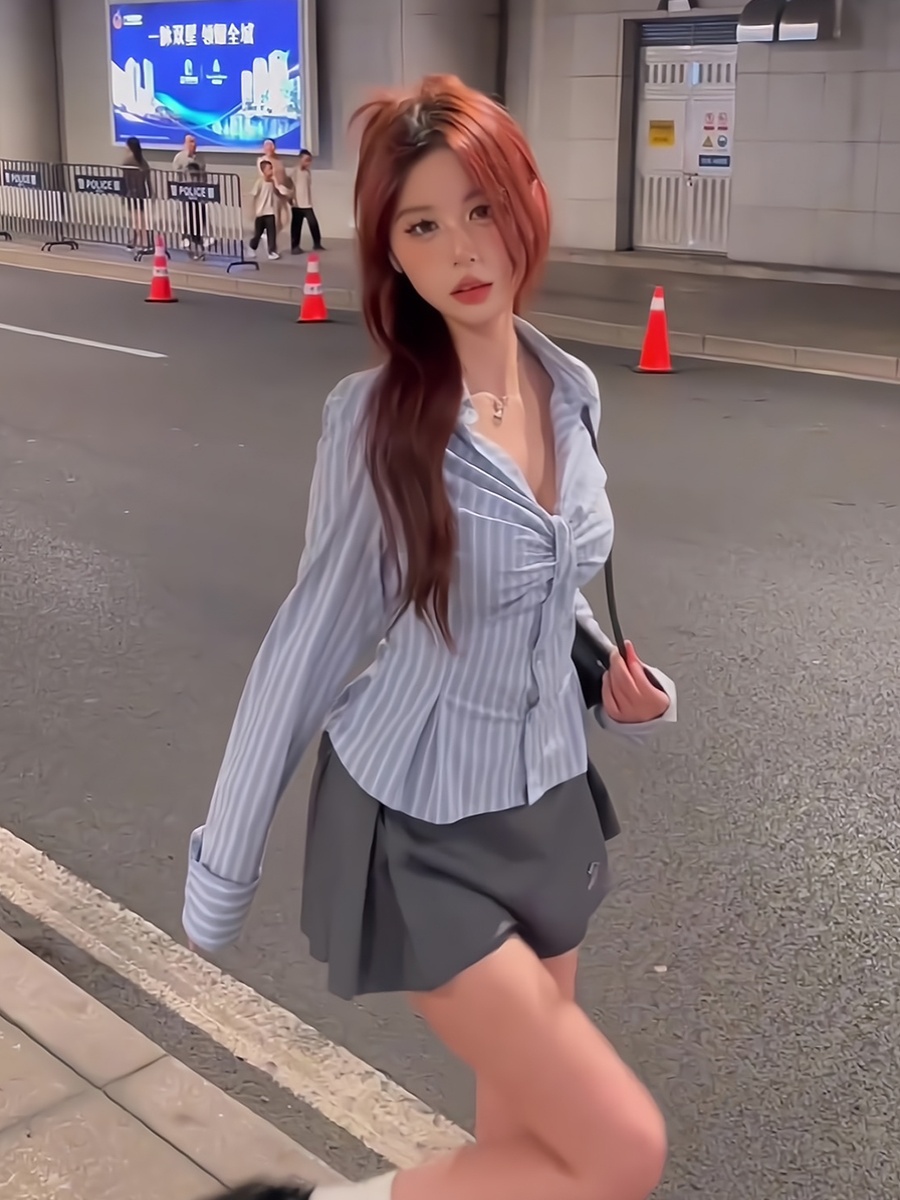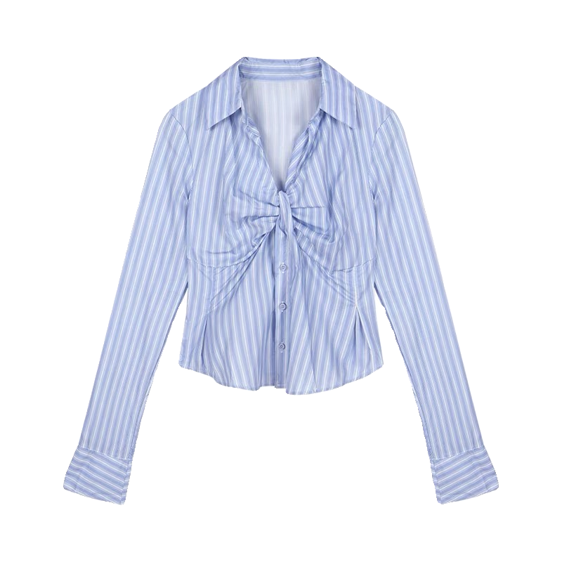 MY14620# 雪纺四面弹条纹v领喇叭袖衬衫收腰设计感小众衬衣上衣夏女裝貨源服裝批發
