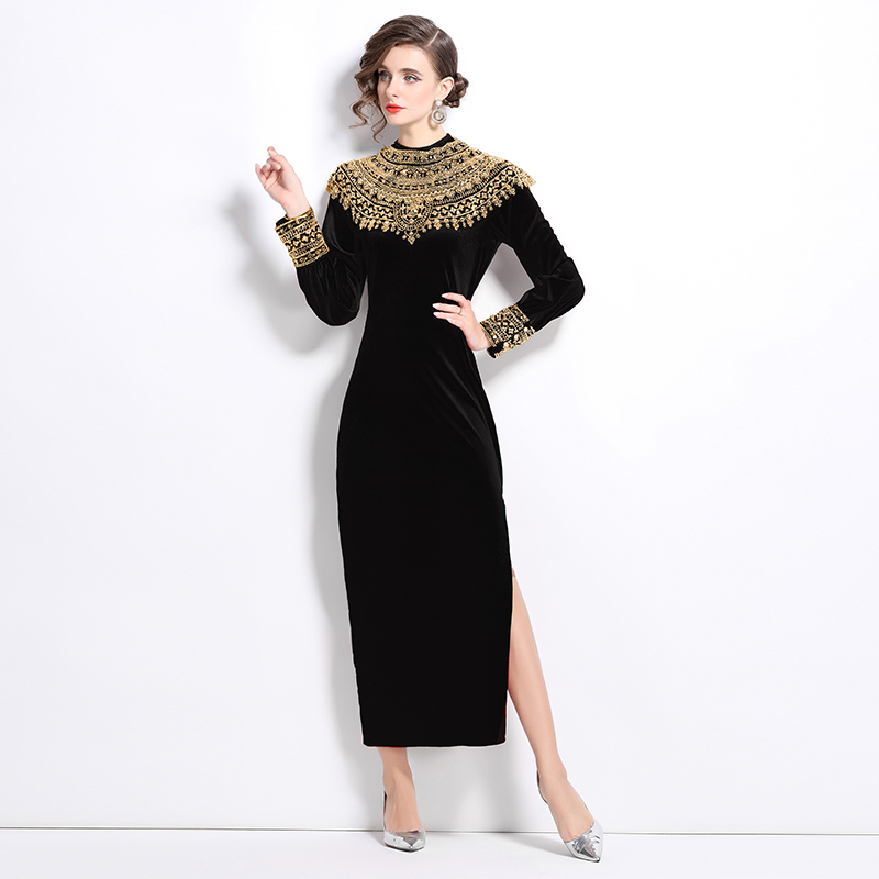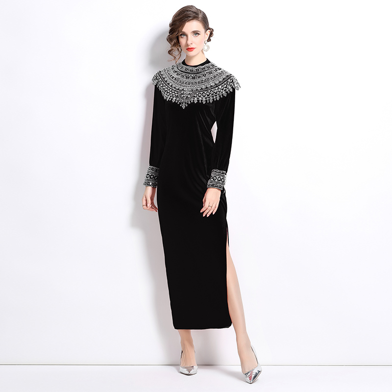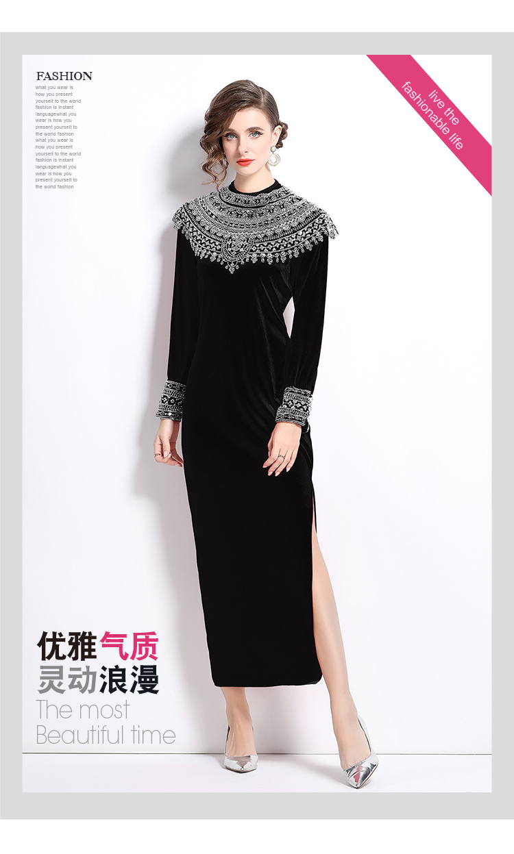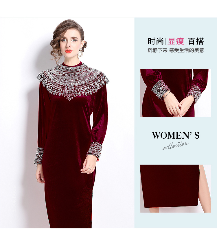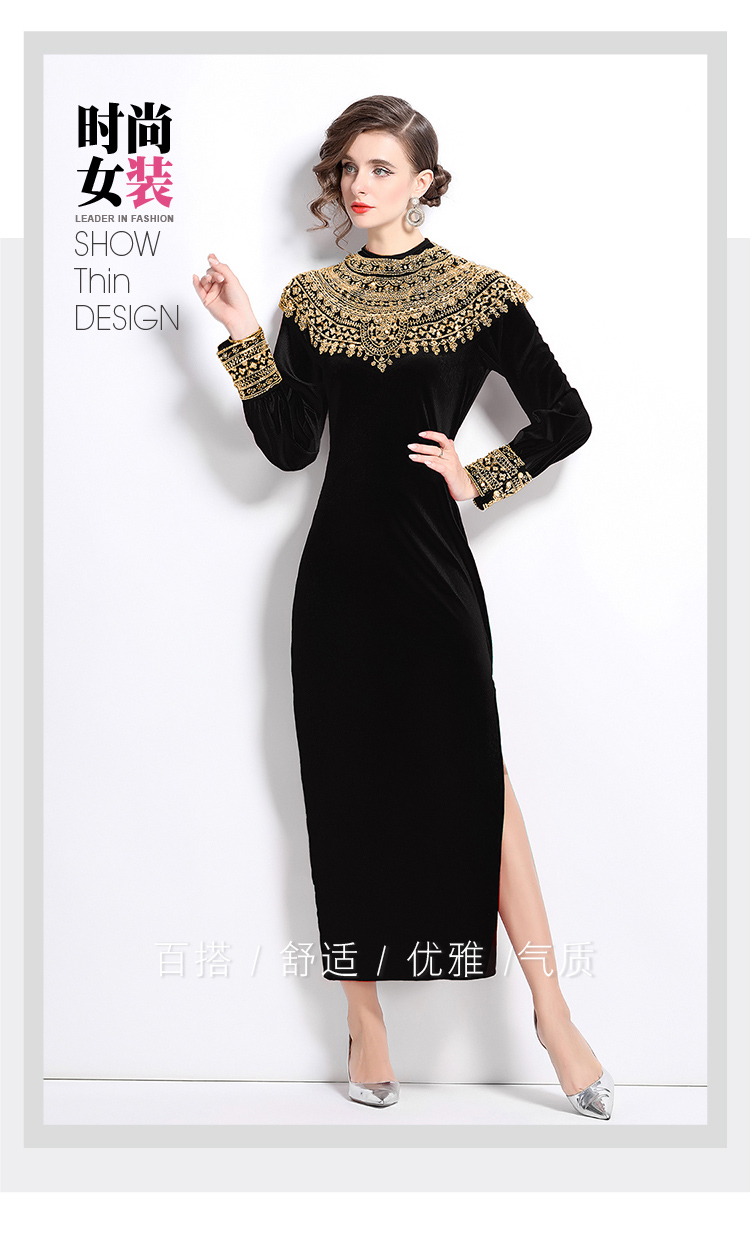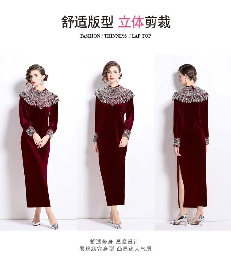 MY14632# 大码女装新品气质丝绒洋气女神范法式连衣裙女裝貨源服裝批發