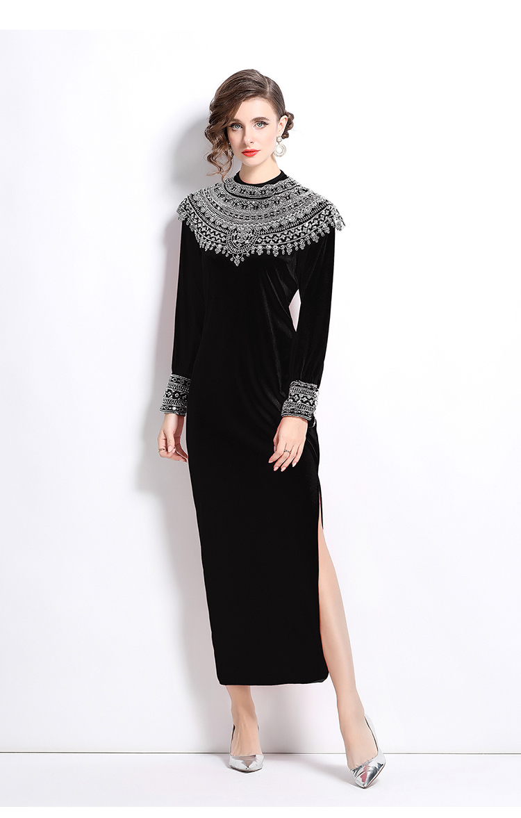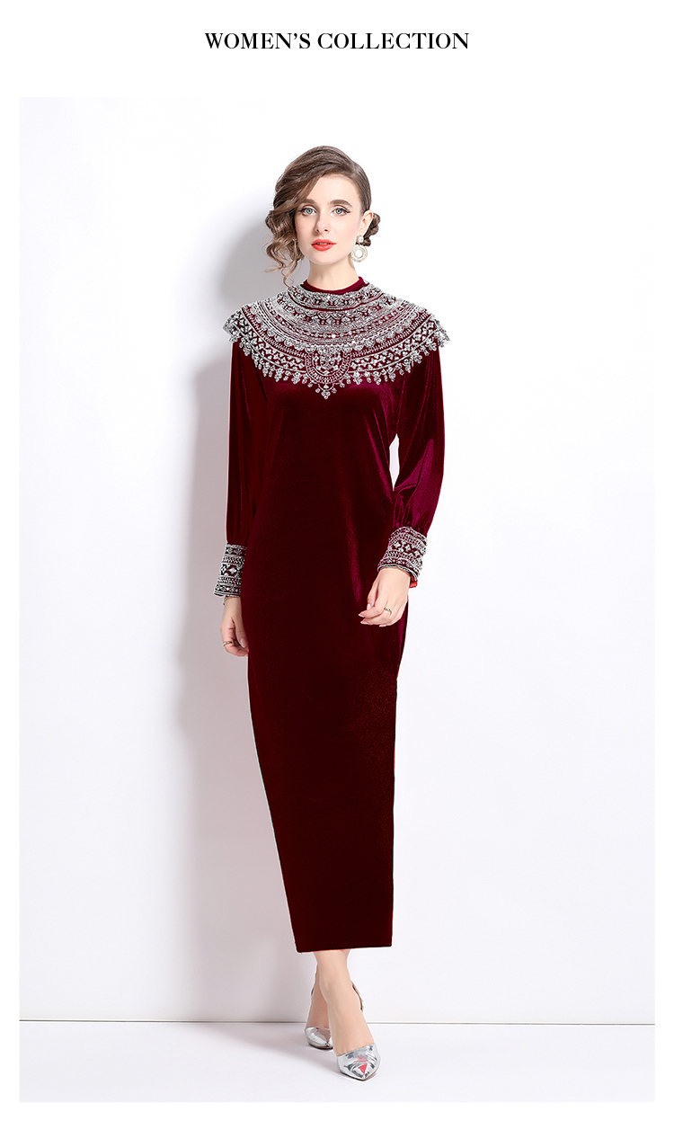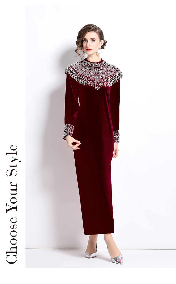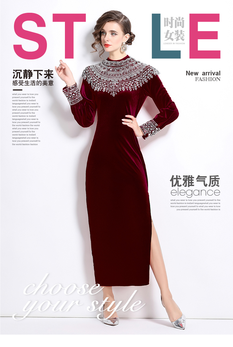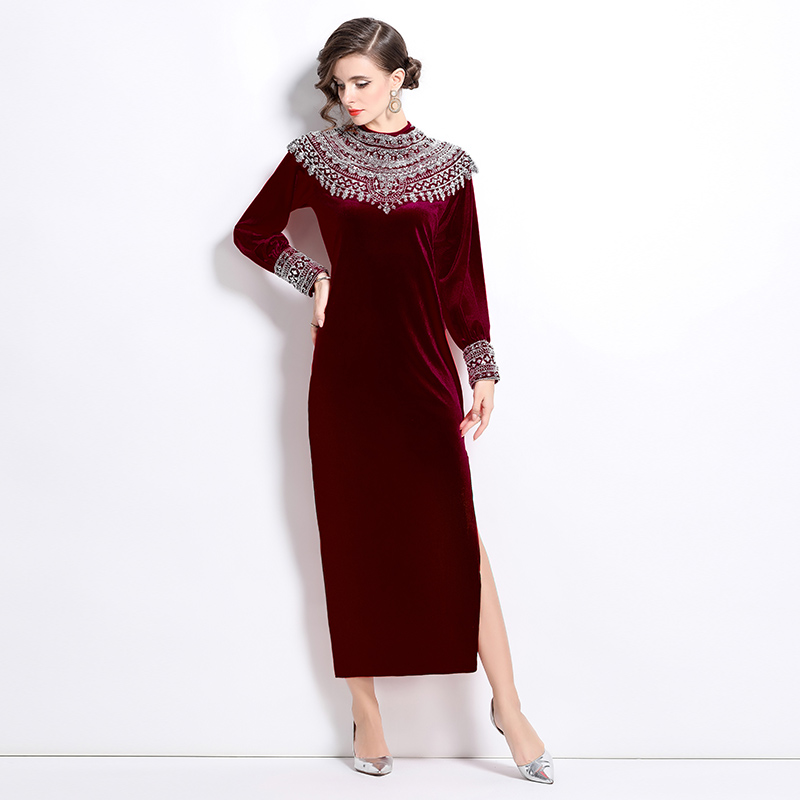 MY14632# 大码女装新品气质丝绒洋气女神范法式连衣裙女裝貨源服裝批發