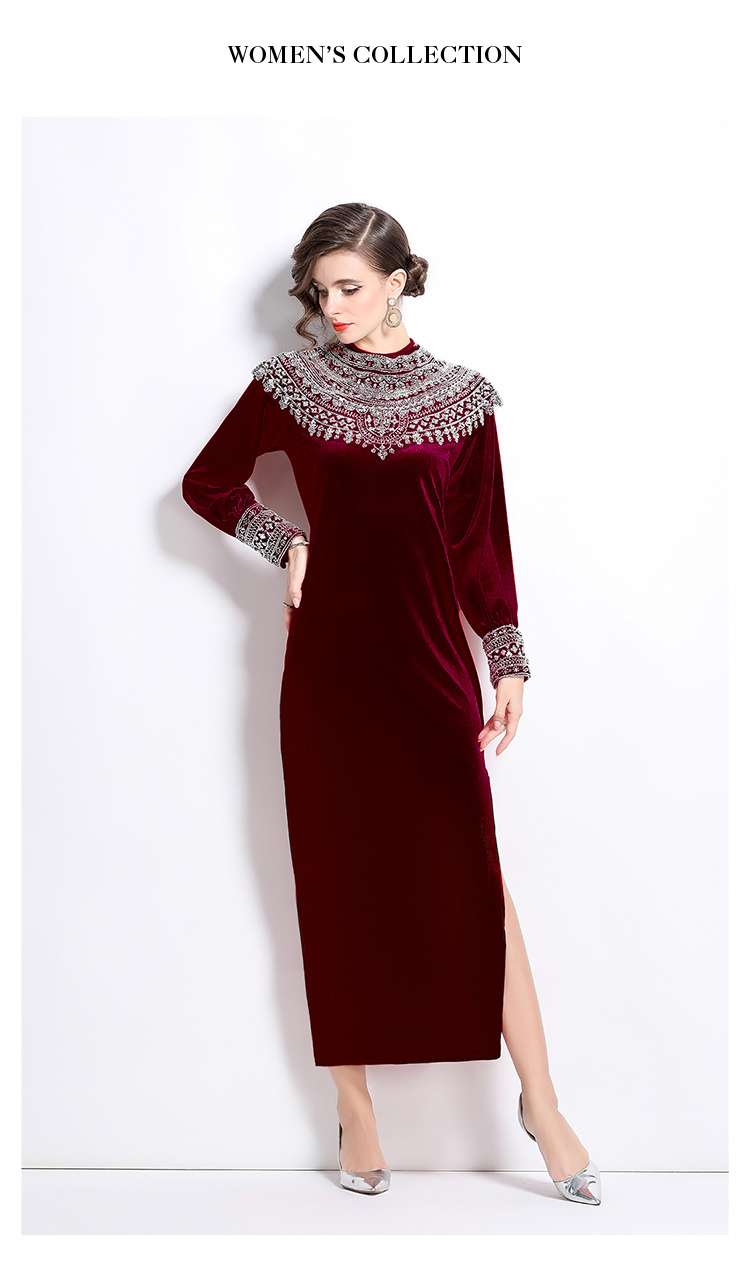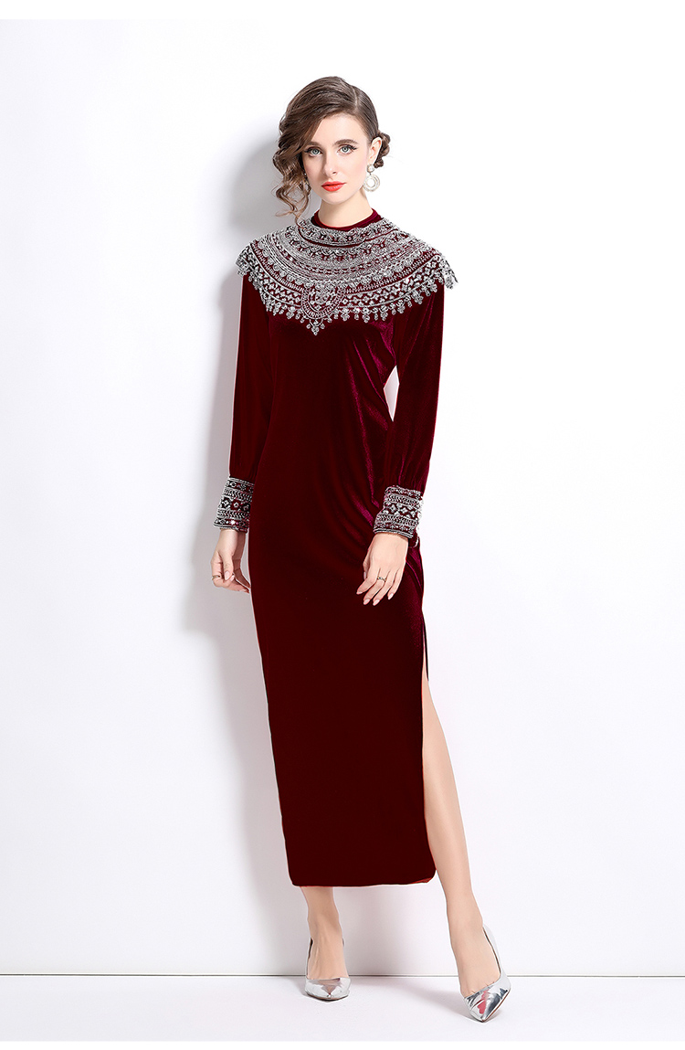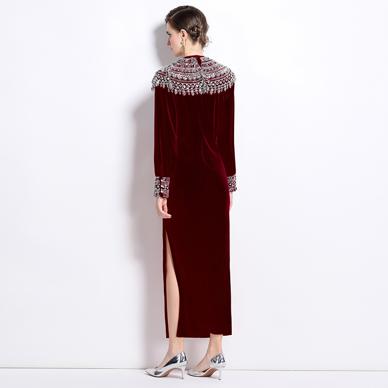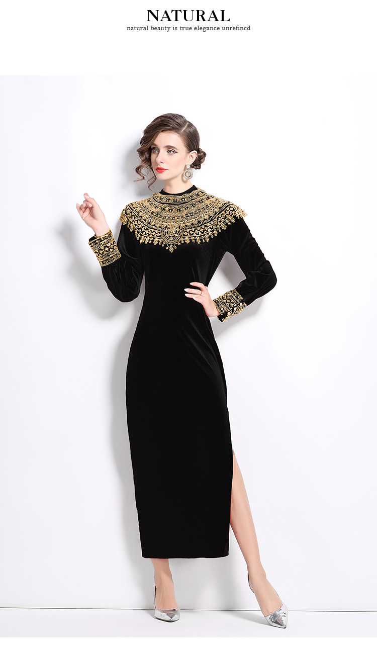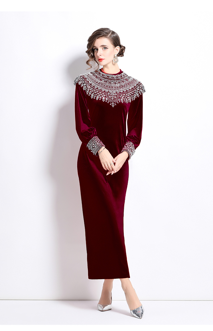 MY14632# 大码女装新品气质丝绒洋气女神范法式连衣裙女裝貨源服裝批發