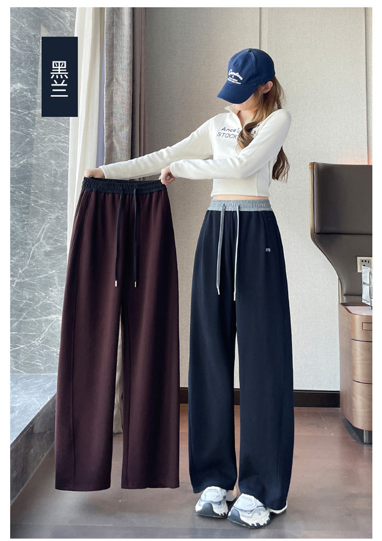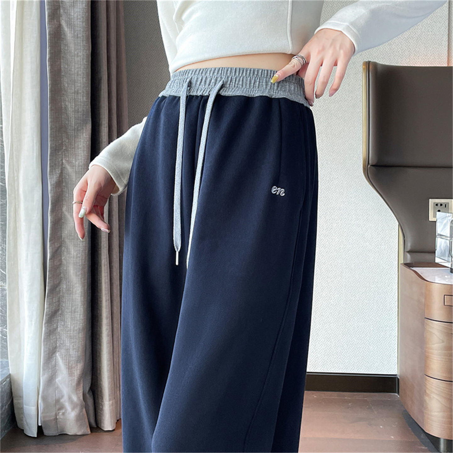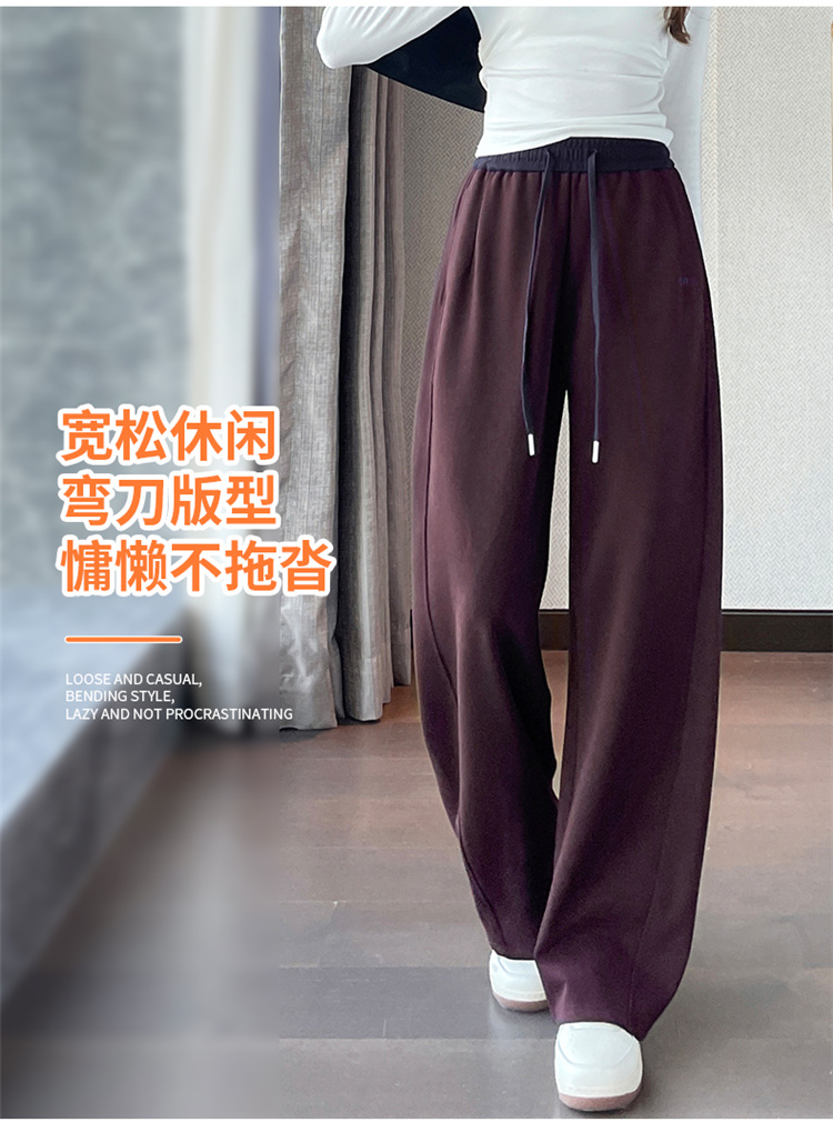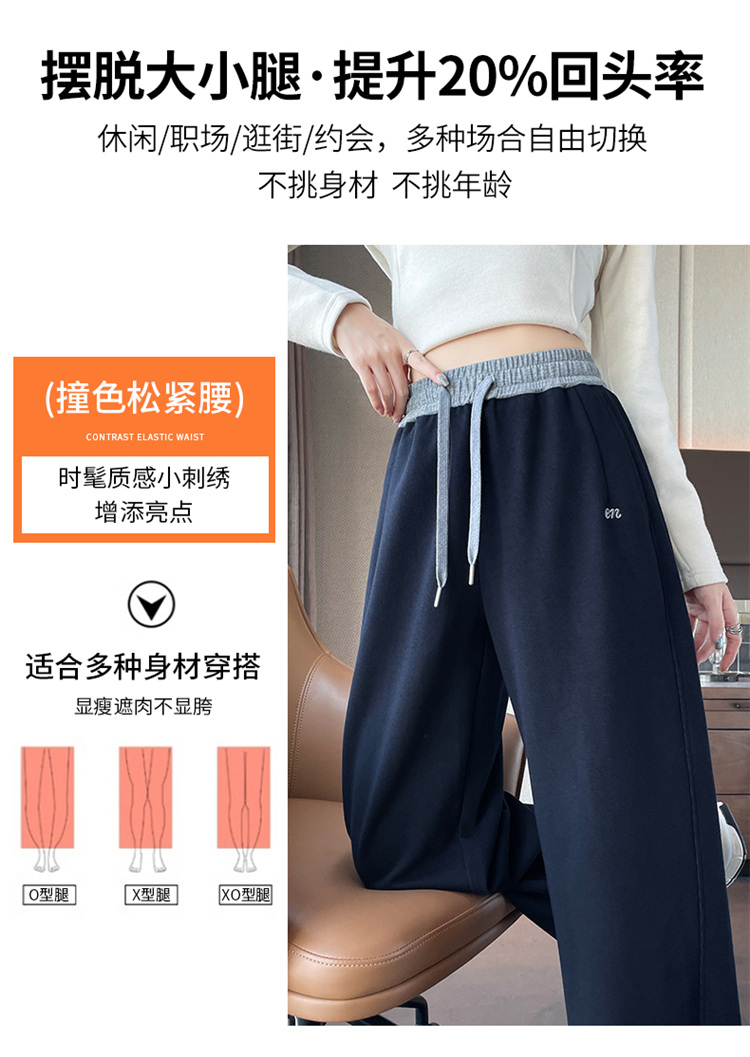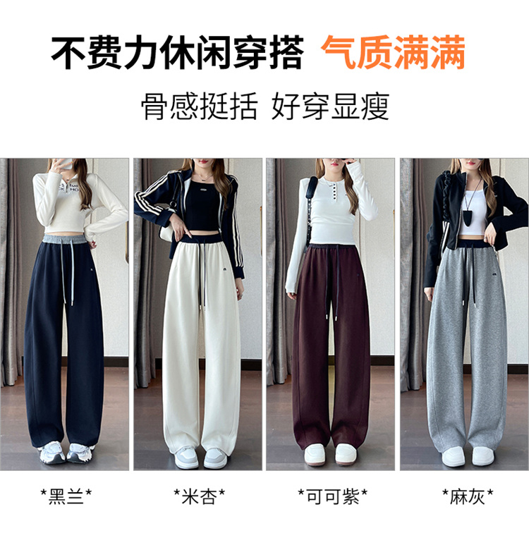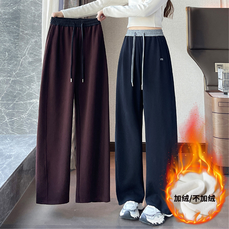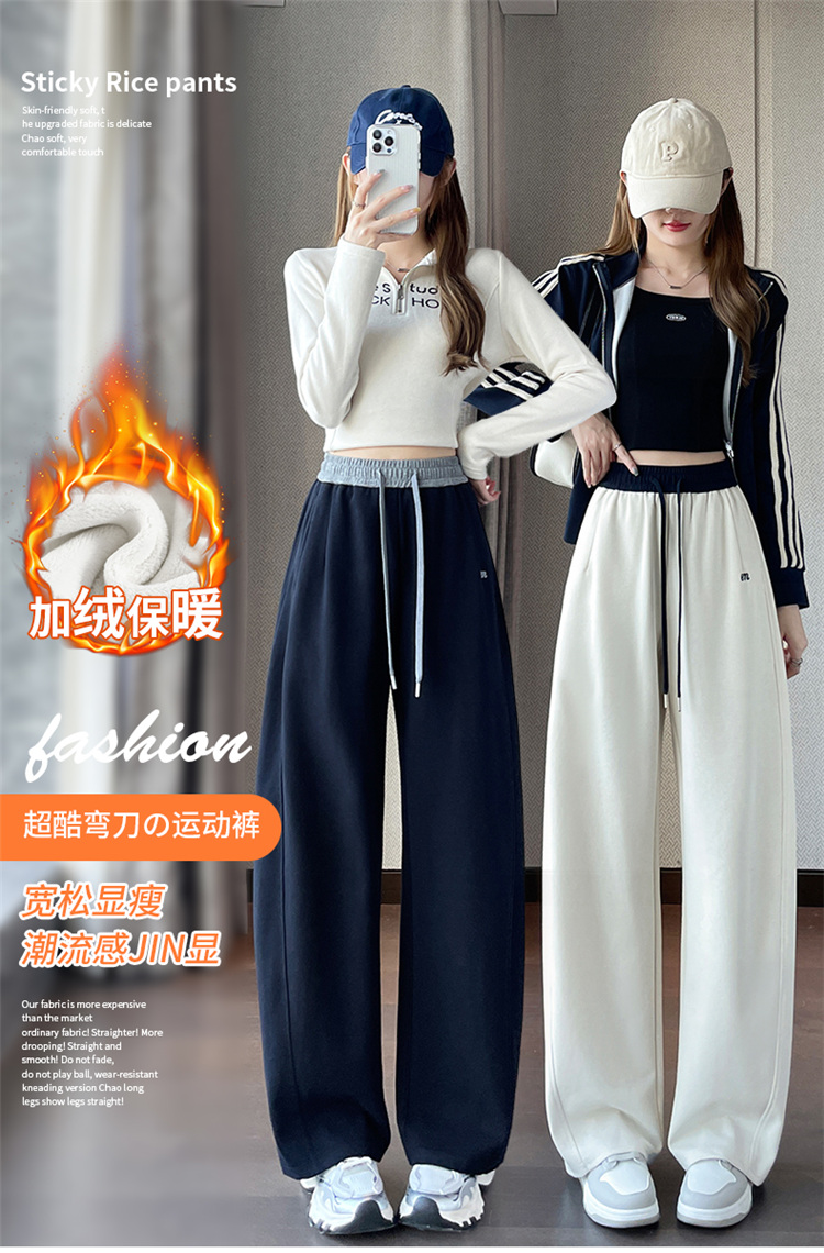 MY14638# 运动阔腿裤新款加绒裤子休闲裤高腰宽松直筒弯刀裤女裝貨源服裝批發