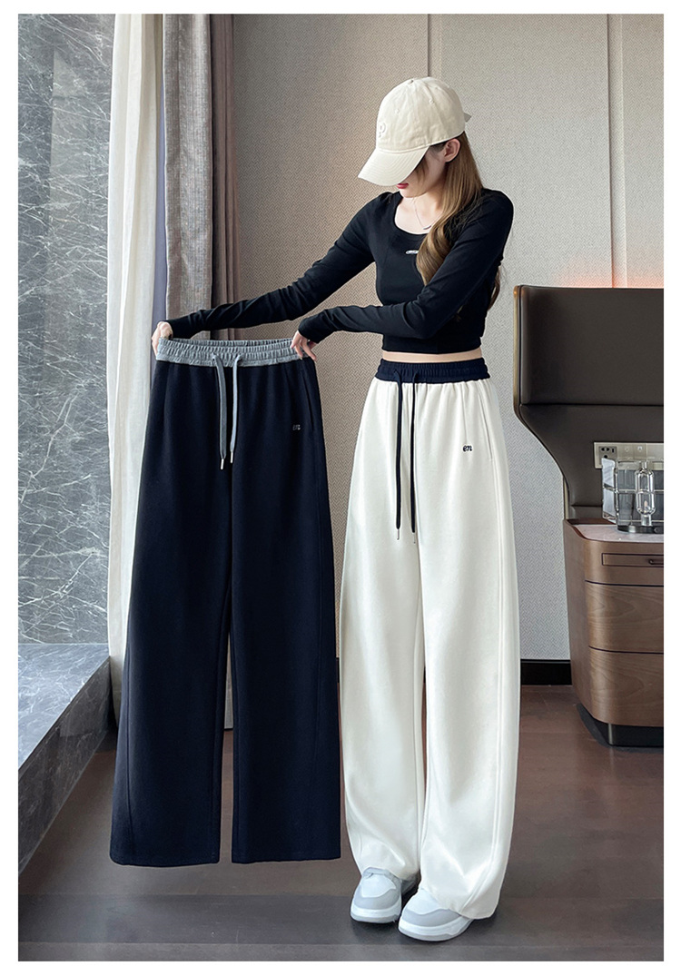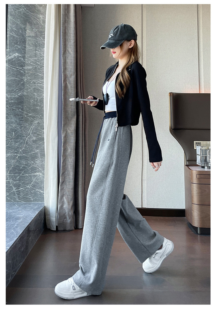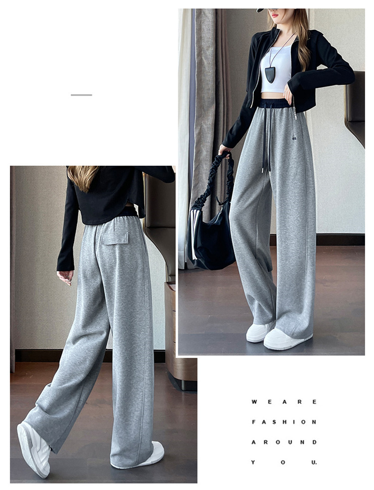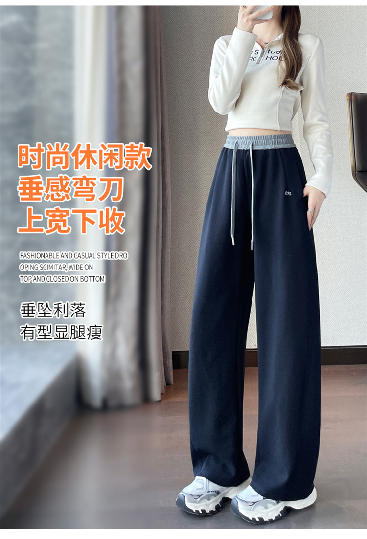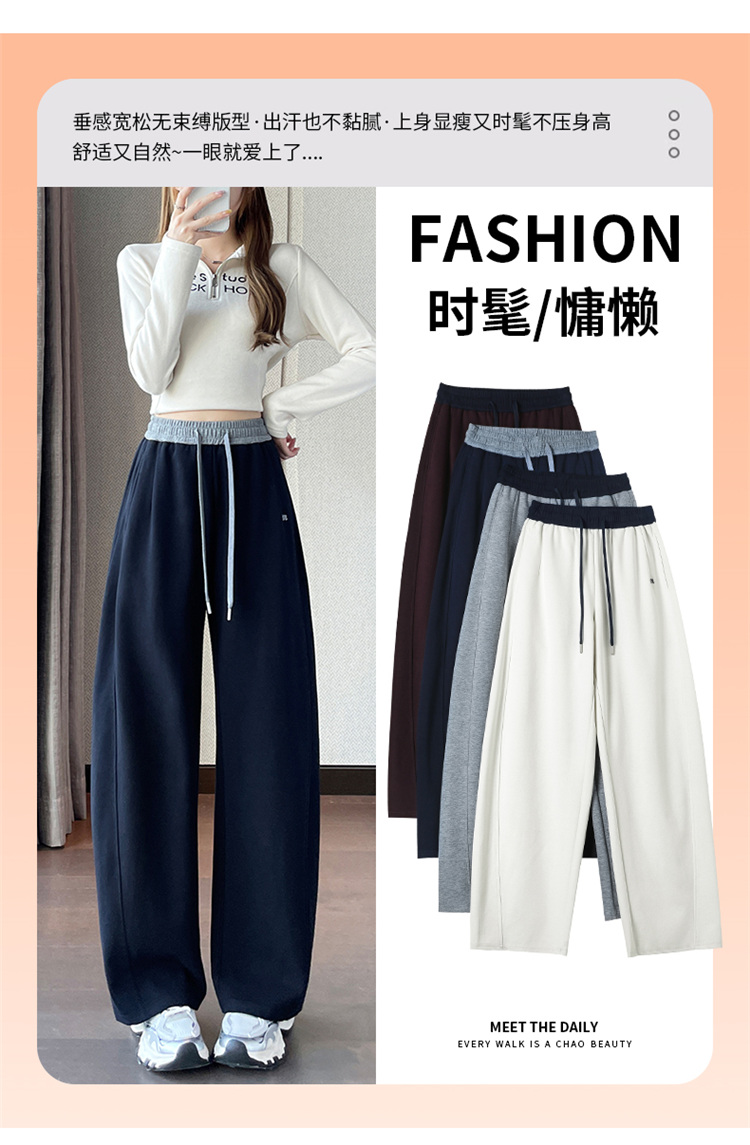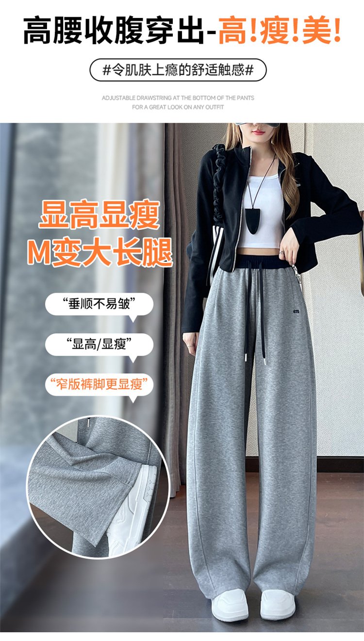 MY14638# 运动阔腿裤新款加绒裤子休闲裤高腰宽松直筒弯刀裤女裝貨源服裝批發