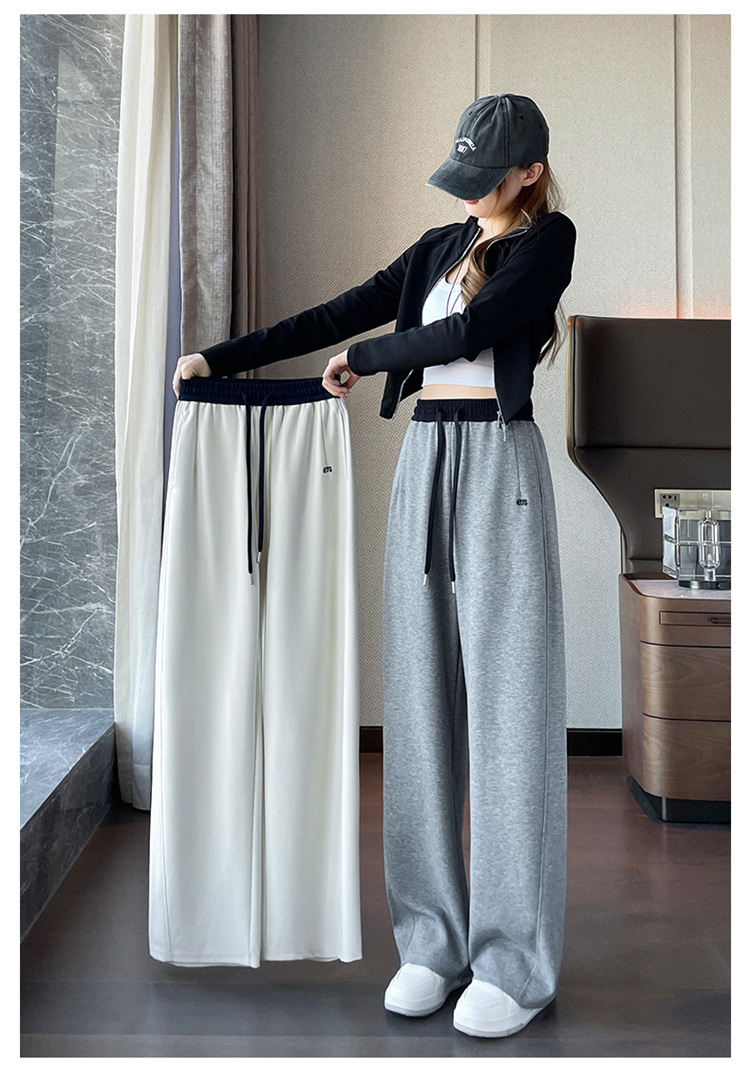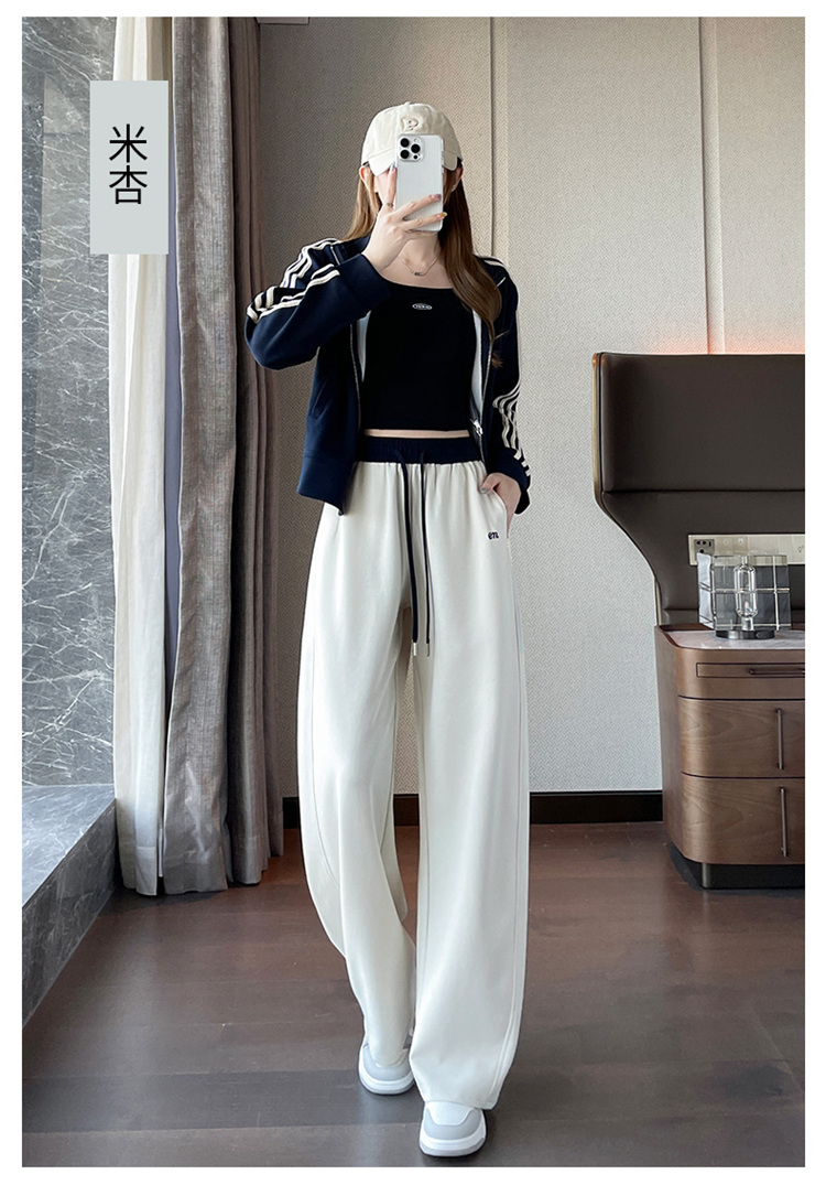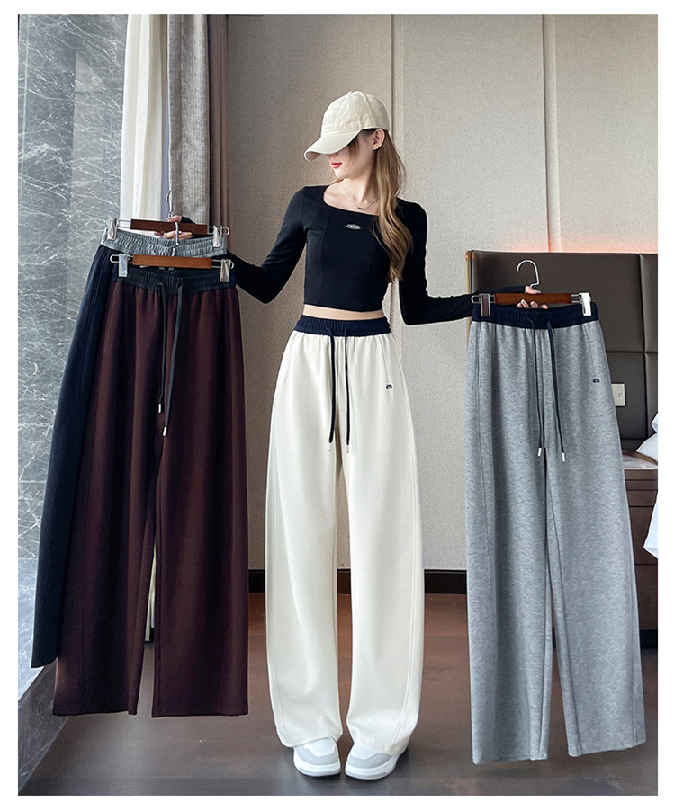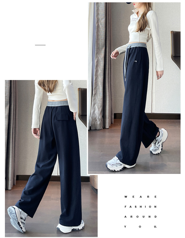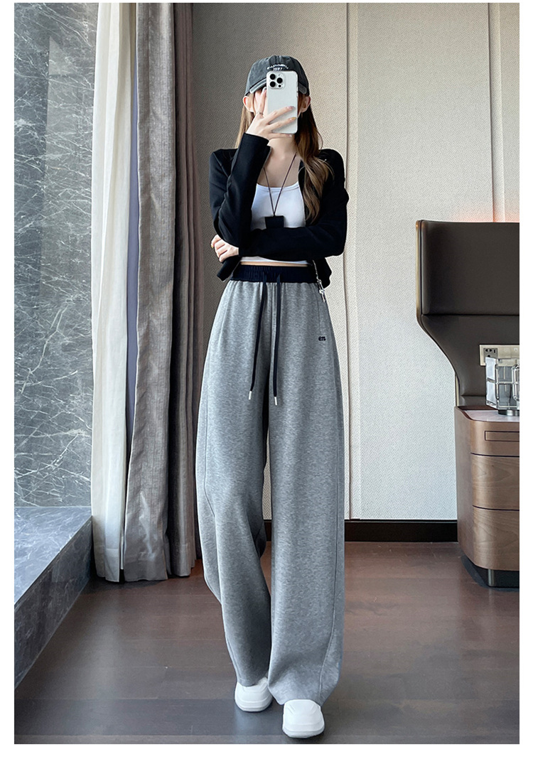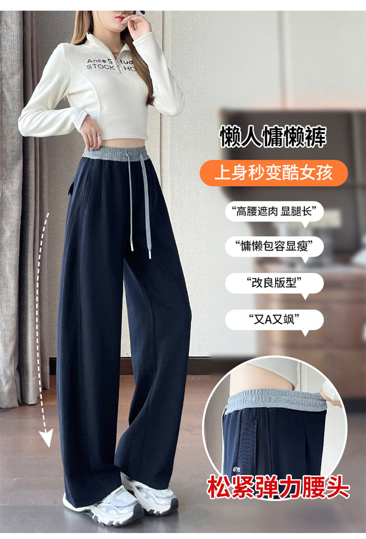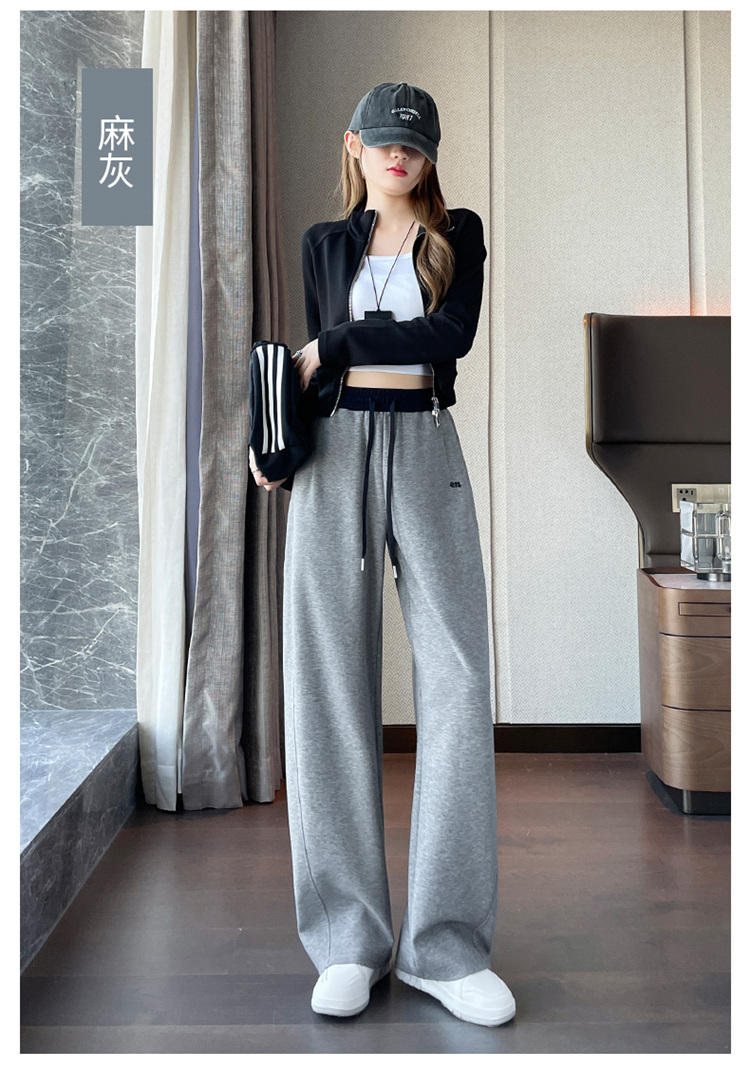 MY14638# 运动阔腿裤新款加绒裤子休闲裤高腰宽松直筒弯刀裤女裝貨源服裝批發