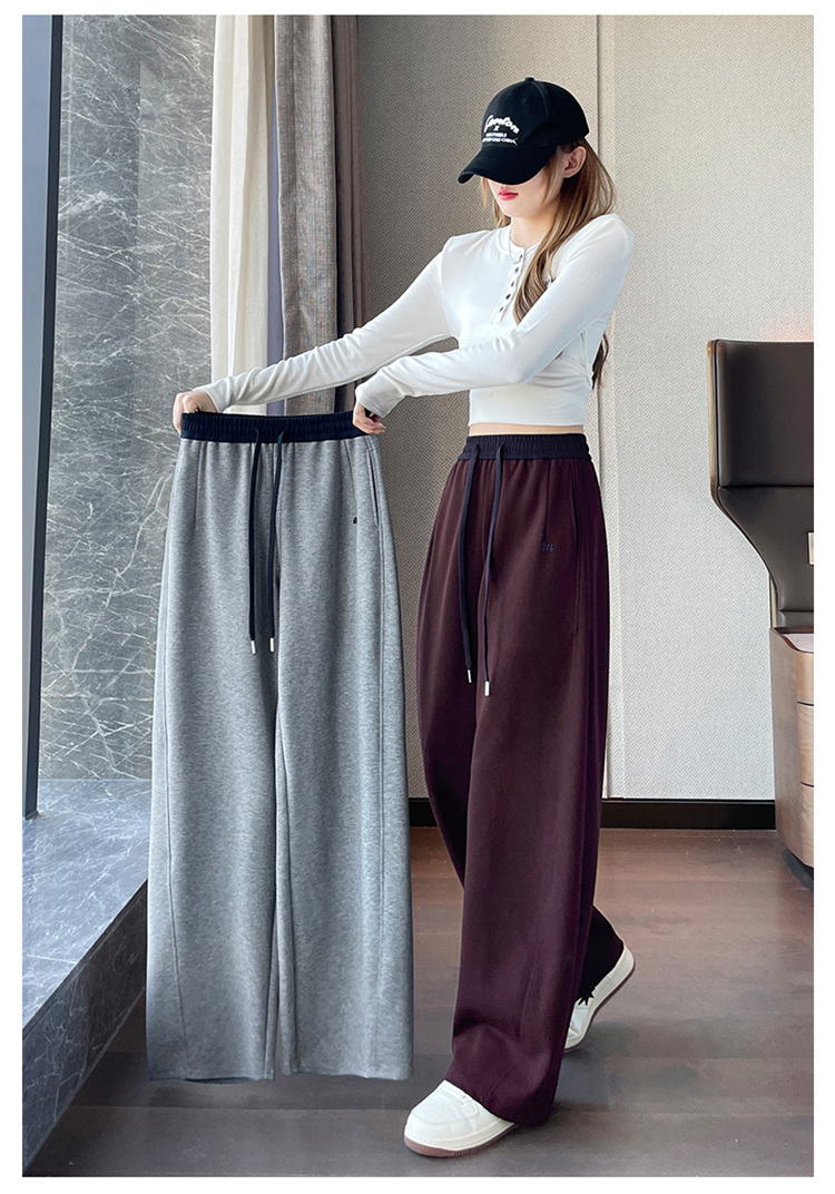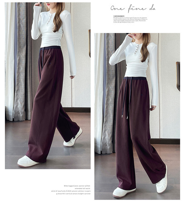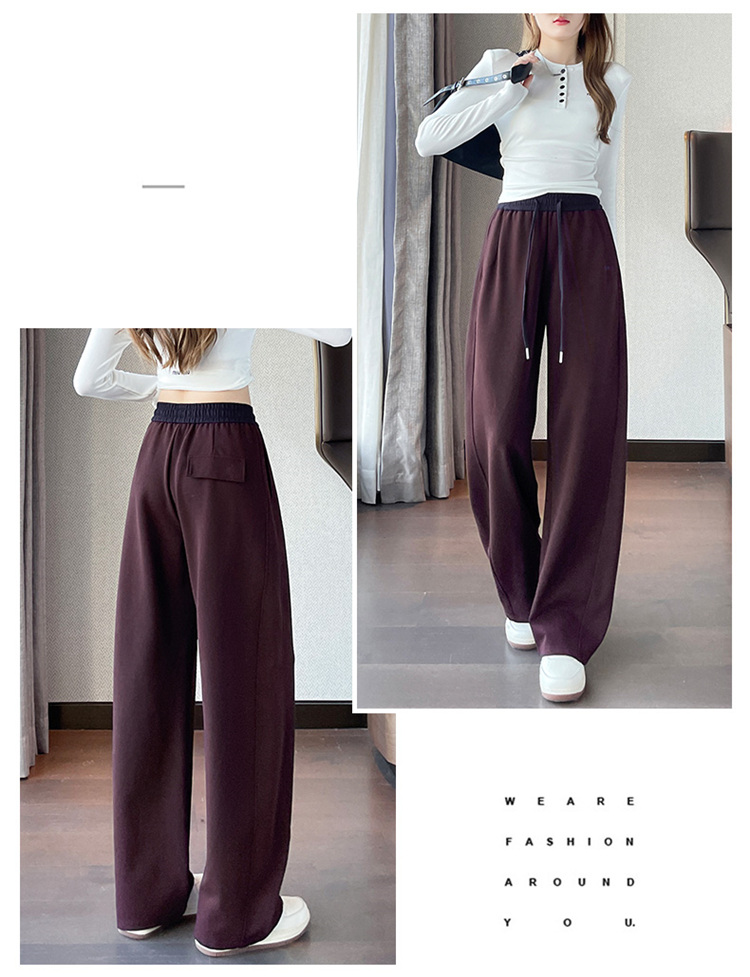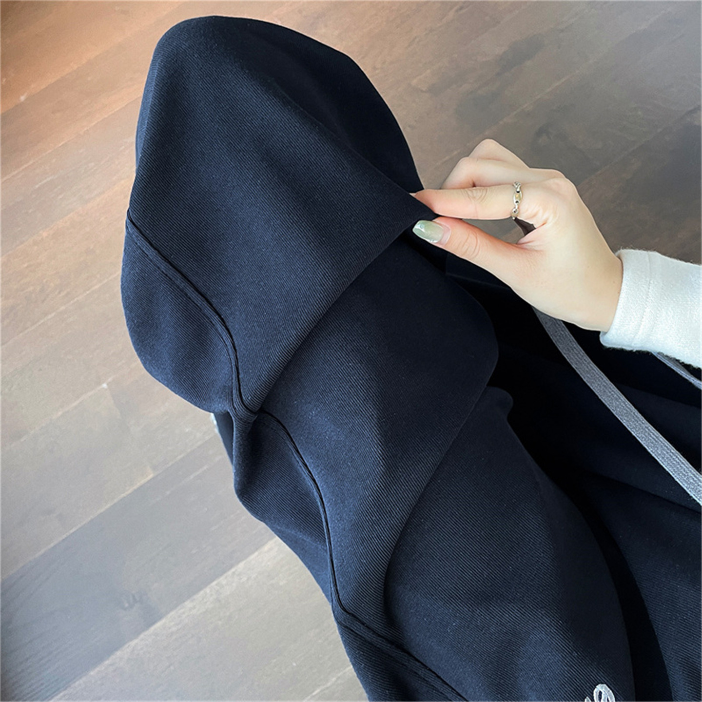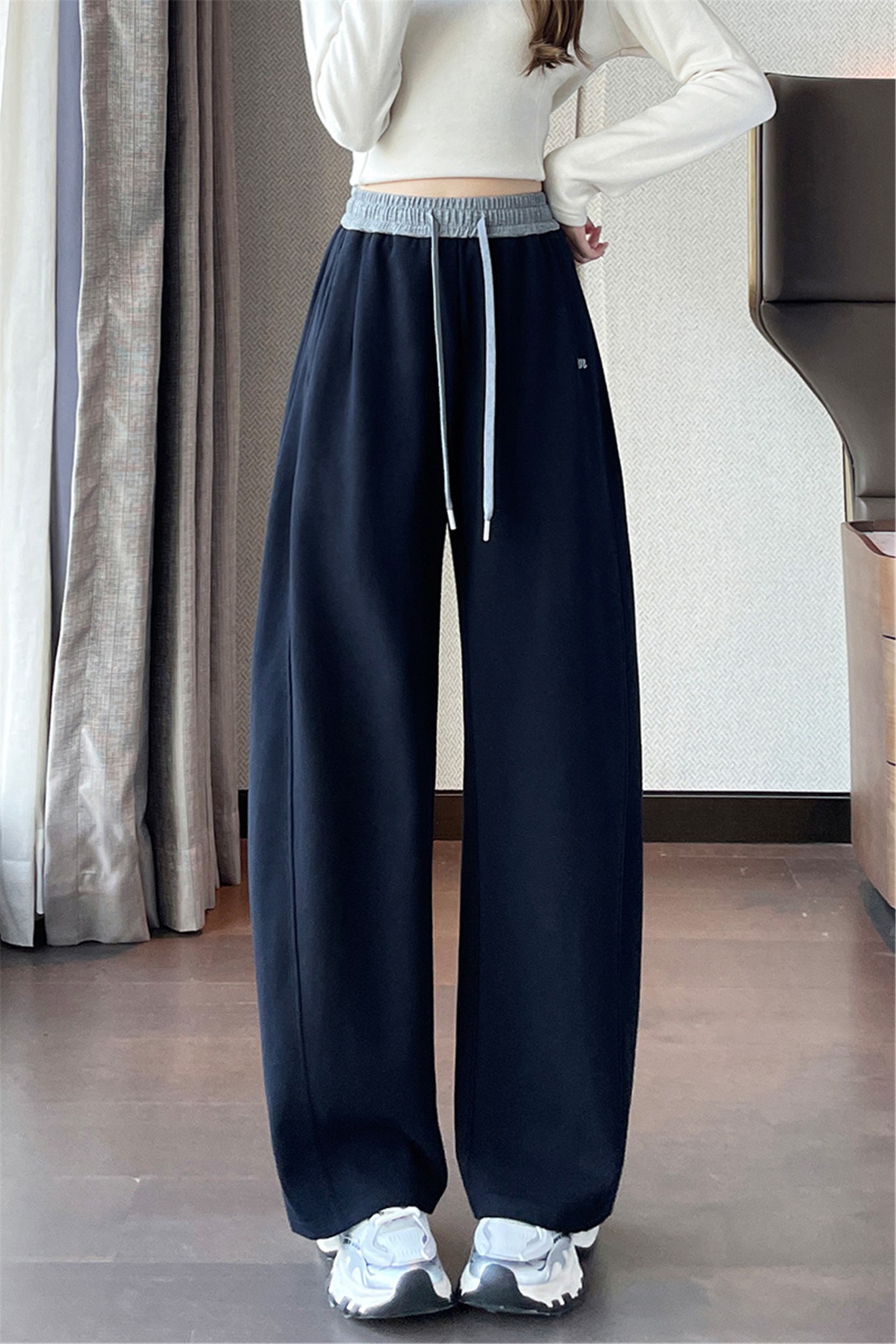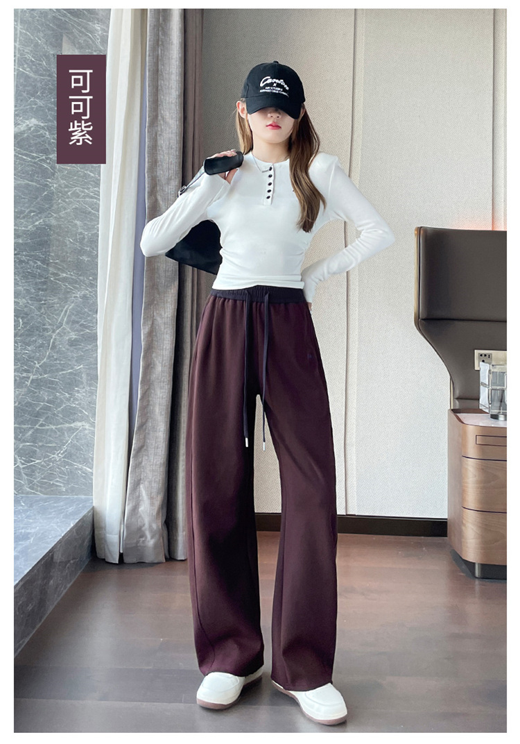 MY14638# 运动阔腿裤新款加绒裤子休闲裤高腰宽松直筒弯刀裤女裝貨源服裝批發