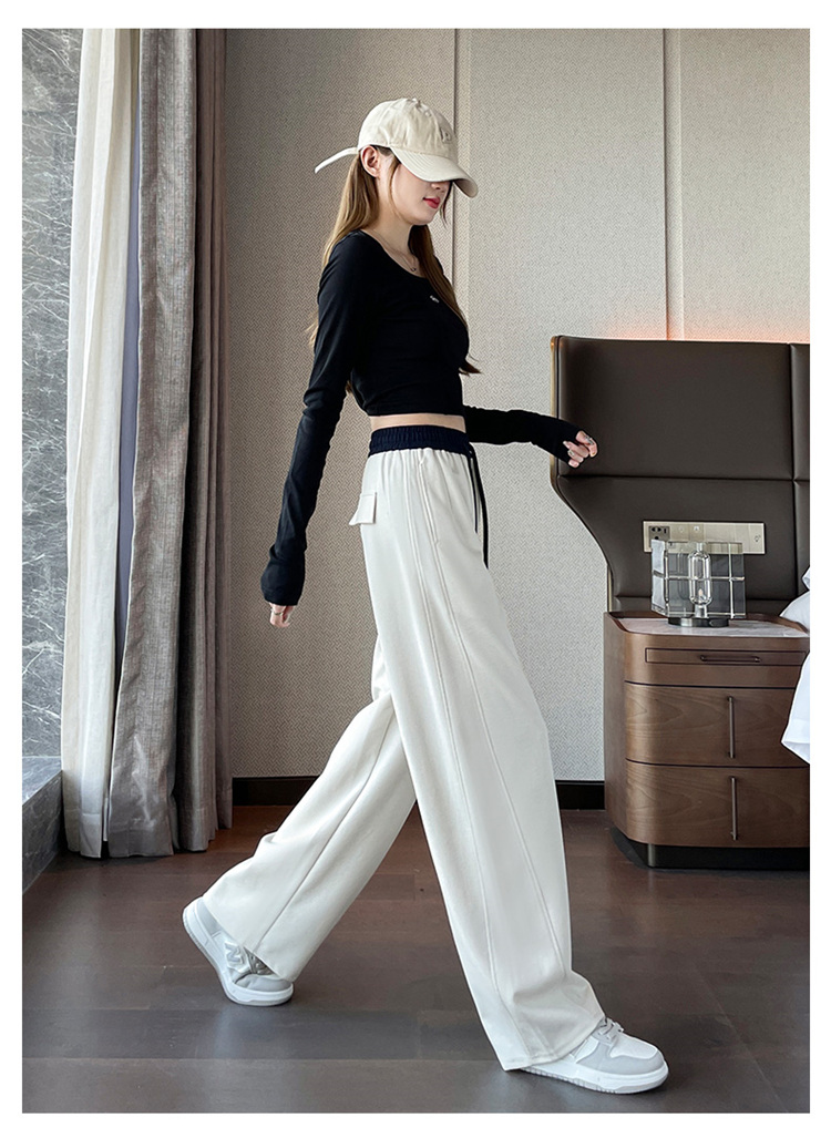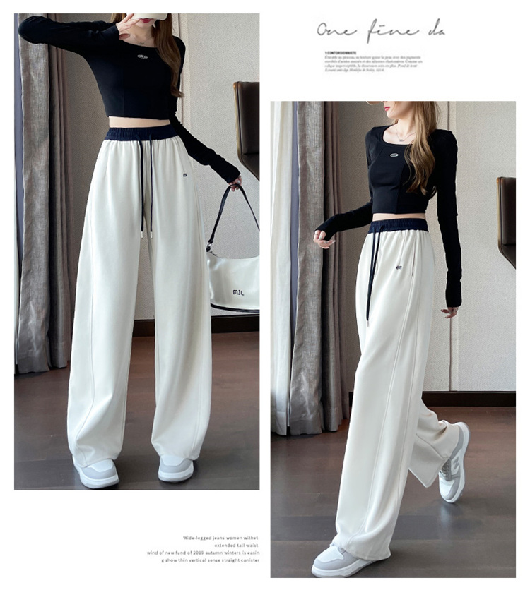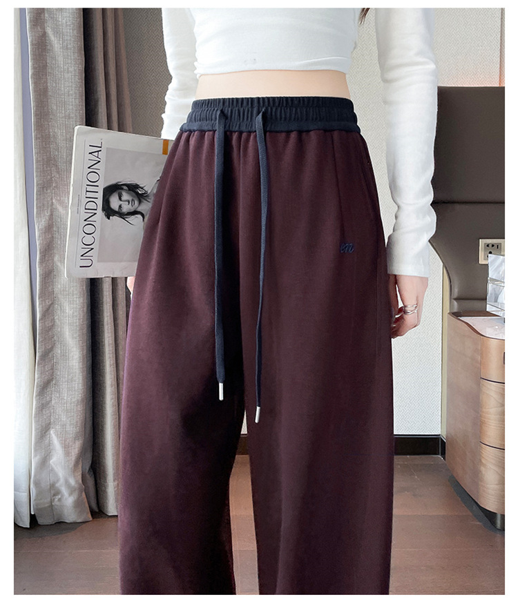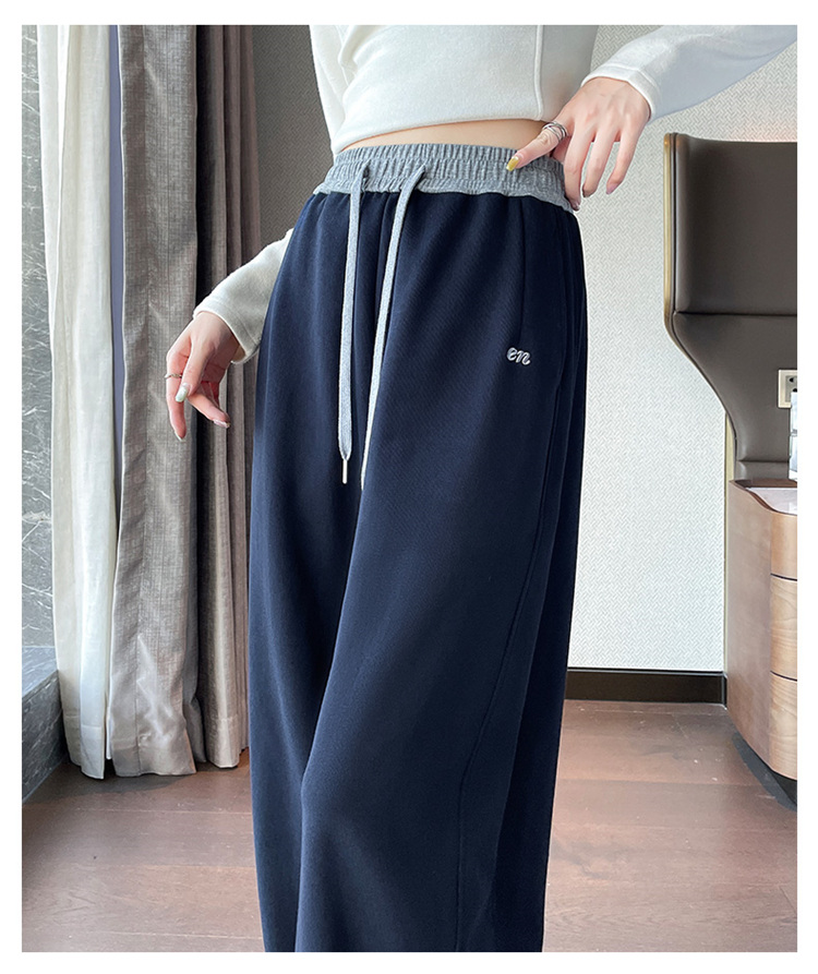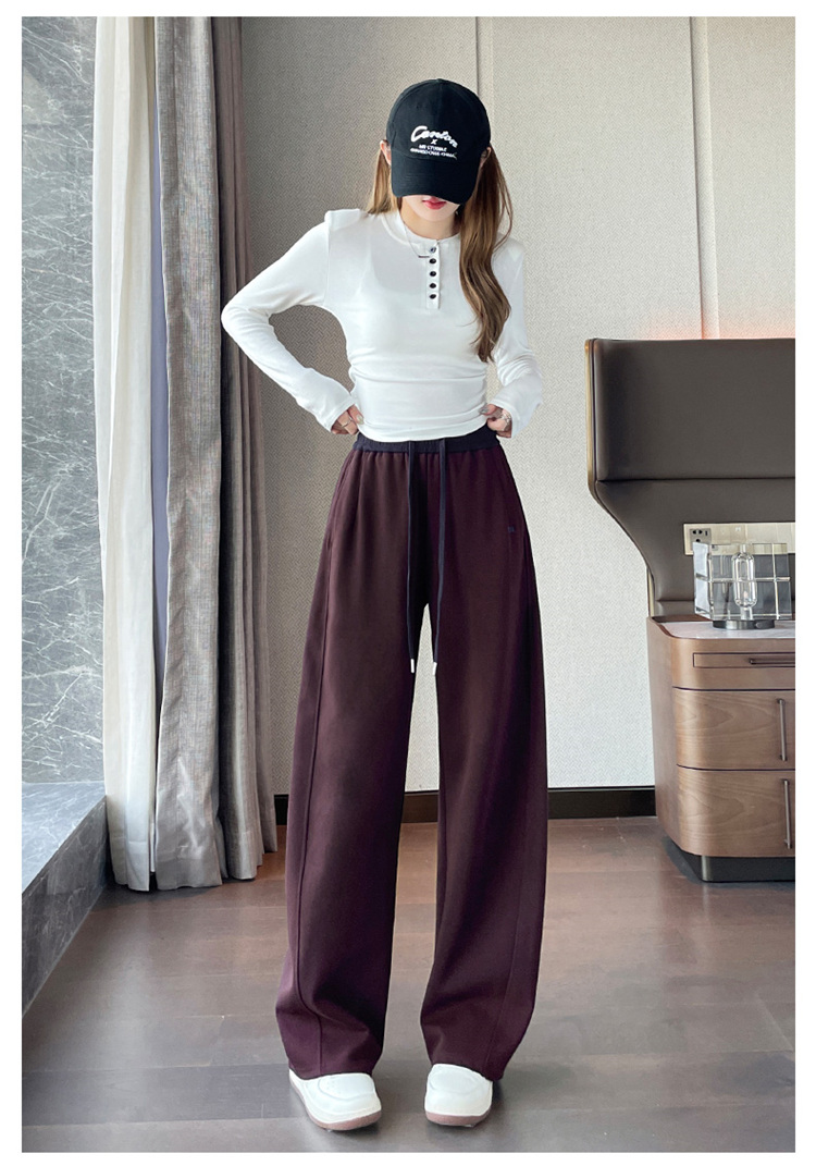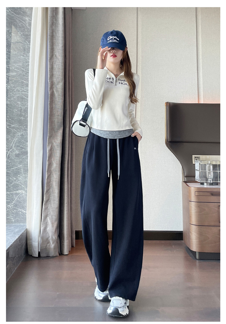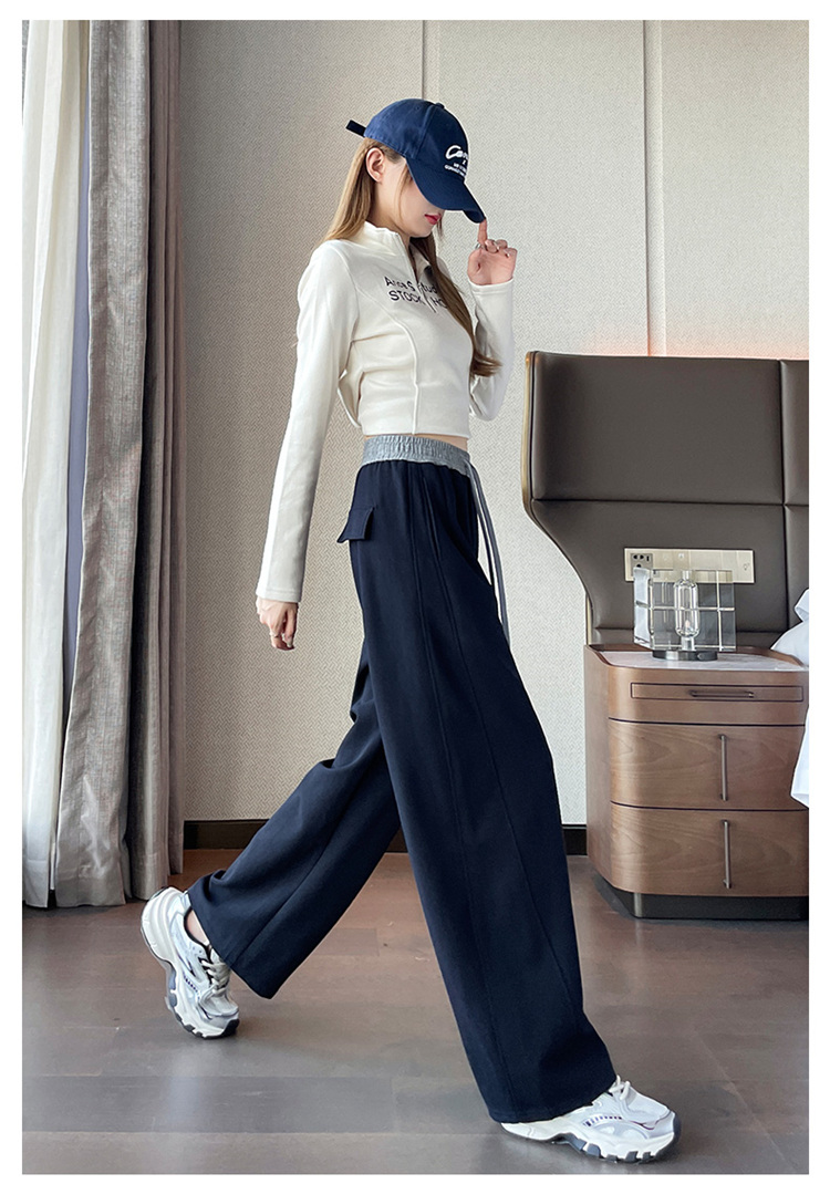 MY14638# 运动阔腿裤新款加绒裤子休闲裤高腰宽松直筒弯刀裤女裝貨源服裝批發