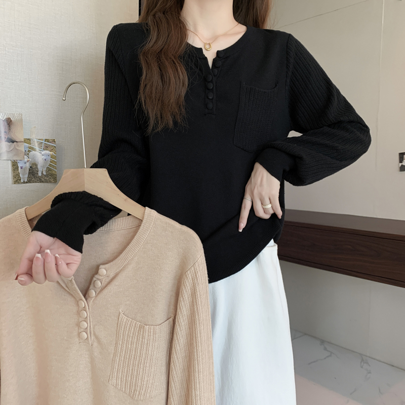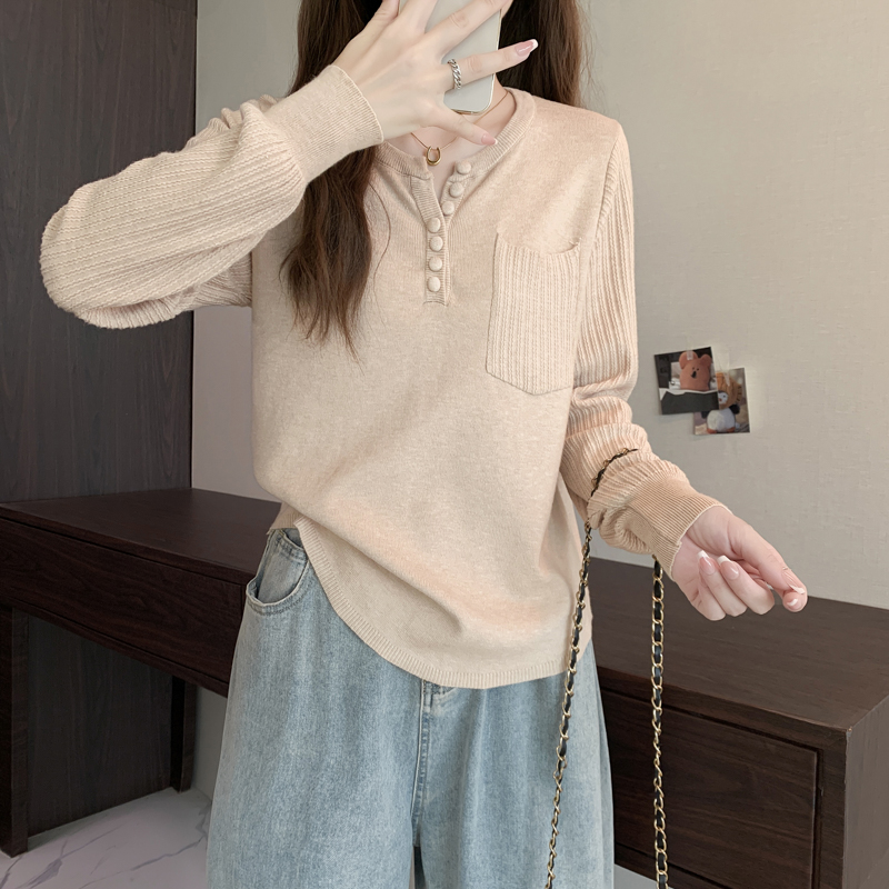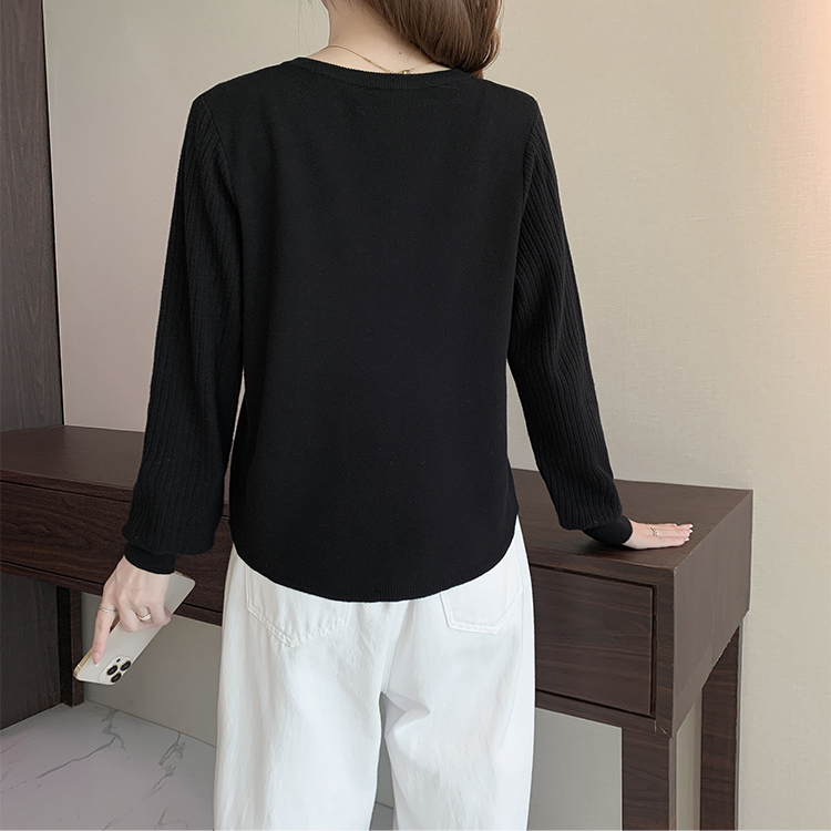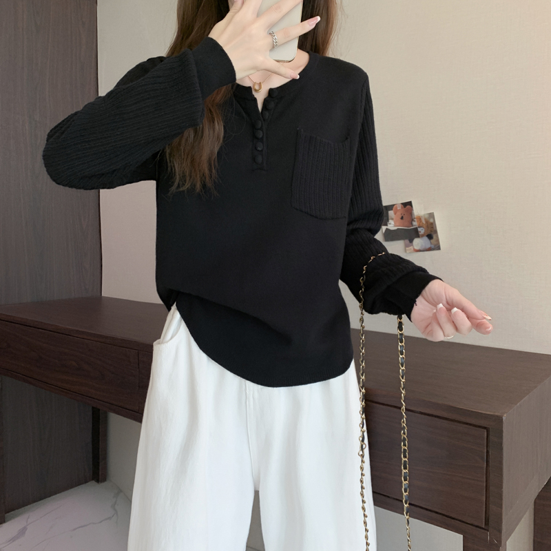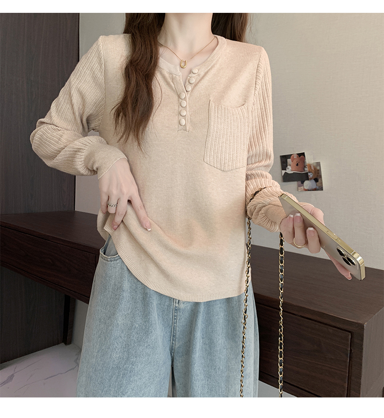 MY14639# 不规则别致V领正肩针织t恤打底毛衣女裝貨源服裝批發