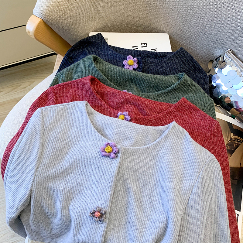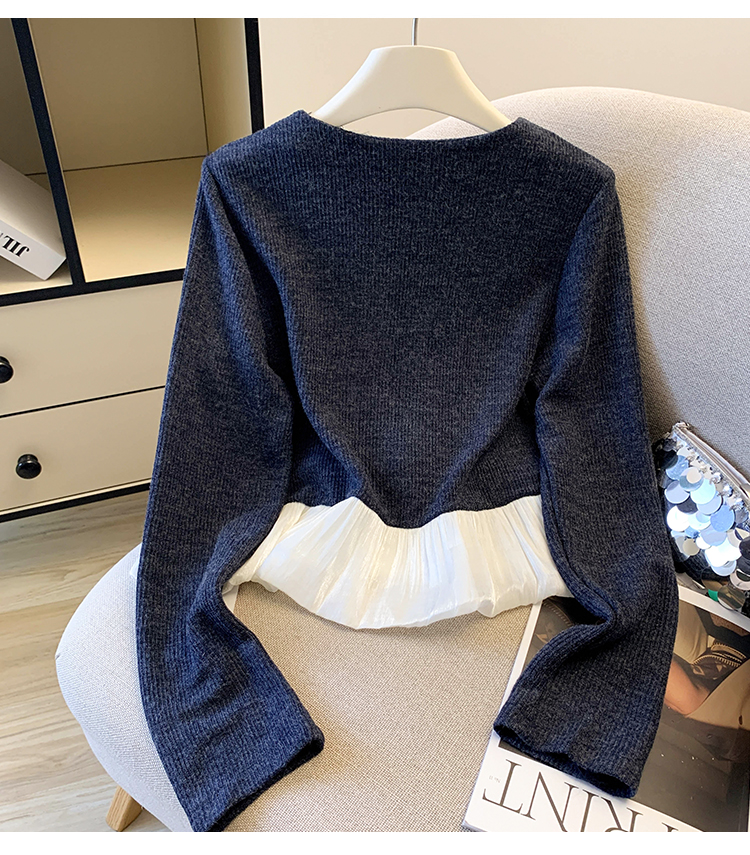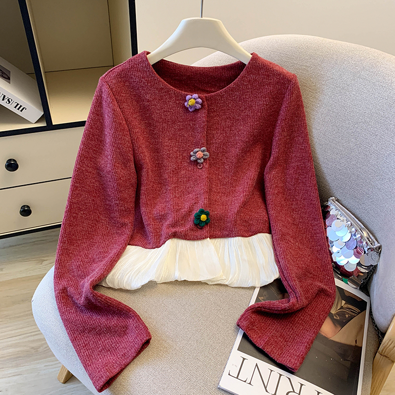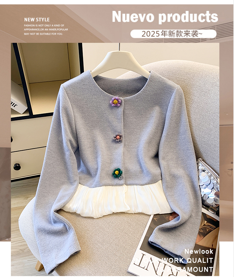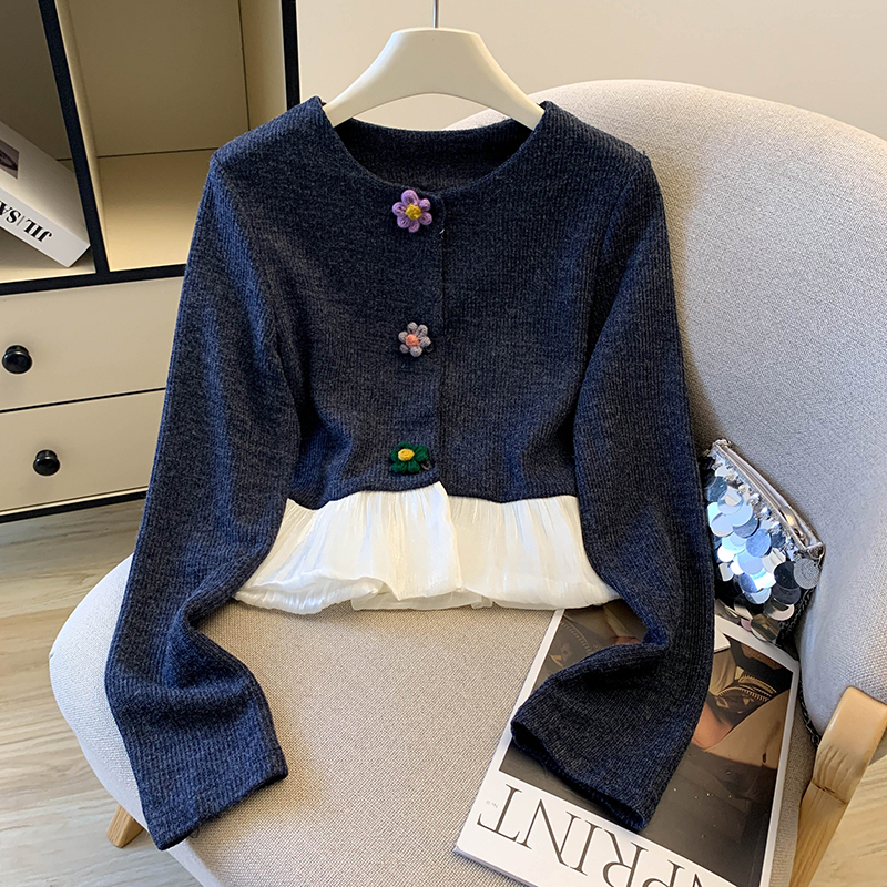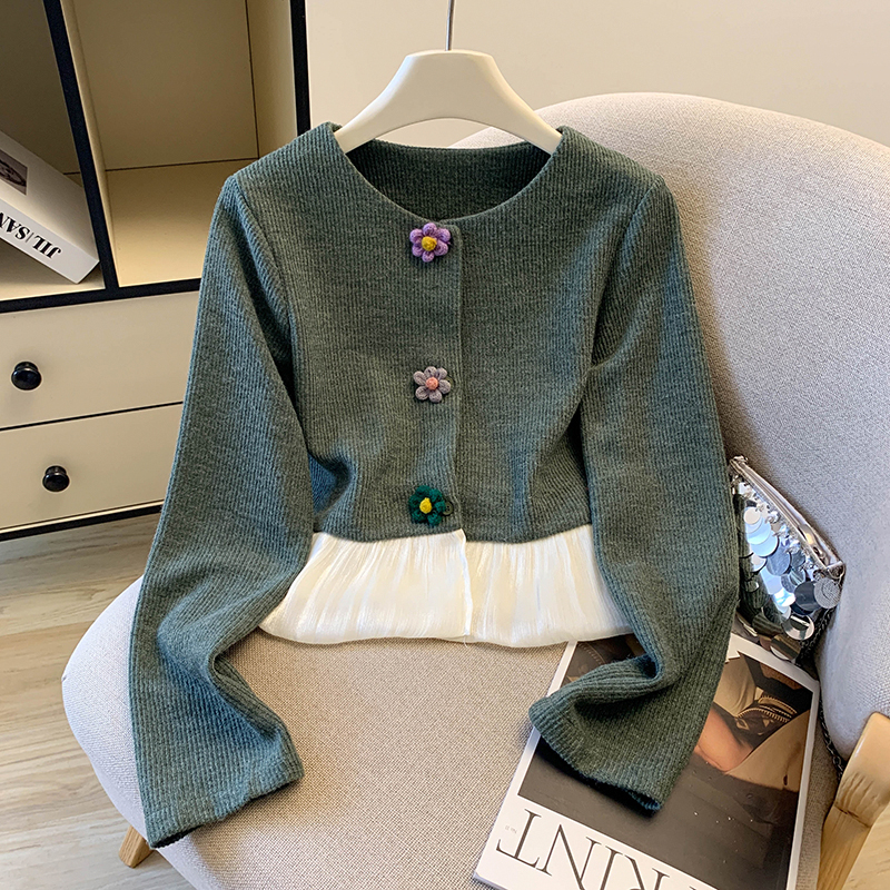 MY14640# 新款拼接假两件衬衫上衣新款小个子立体花朵娃娃衫女裝貨源服裝批發