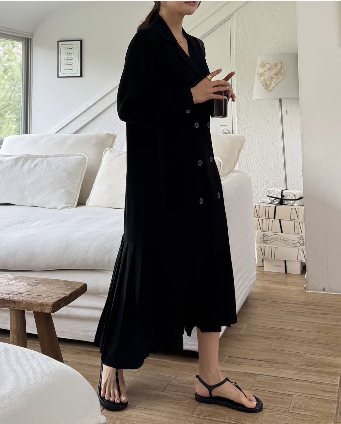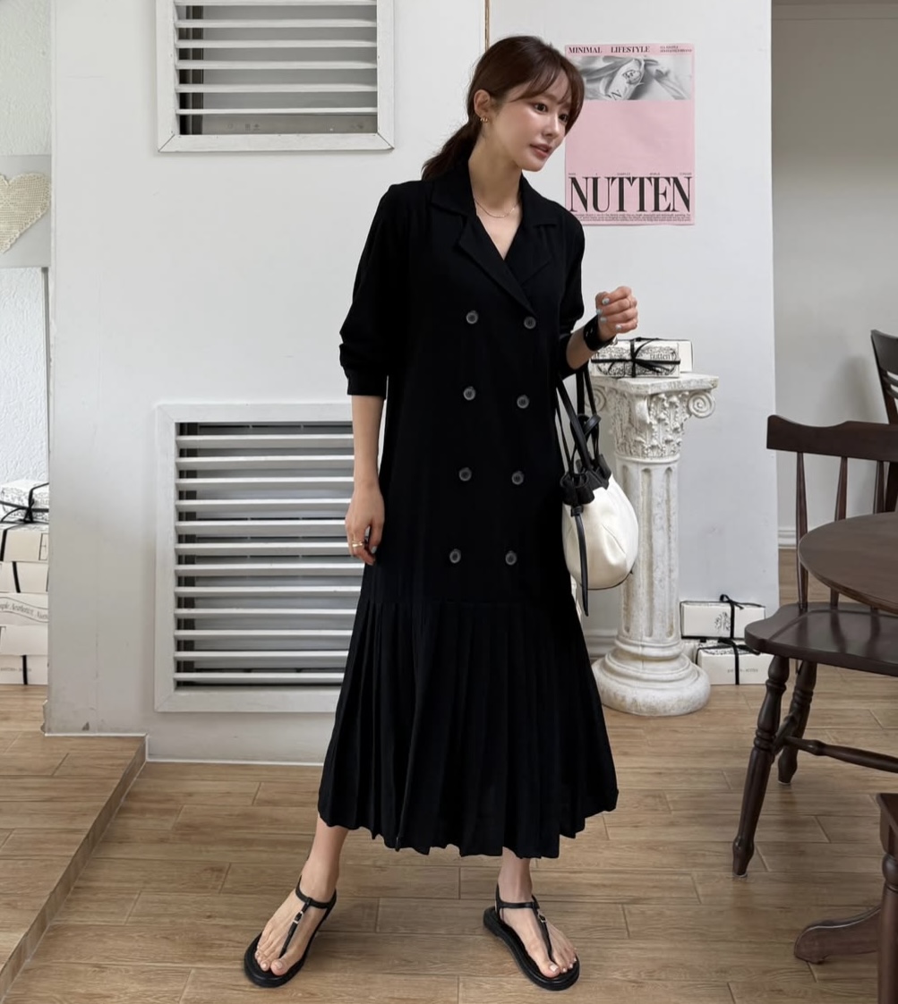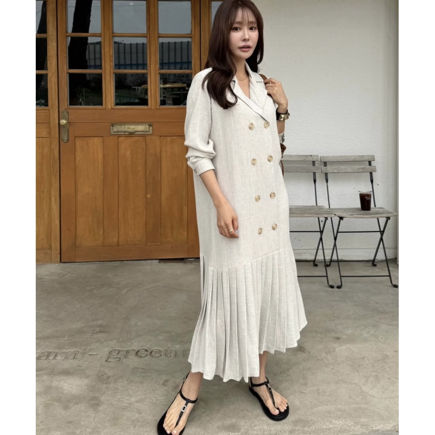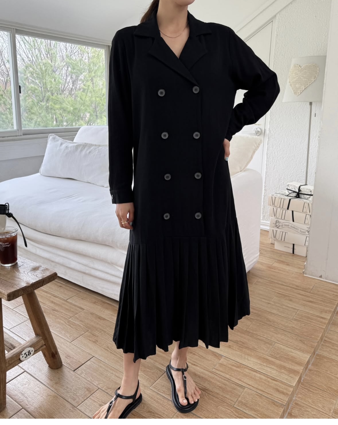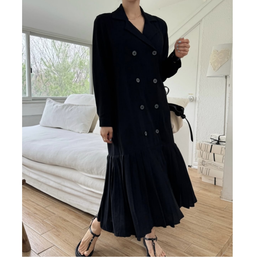 MY14643# 法式优雅百褶西装式长款连衣裙女裝貨源服裝批發