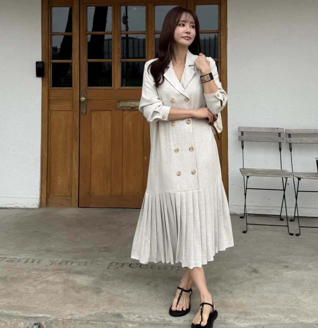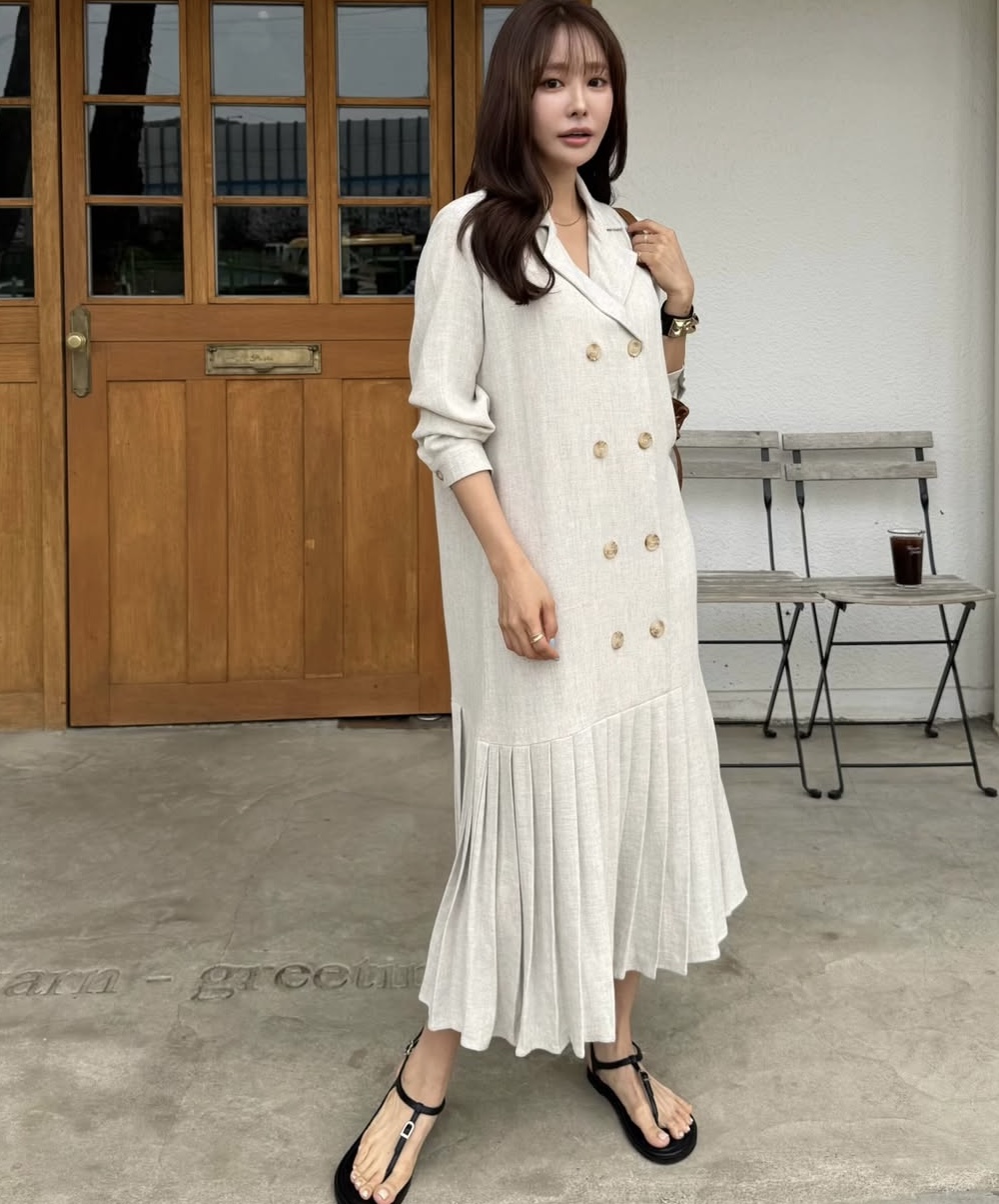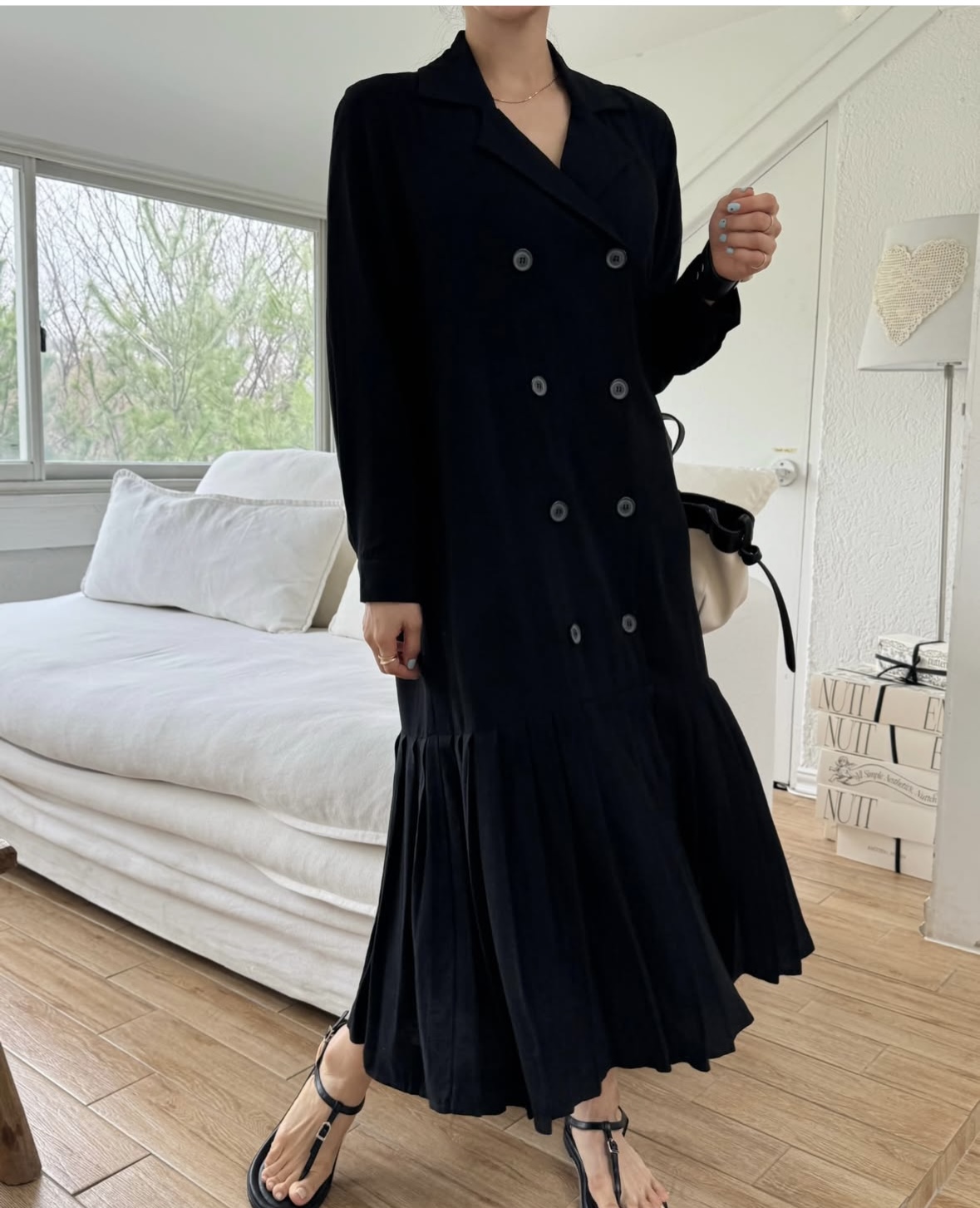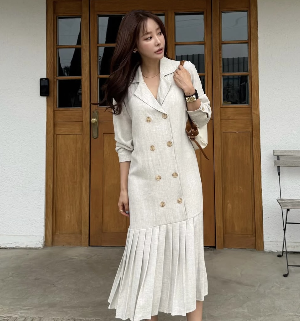 MY14643# 法式优雅百褶西装式长款连衣裙女裝貨源服裝批發