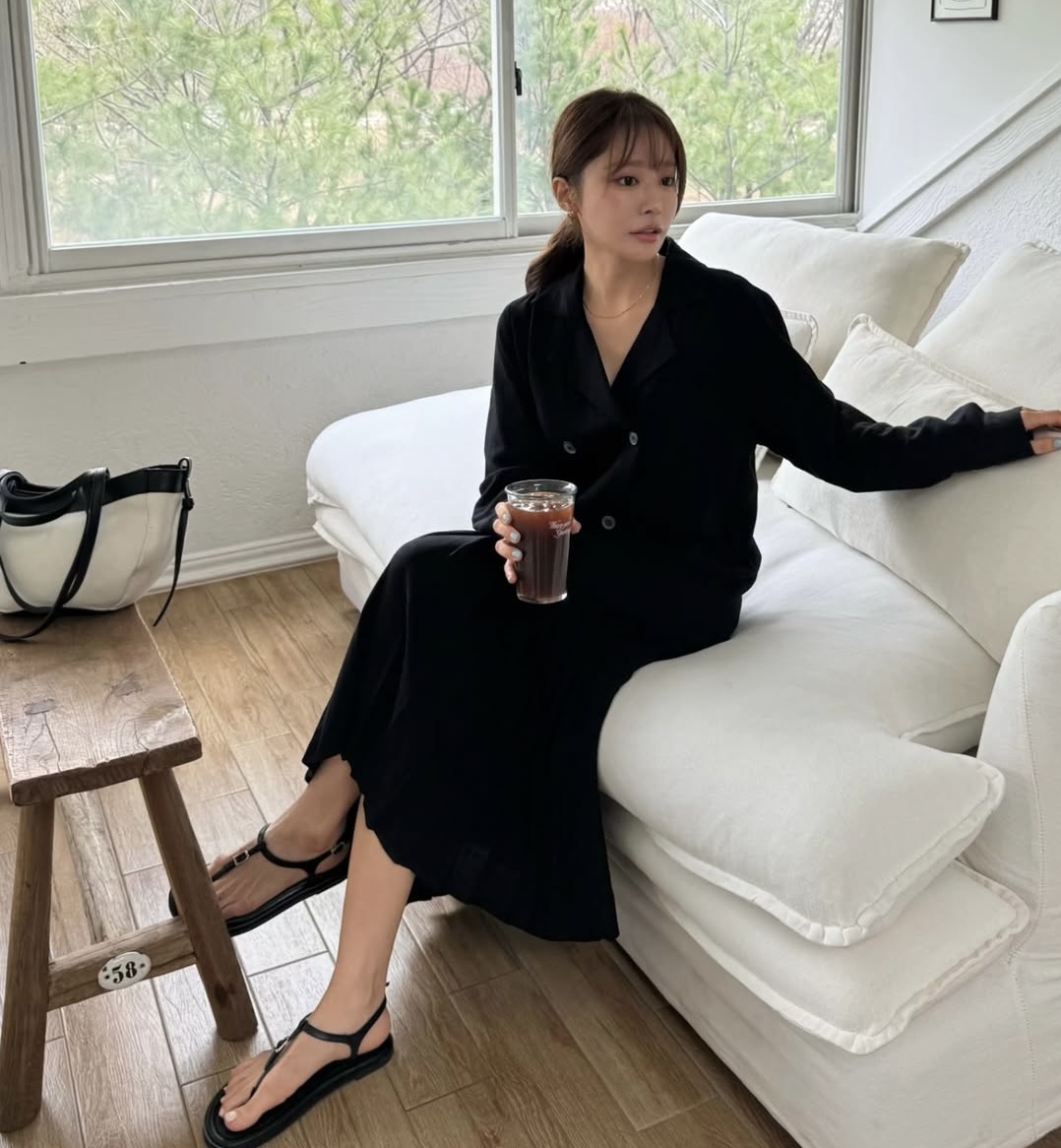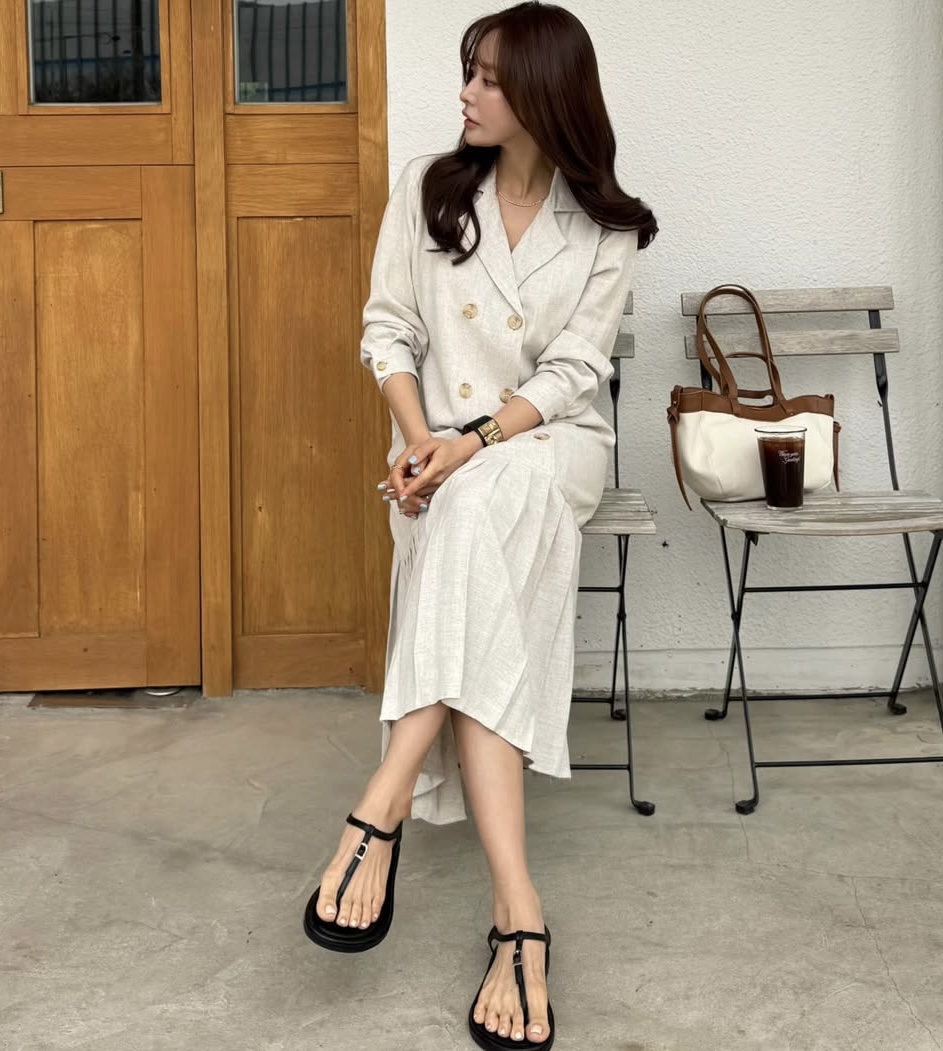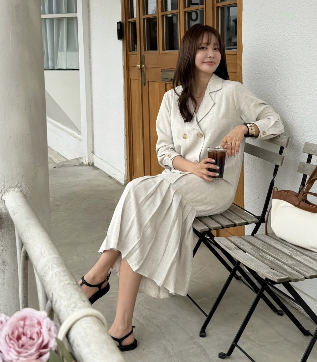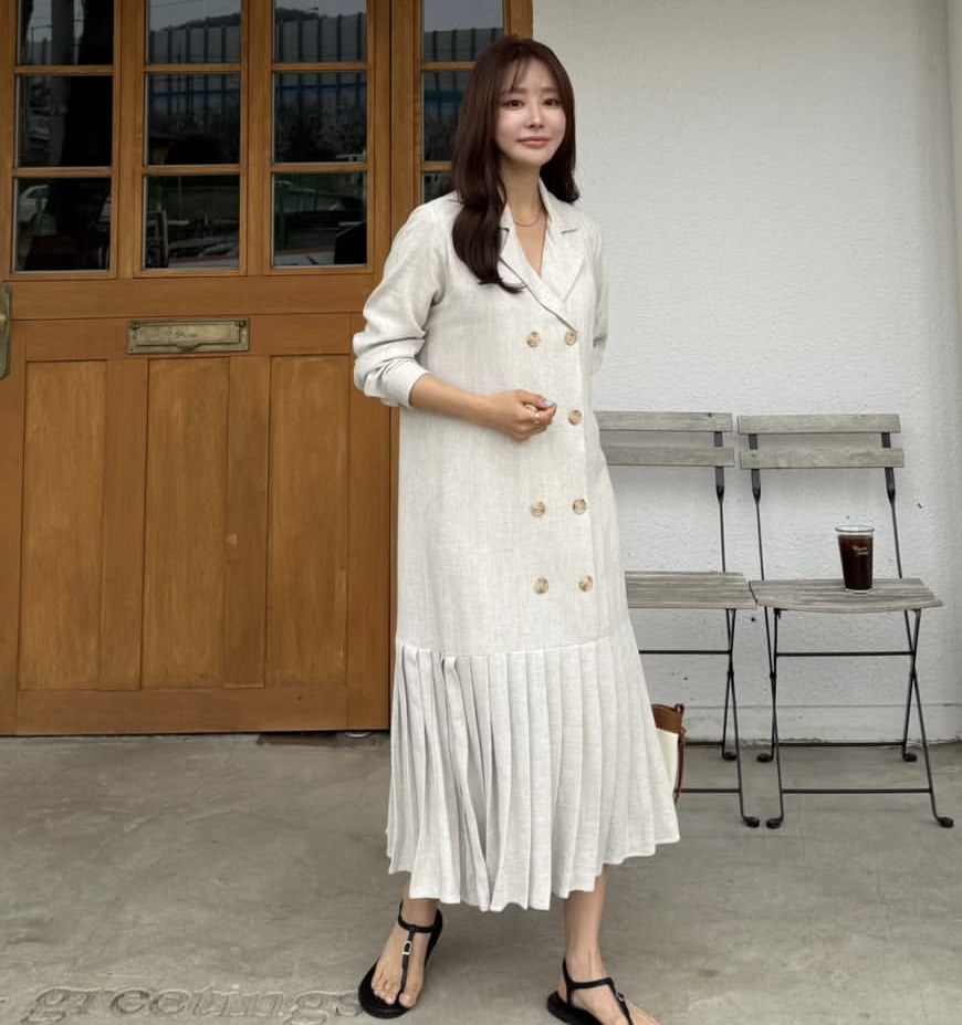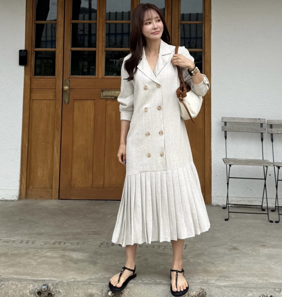 MY14643# 法式优雅百褶西装式长款连衣裙女裝貨源服裝批發
