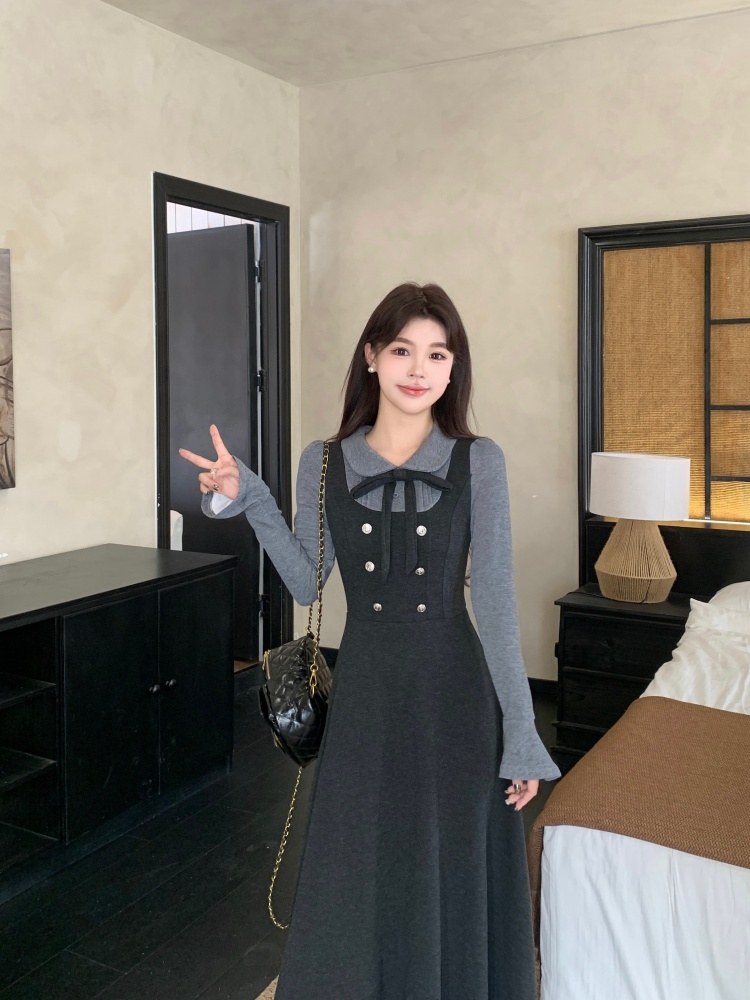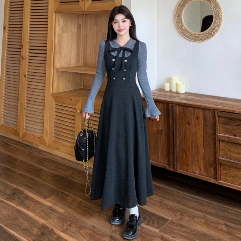 MY14650# 大码女装新款法式甜美修身高档假两件连衣裙女裝貨源服裝批發