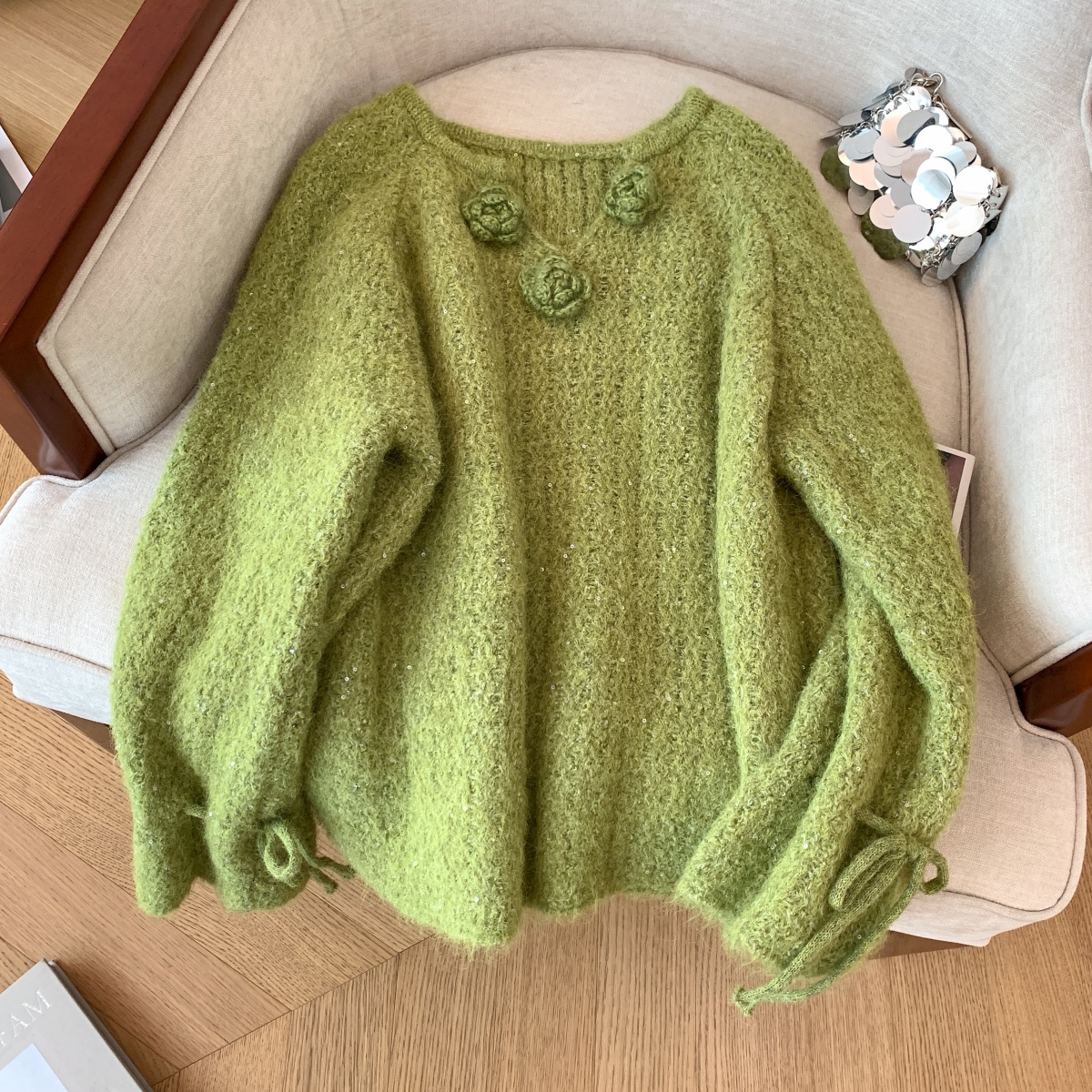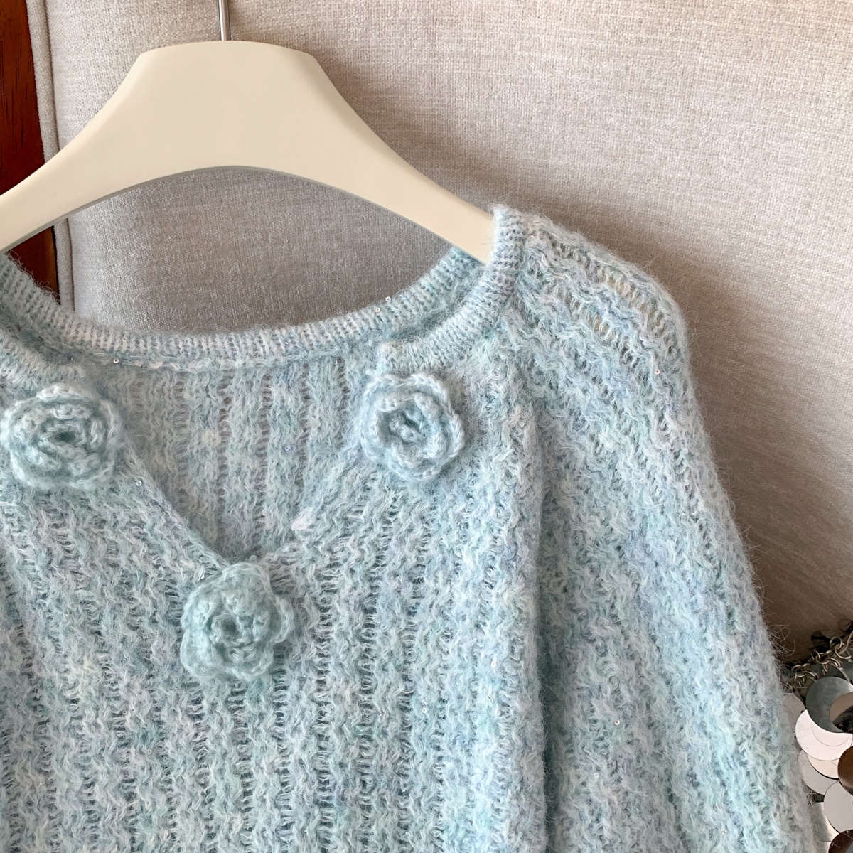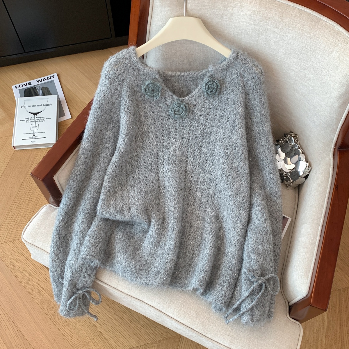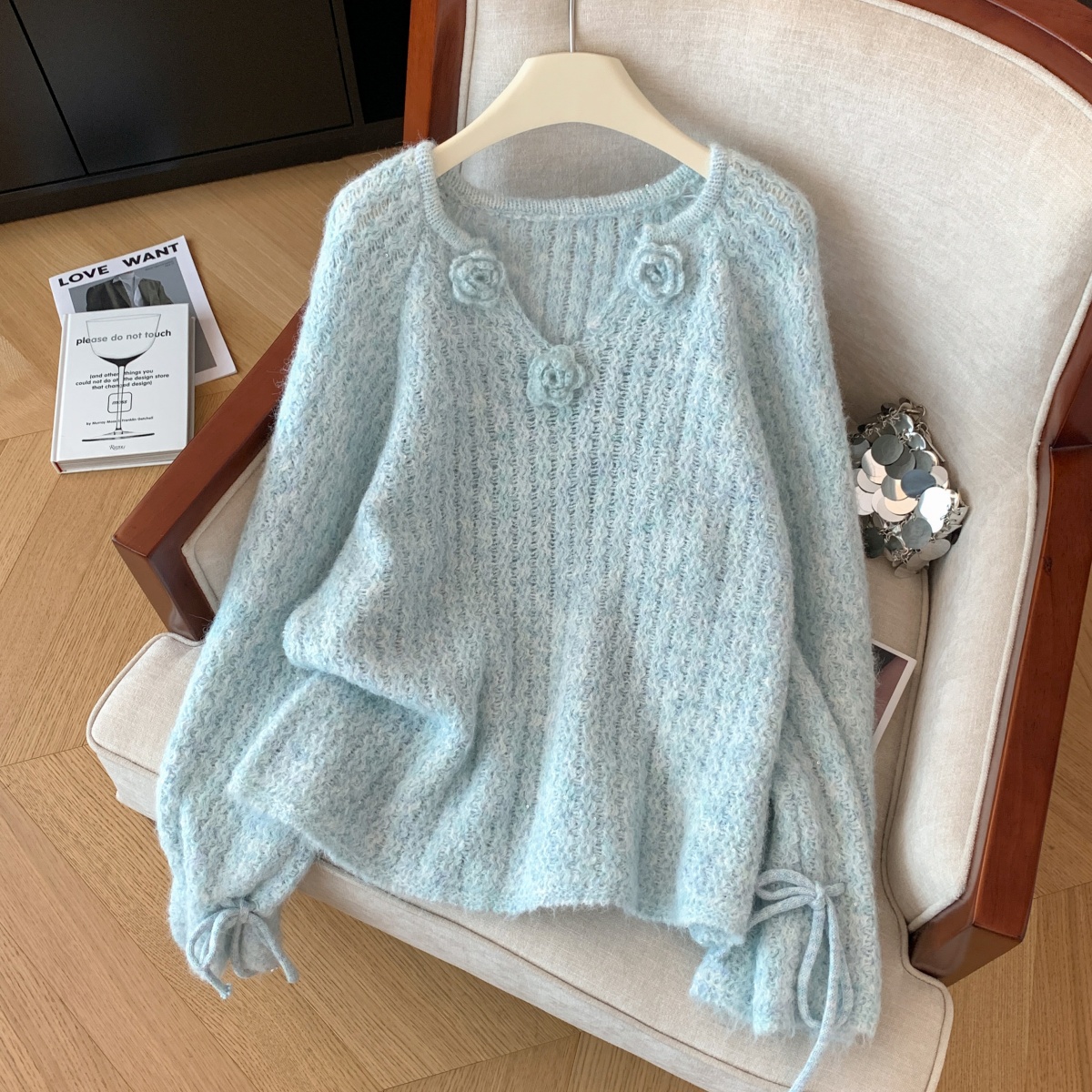 MY14657# 小香风工艺花朵洋气毛衣新款设计感亮片宽松气质上衣女裝貨源服裝批發
