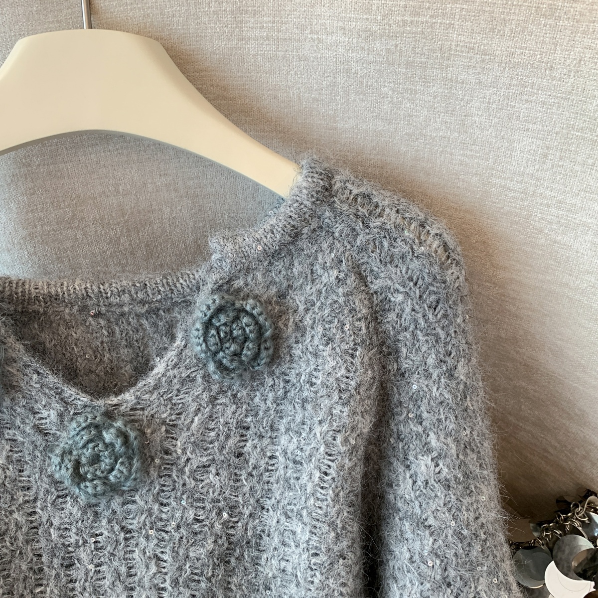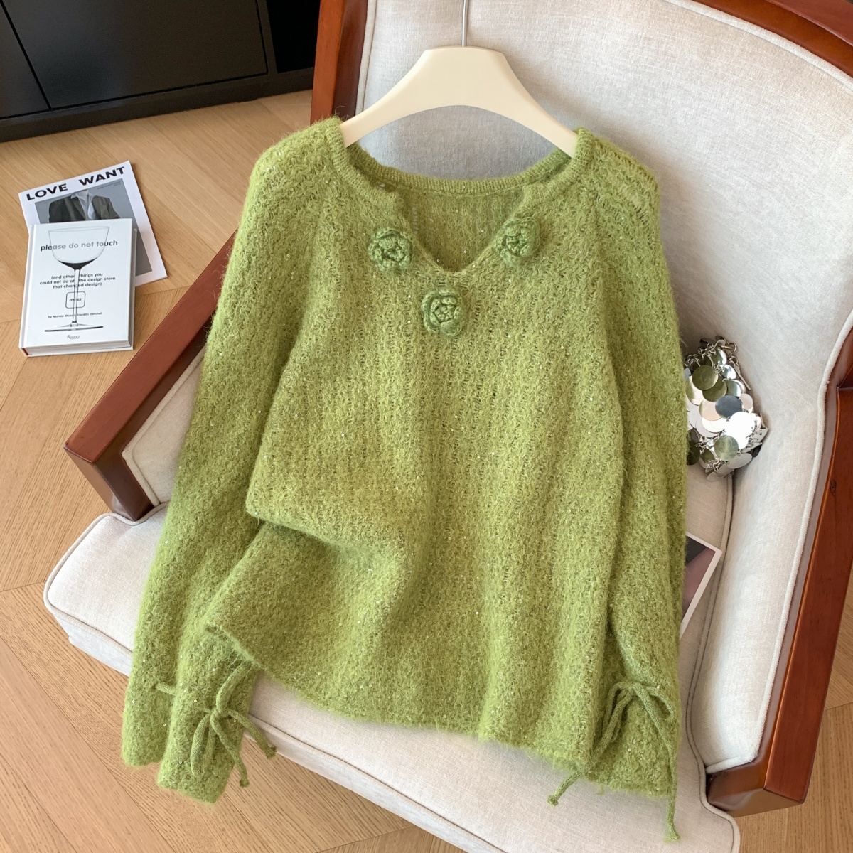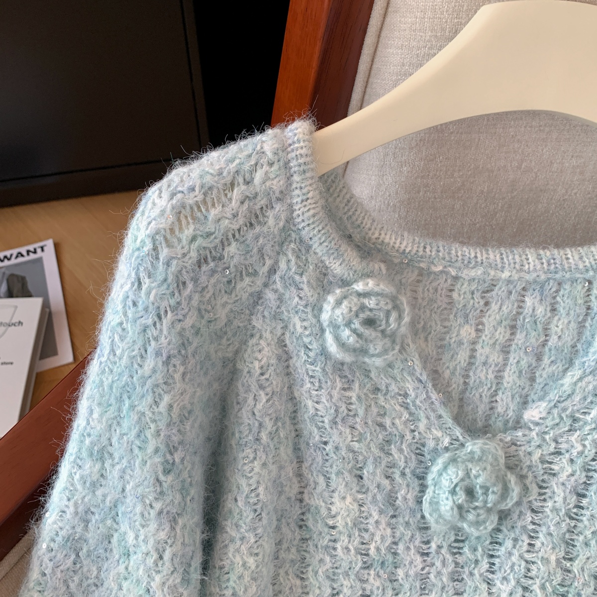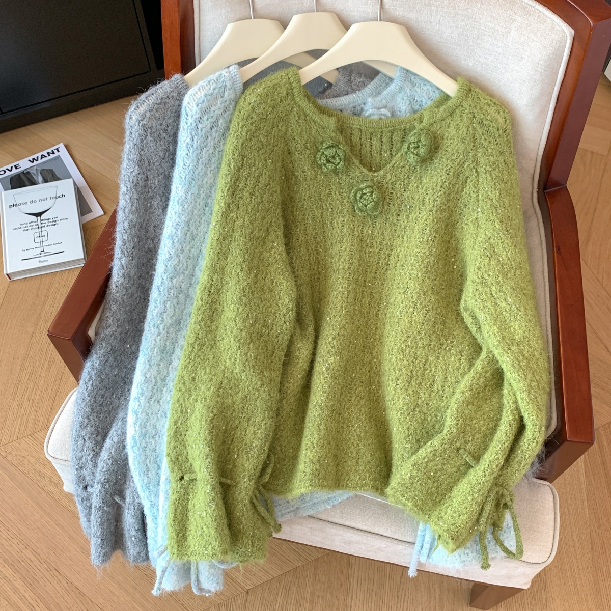 MY14657# 小香风工艺花朵洋气毛衣新款设计感亮片宽松气质上衣女裝貨源服裝批發
