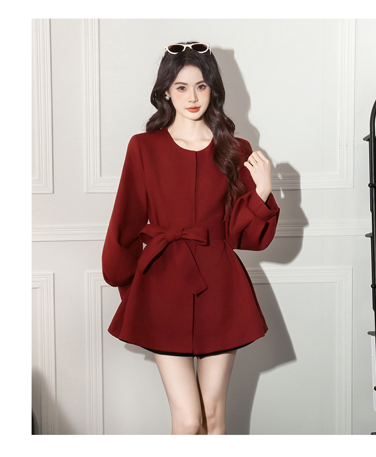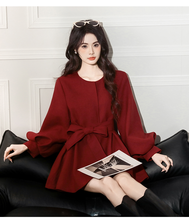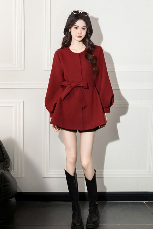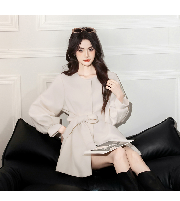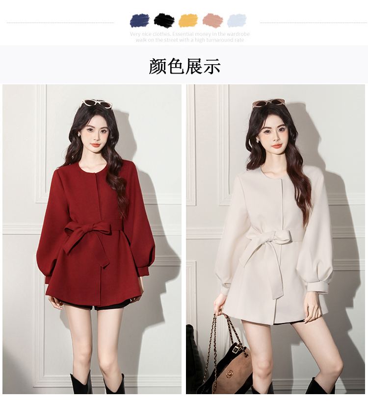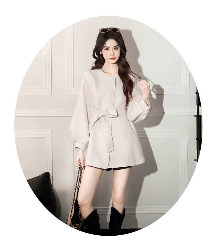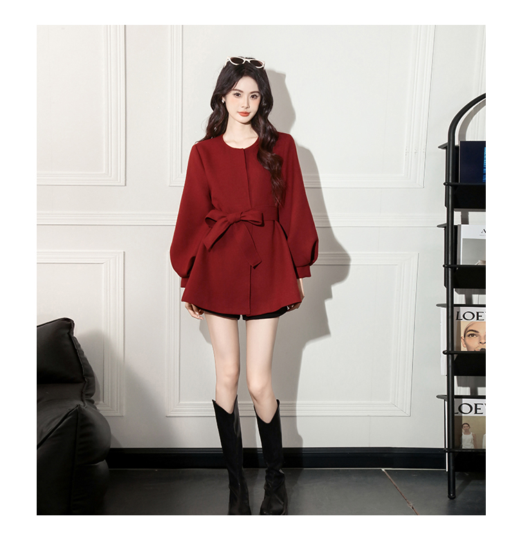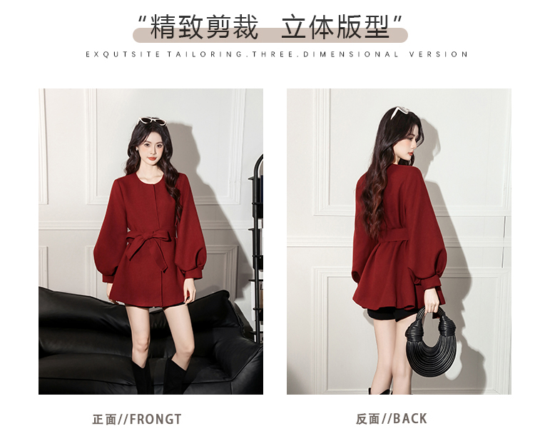 MY14669# 新款韩系甜美减龄系带蝴蝶结遮肉显瘦小个子毛呢外套女裝貨源服裝批發