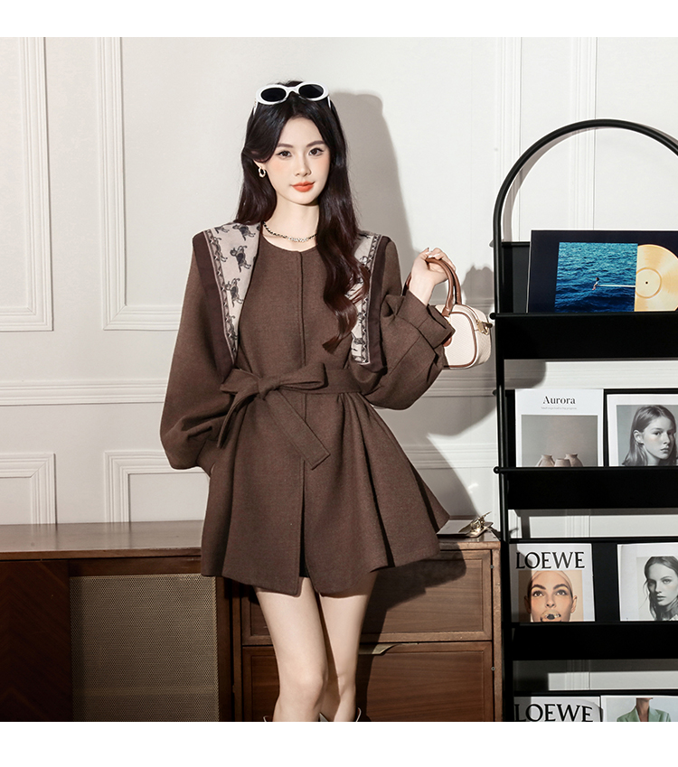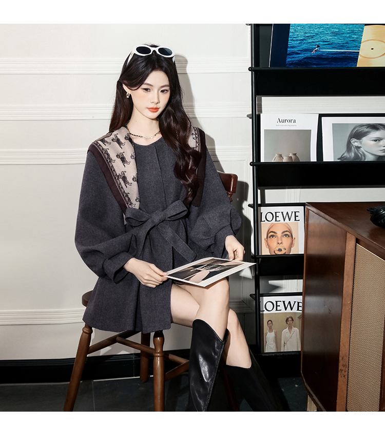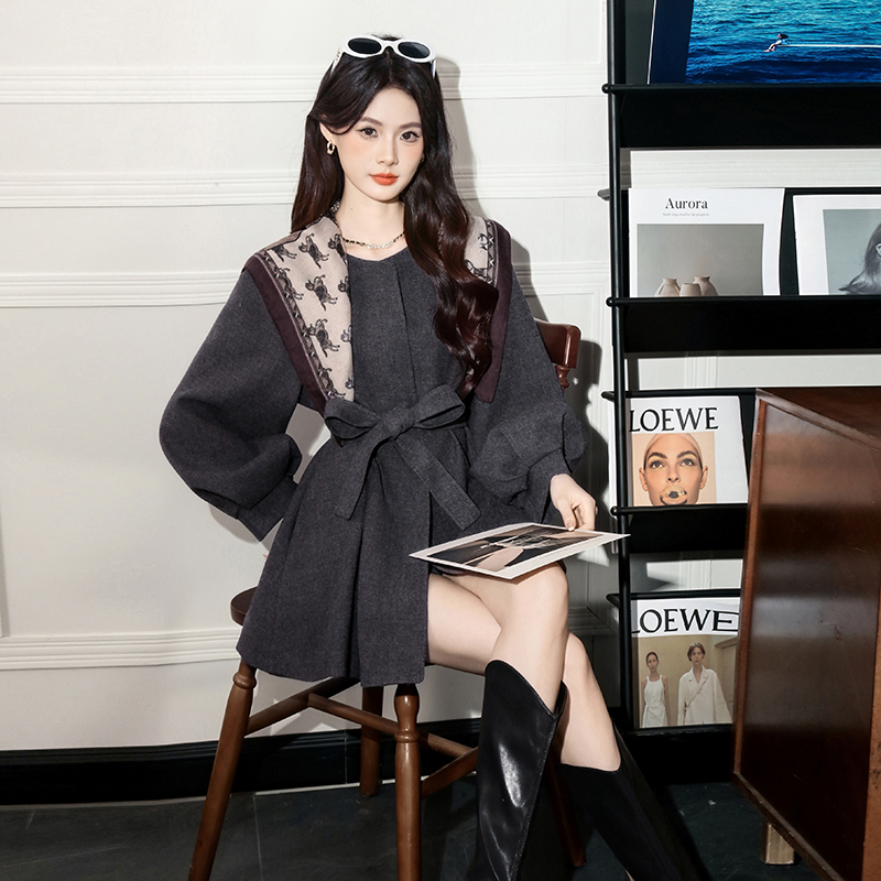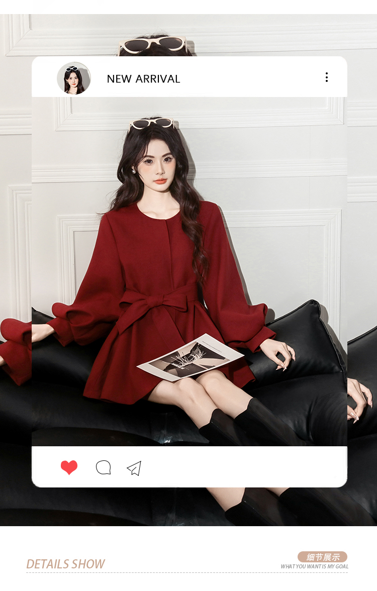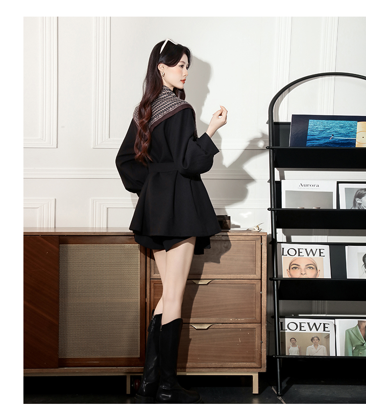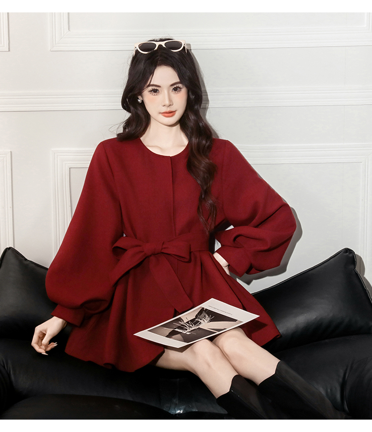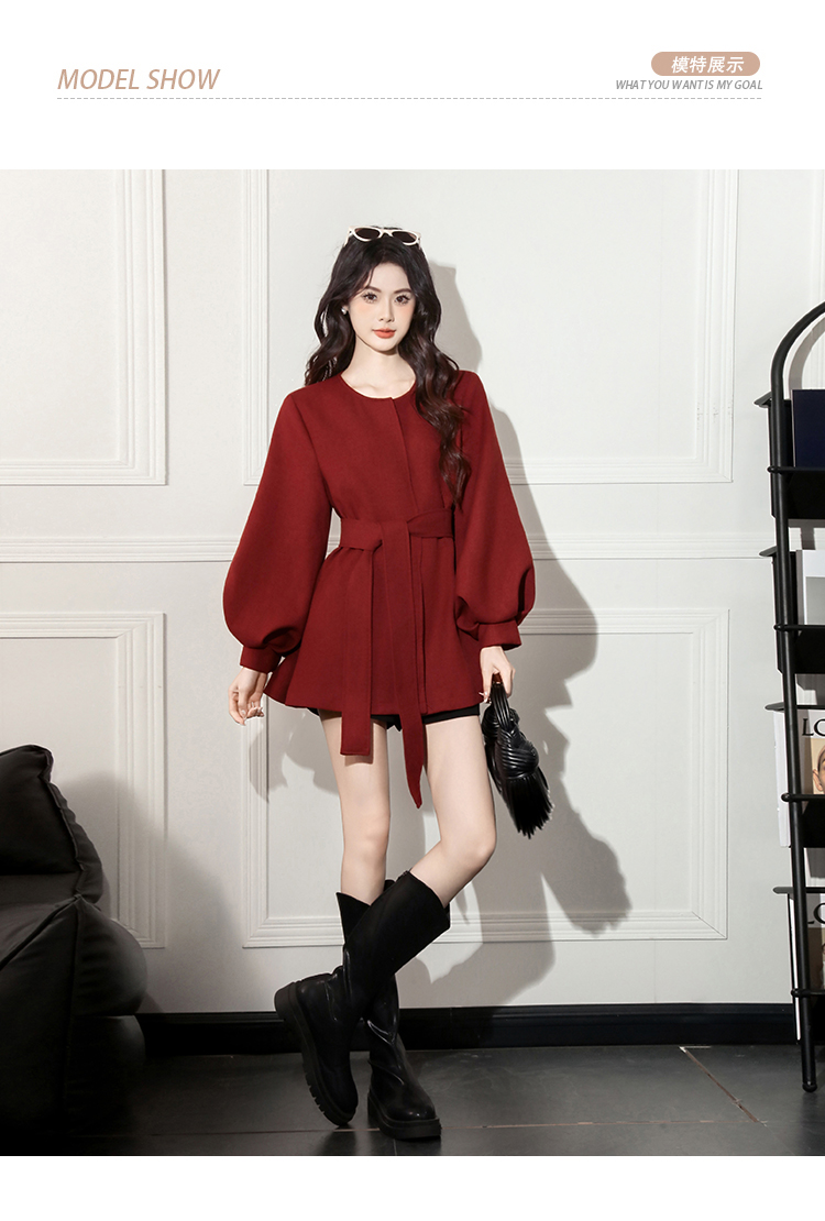 MY14669# 新款韩系甜美减龄系带蝴蝶结遮肉显瘦小个子毛呢外套女裝貨源服裝批發