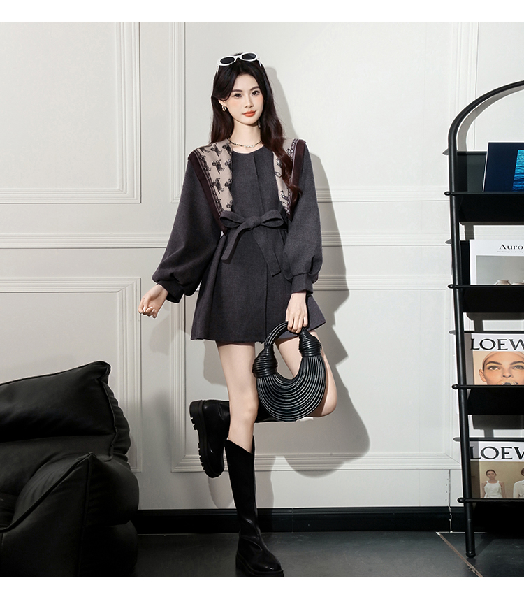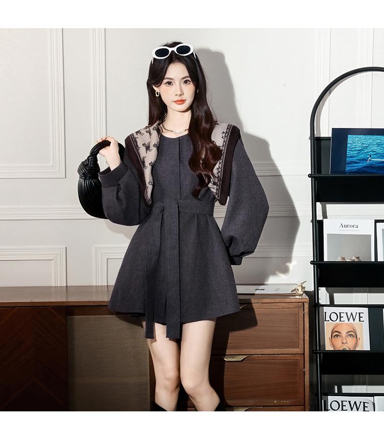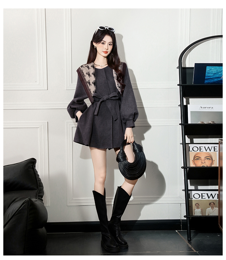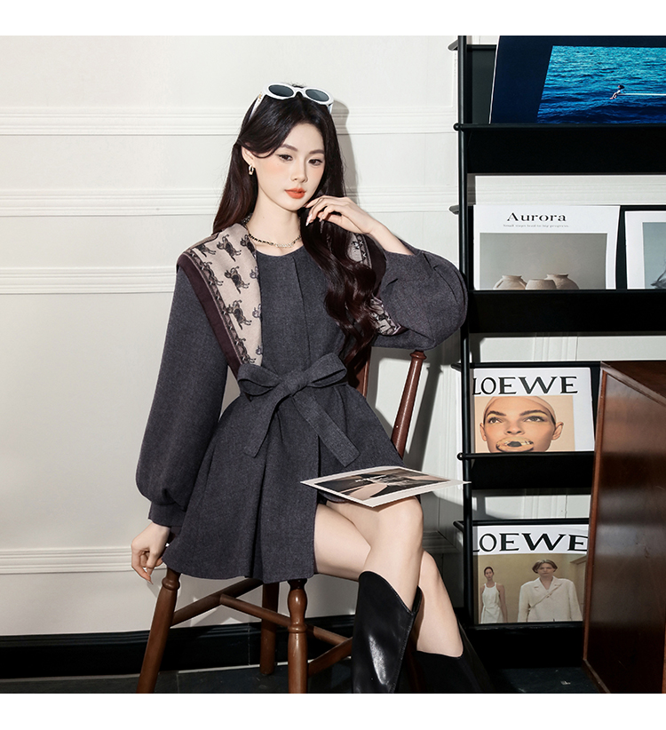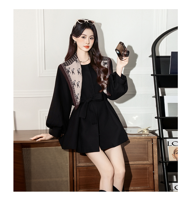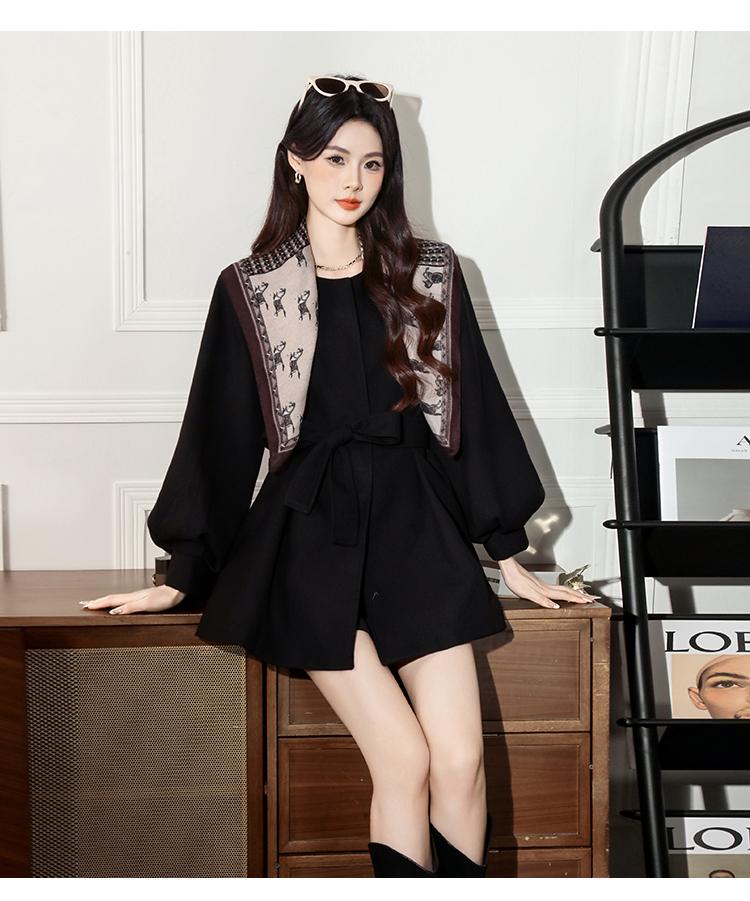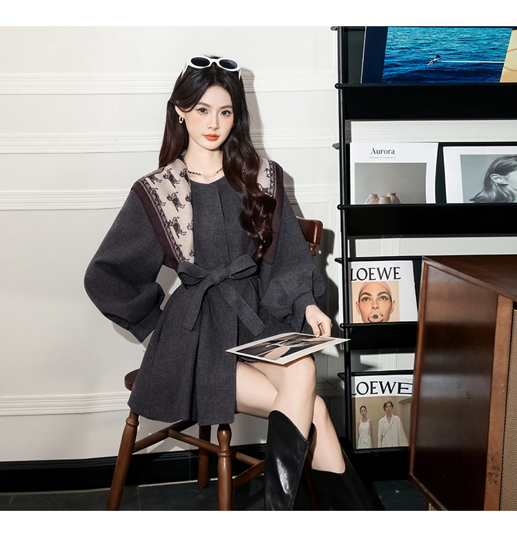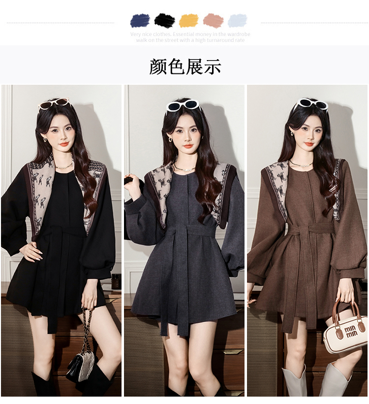 MY14669# 新款韩系甜美减龄系带蝴蝶结遮肉显瘦小个子毛呢外套女裝貨源服裝批發