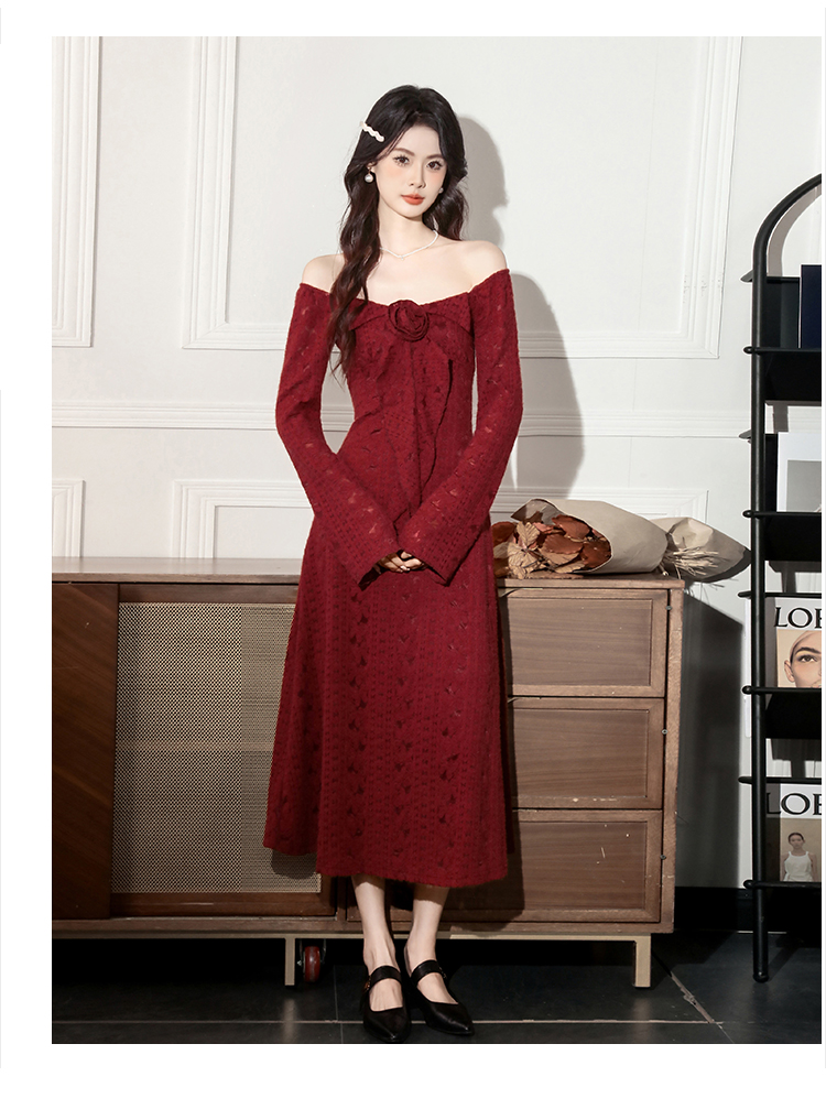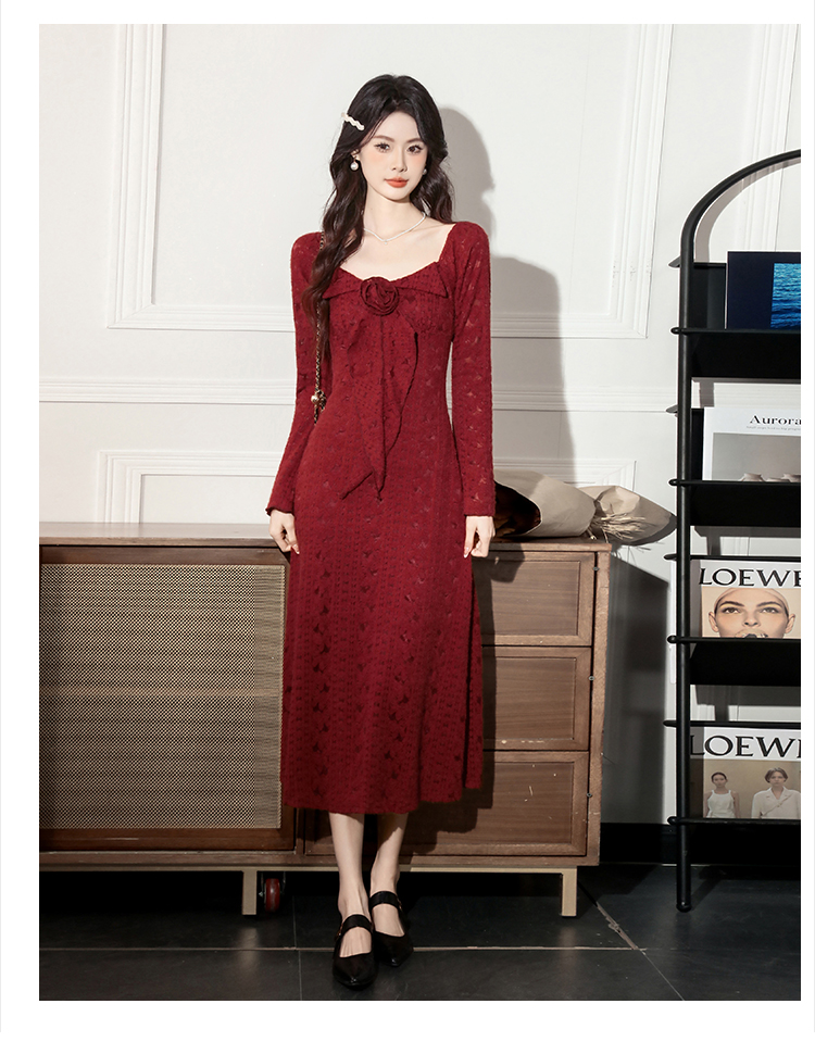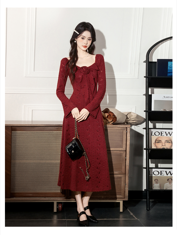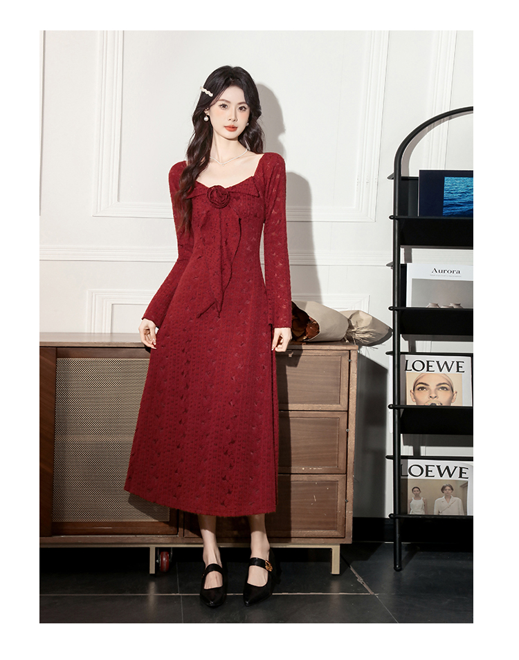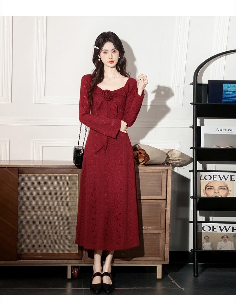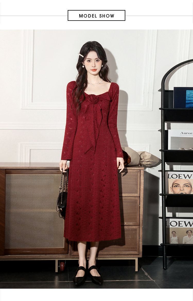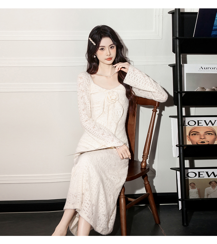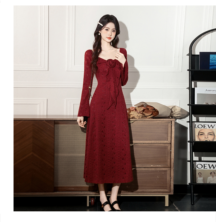 MY14673# 新款温柔优雅花朵磨毛蕾丝修身显瘦长款连衣裙女裝貨源服裝批發