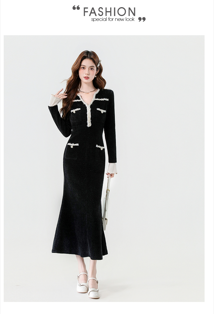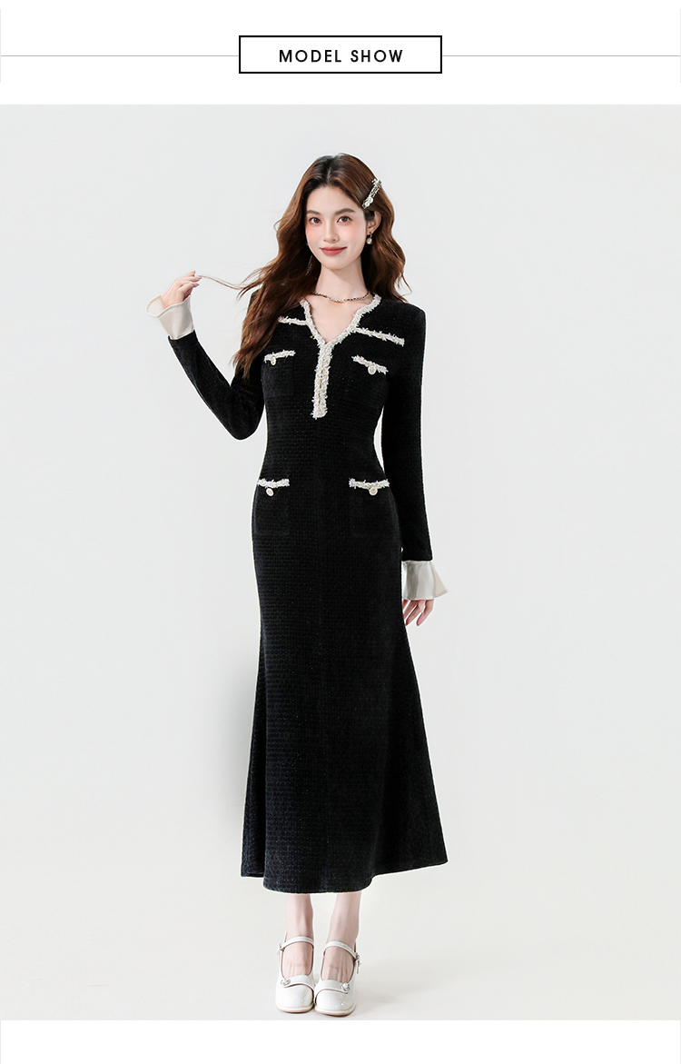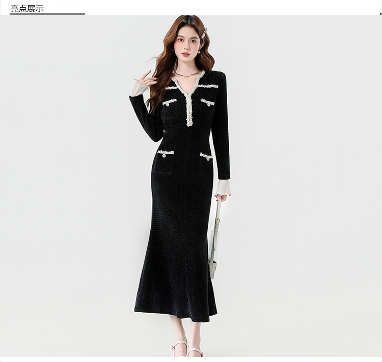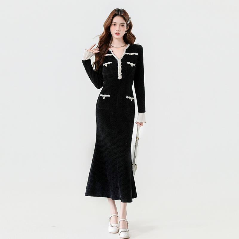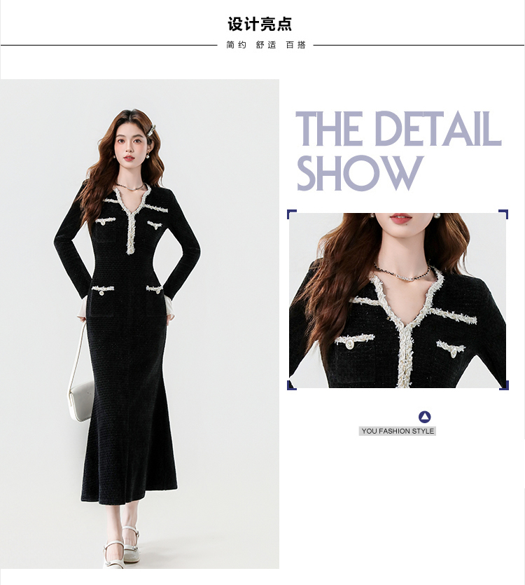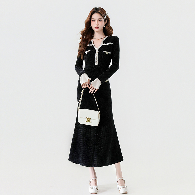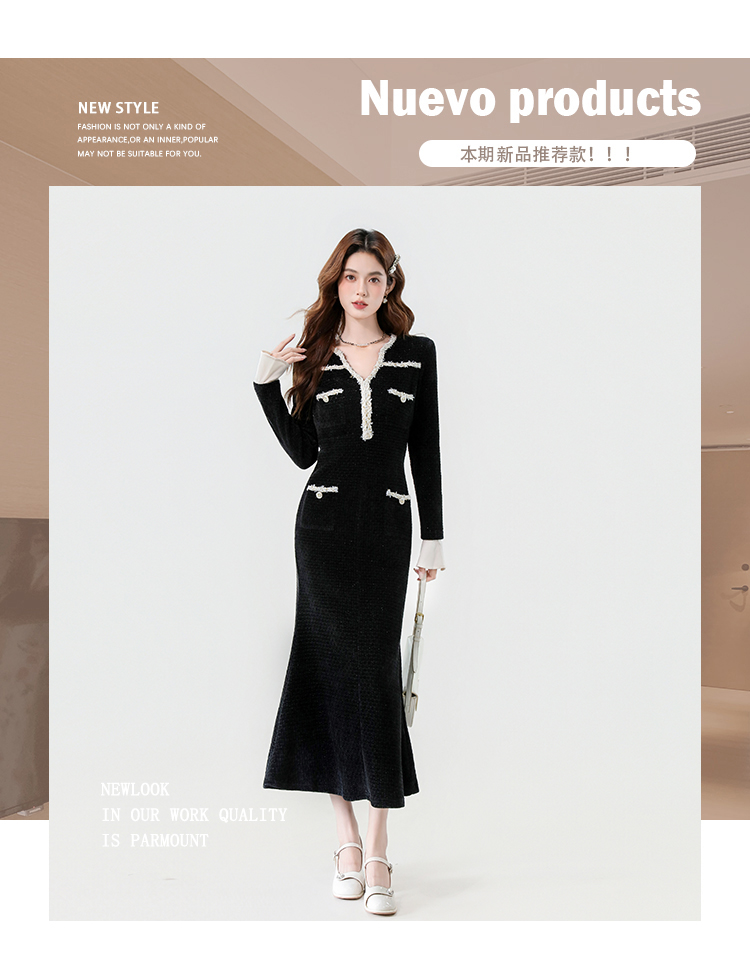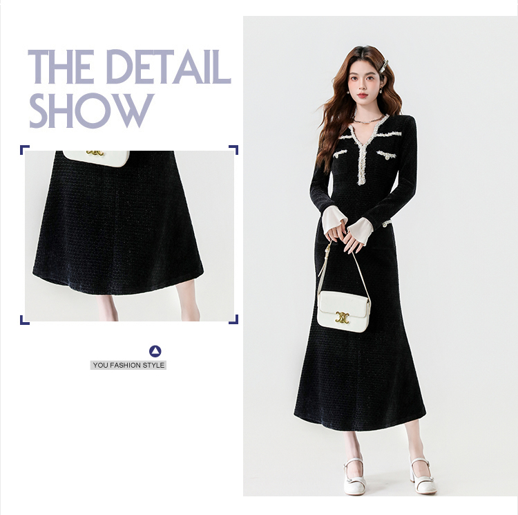 MY14674# 新款名媛气质优雅高级感小香风长款连衣裙女裝貨源服裝批發