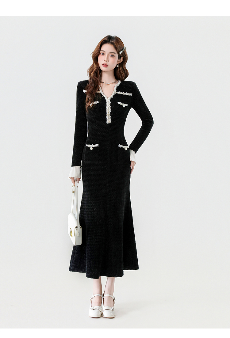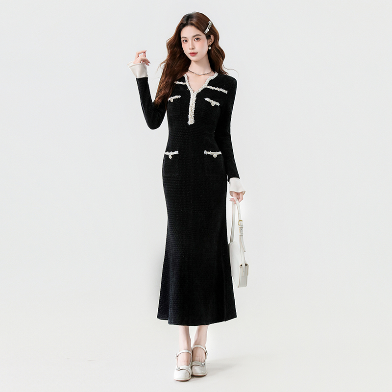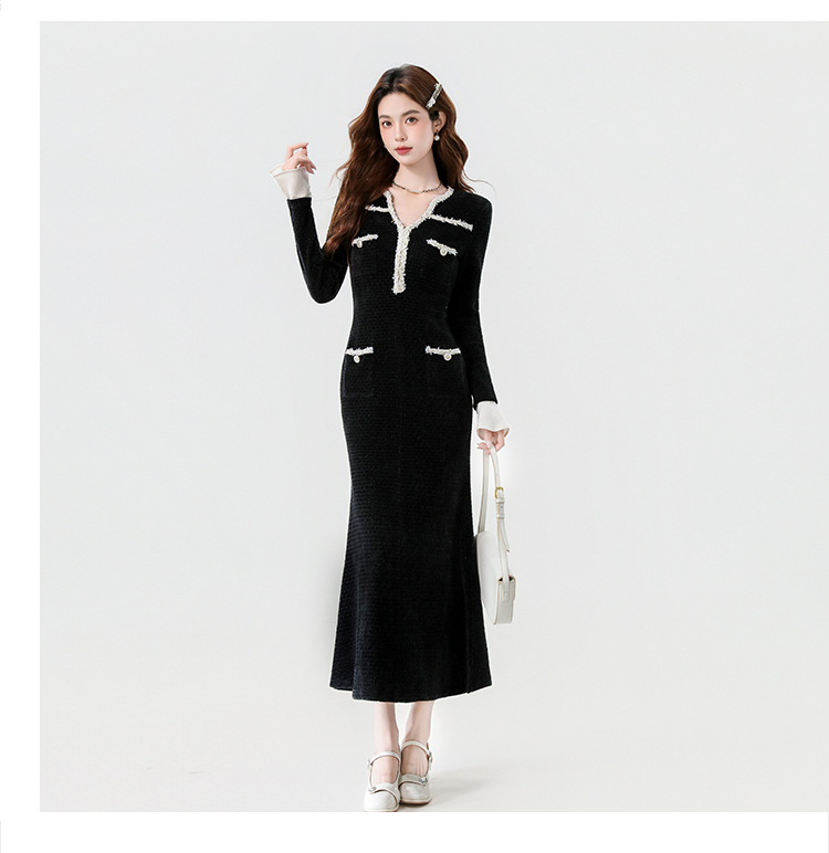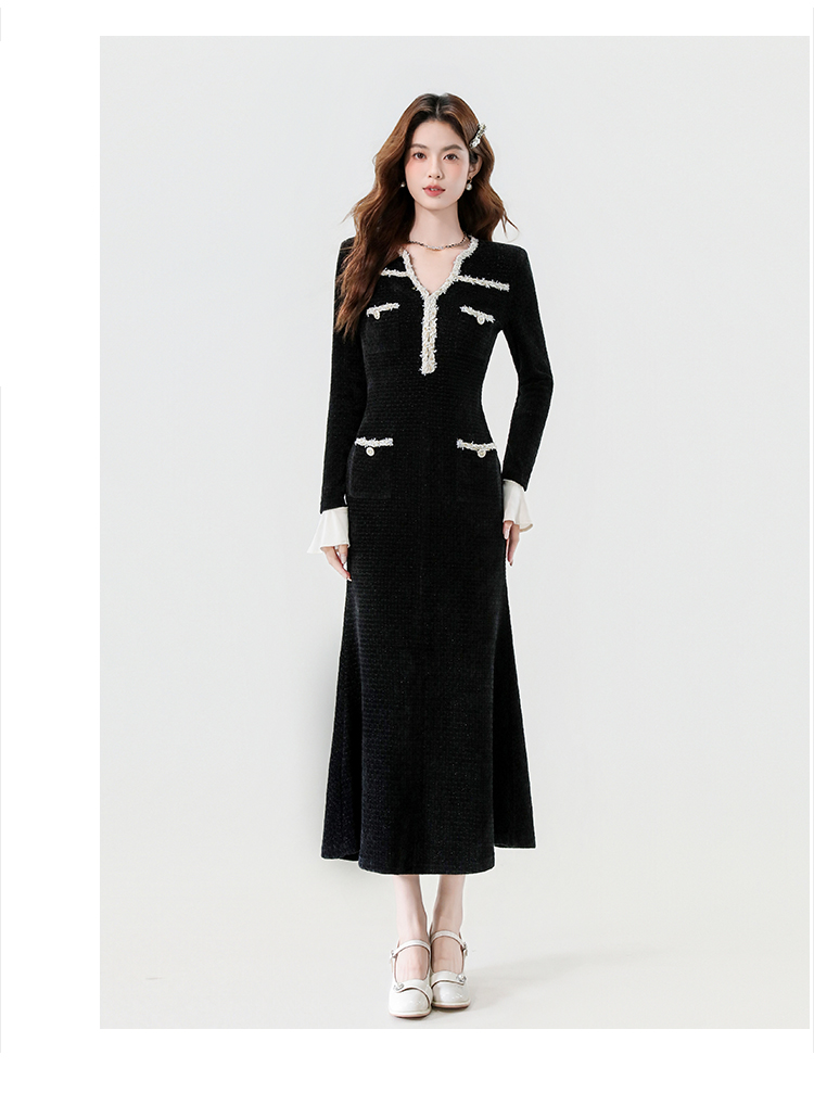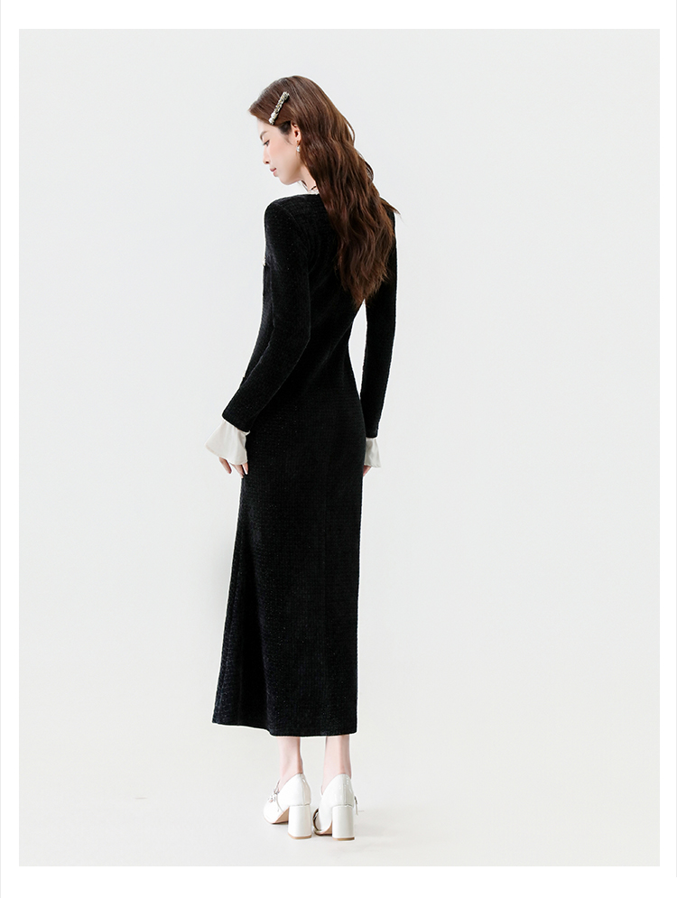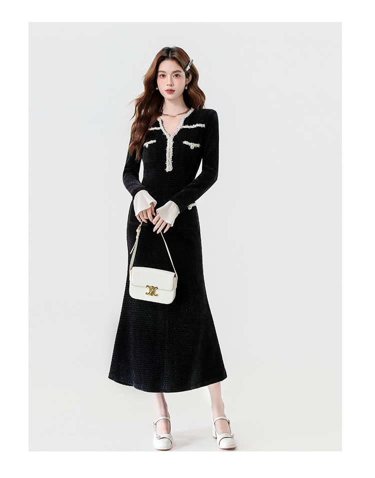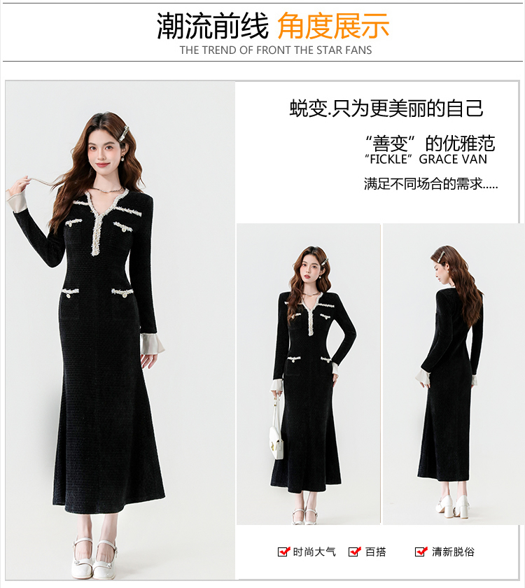 MY14674# 新款名媛气质优雅高级感小香风长款连衣裙女裝貨源服裝批發