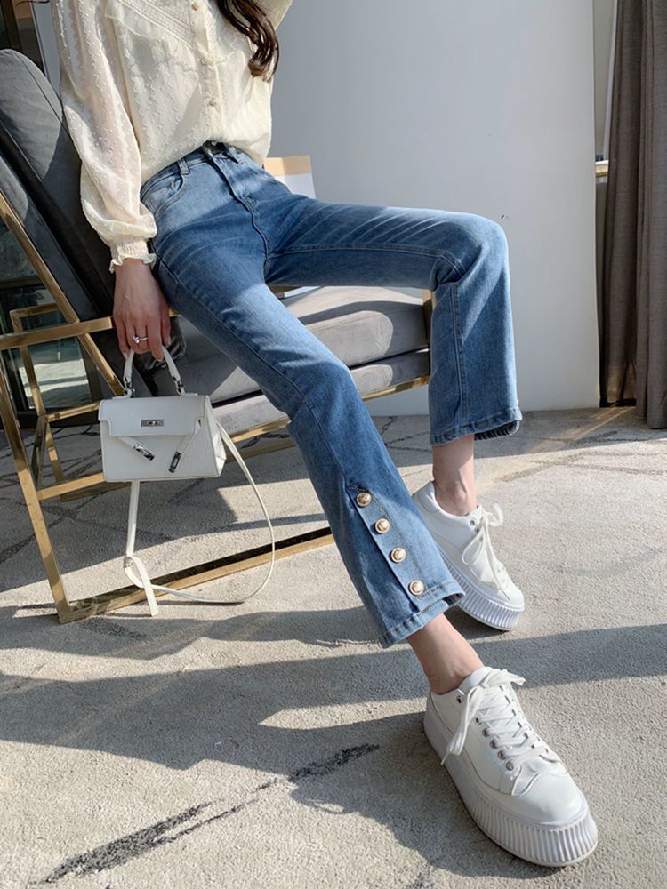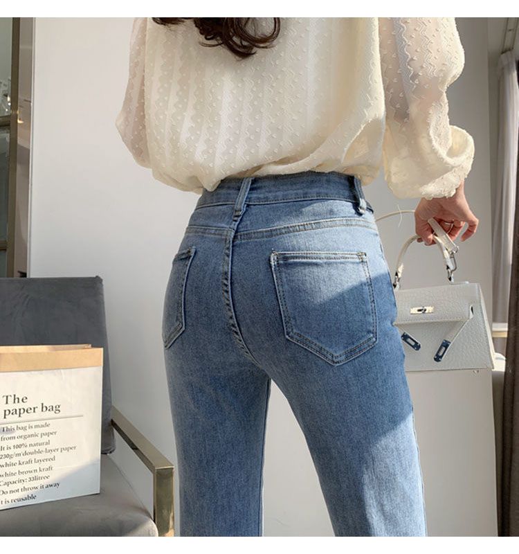 MY14676# 优质超薄显瘦香蕉裤哈伦裤高腰显瘦百搭牛仔裤女深蓝秋夏小个子裤女裝貨源服裝批發