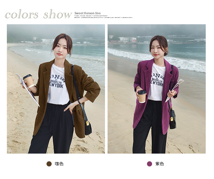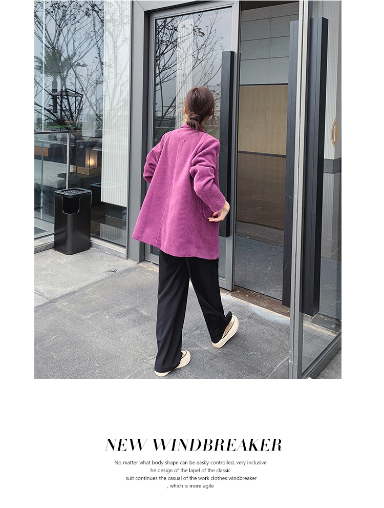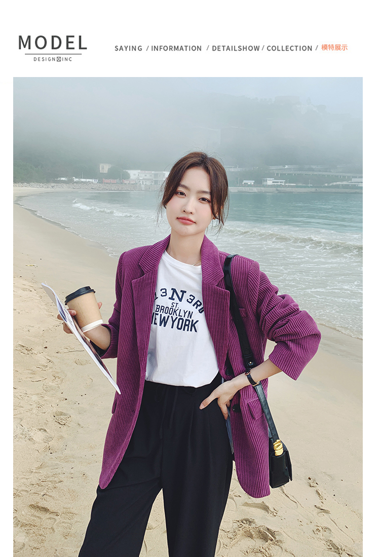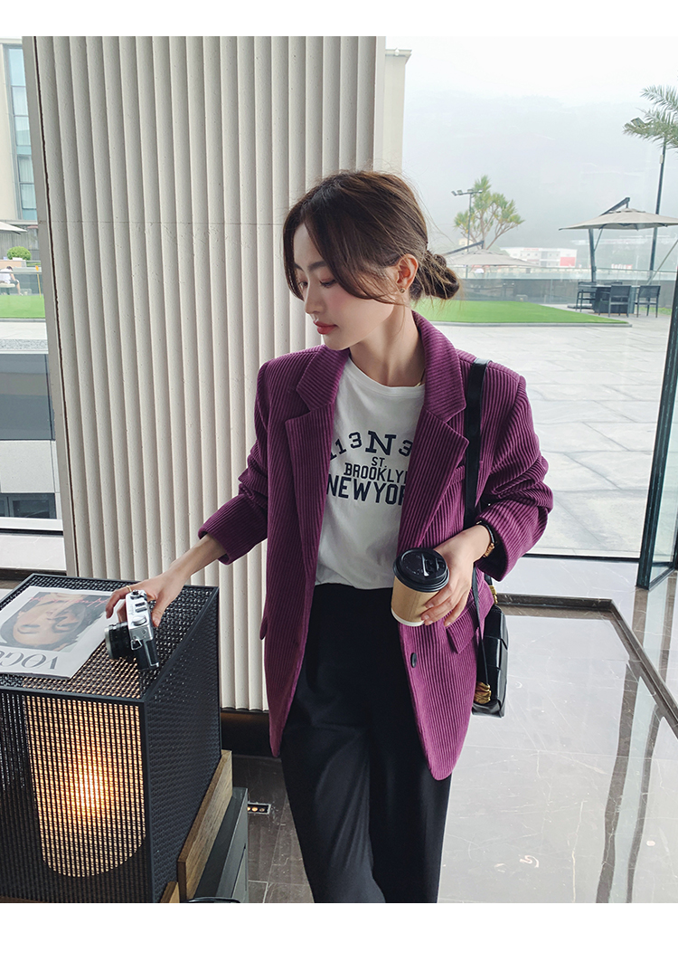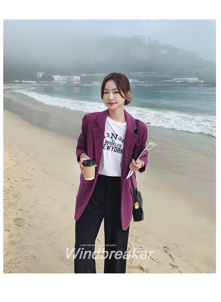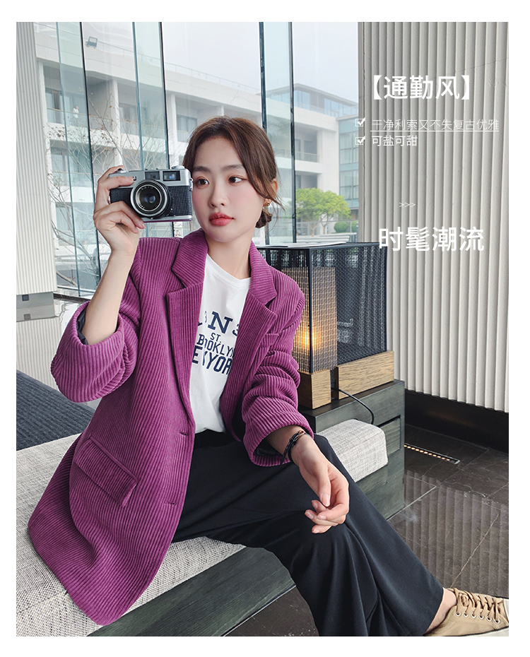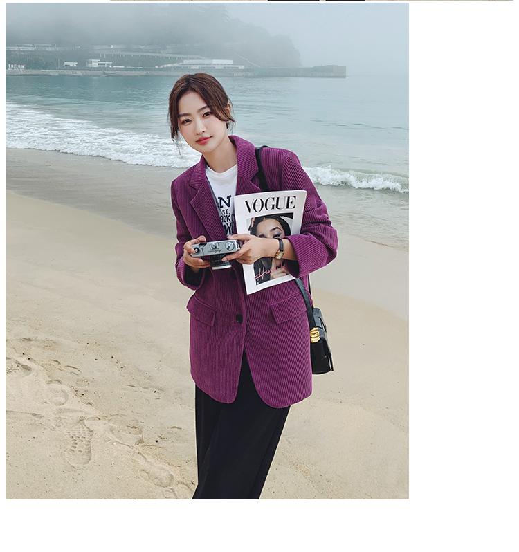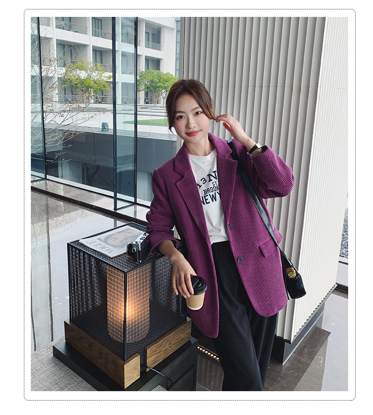 MY14691# 紫色灯芯绒西装外套新款秋冬小个子复古宽松休闲咖色小西服女裝貨源服裝批發