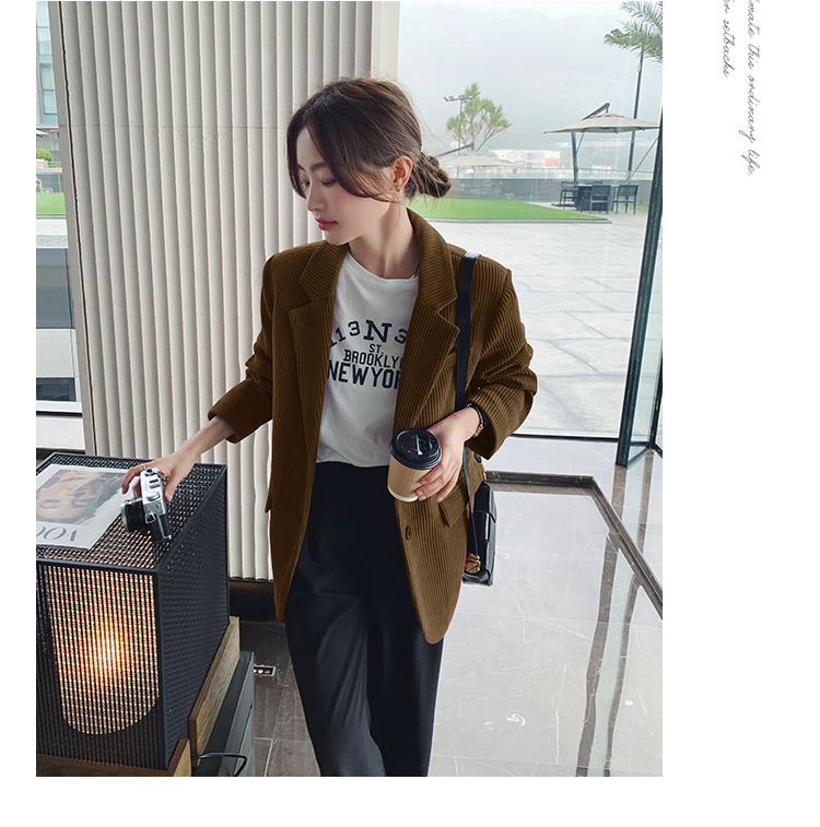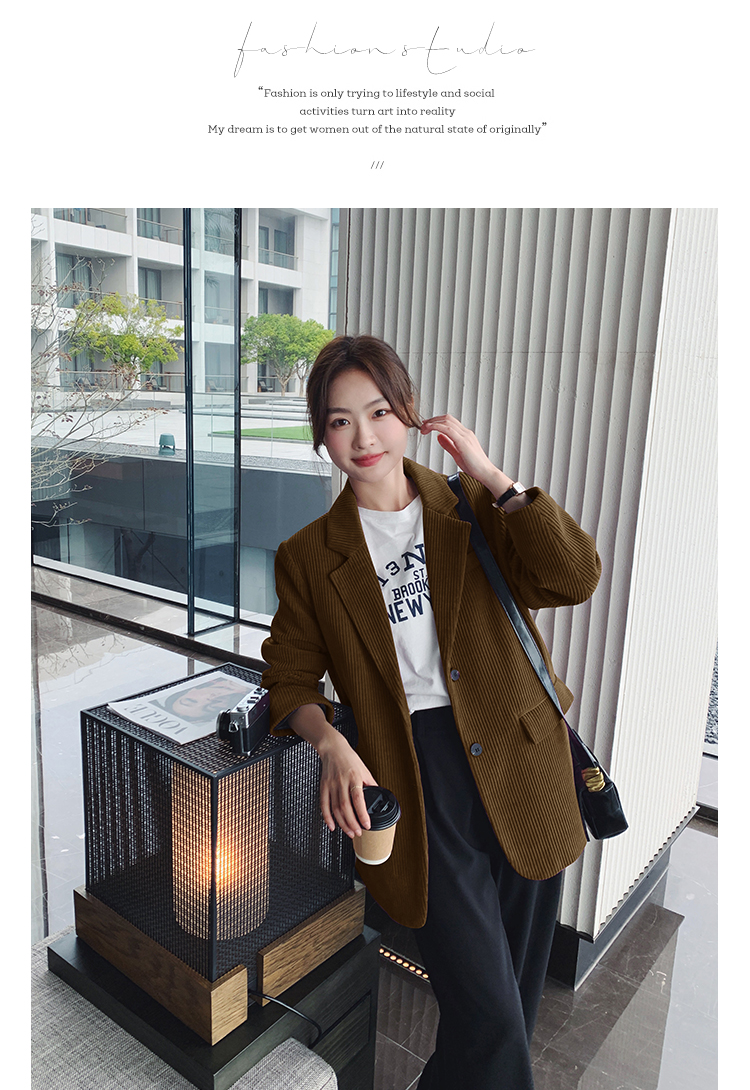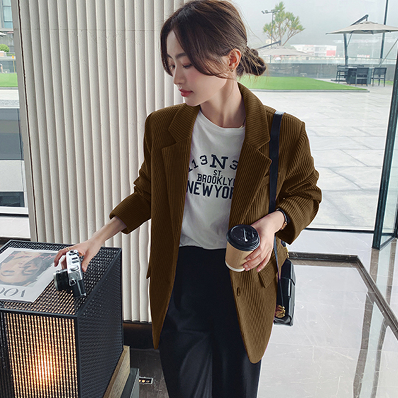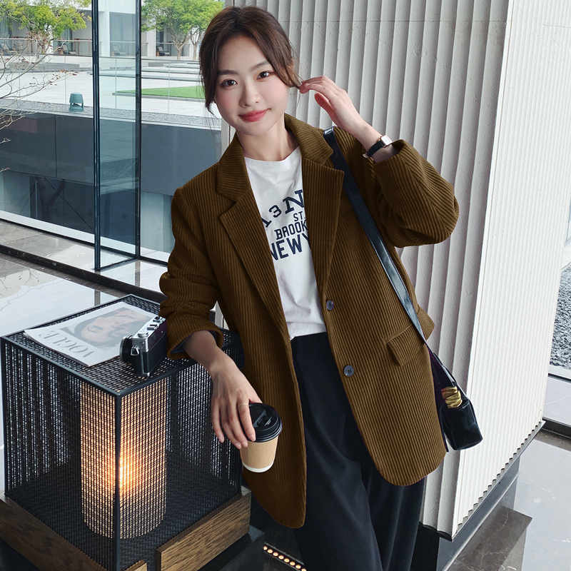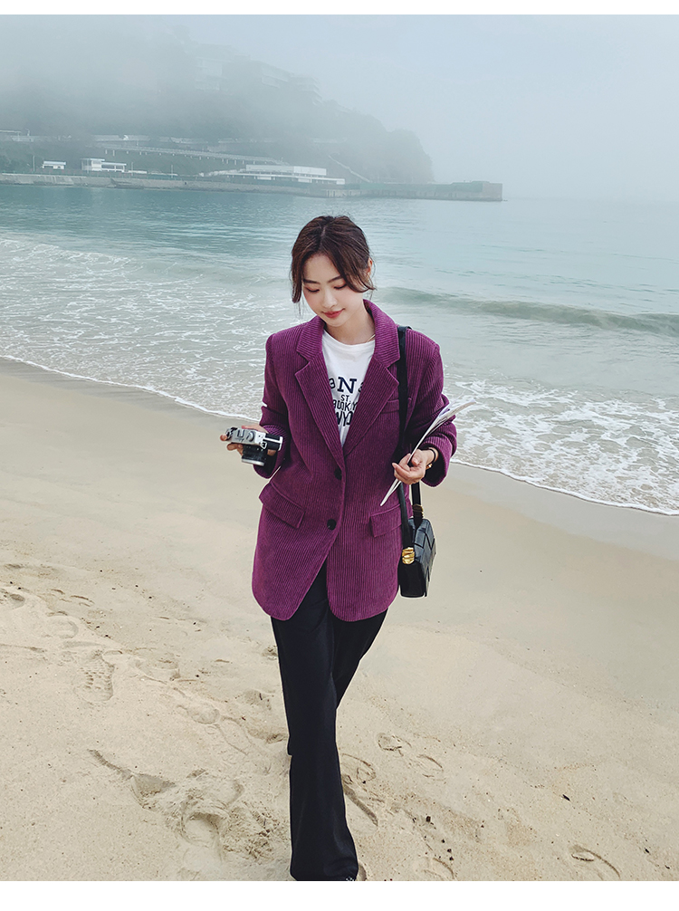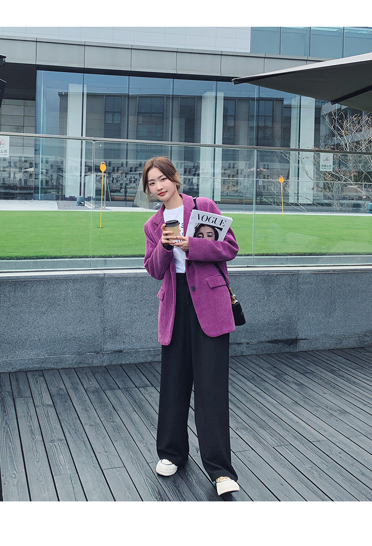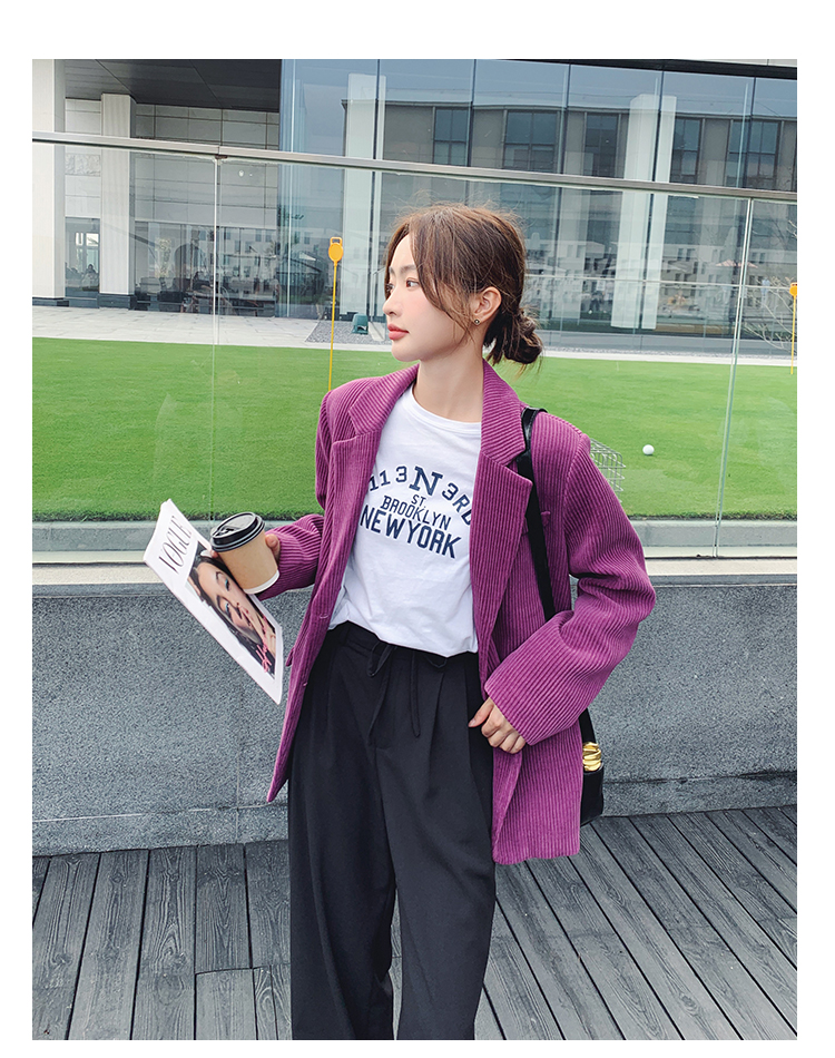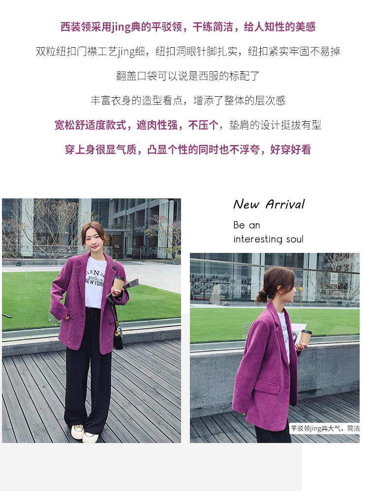 MY14691# 紫色灯芯绒西装外套新款秋冬小个子复古宽松休闲咖色小西服女裝貨源服裝批發