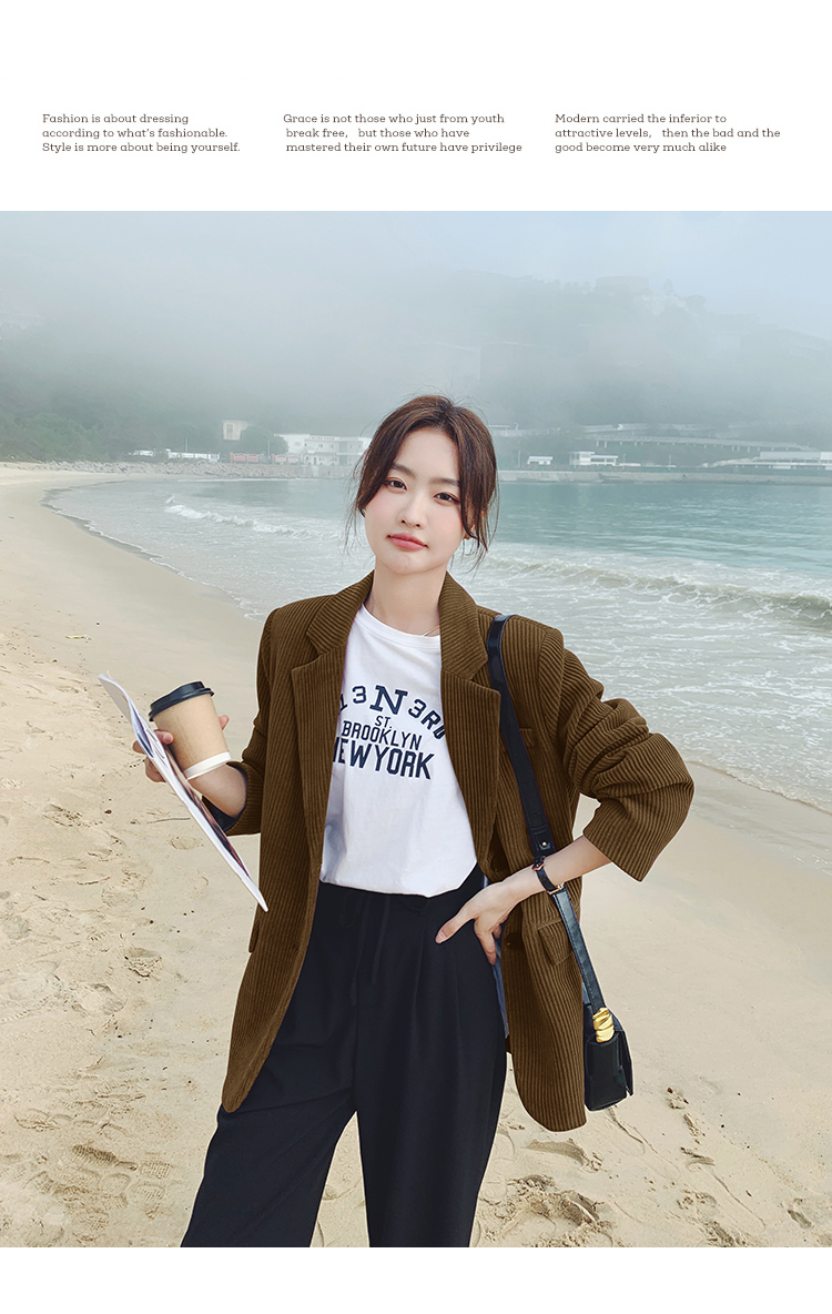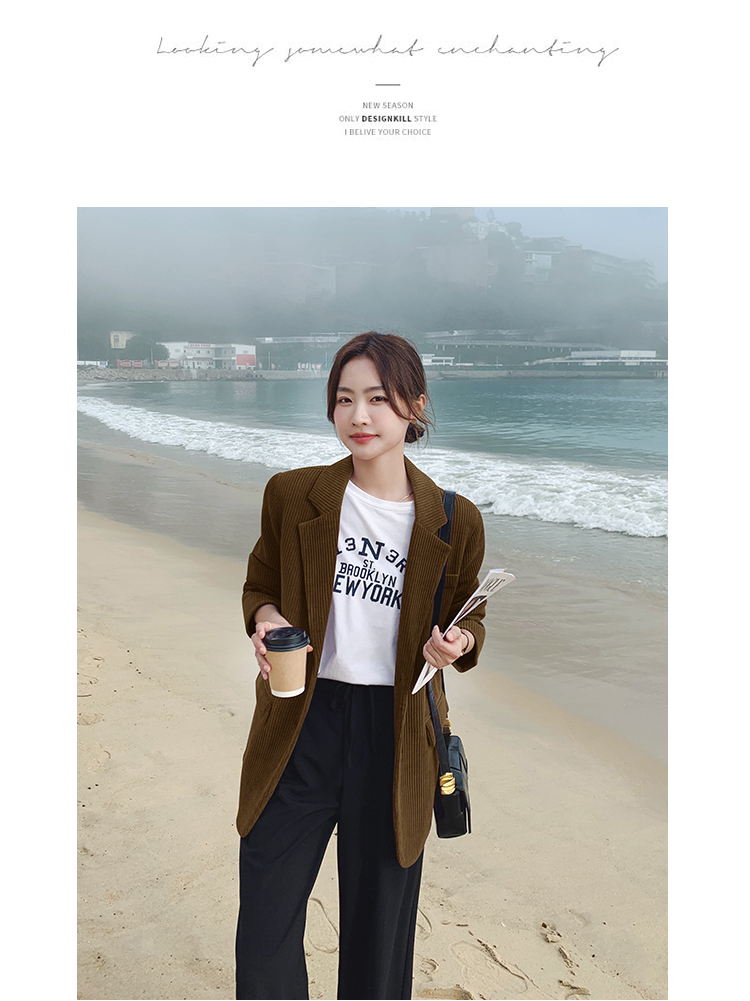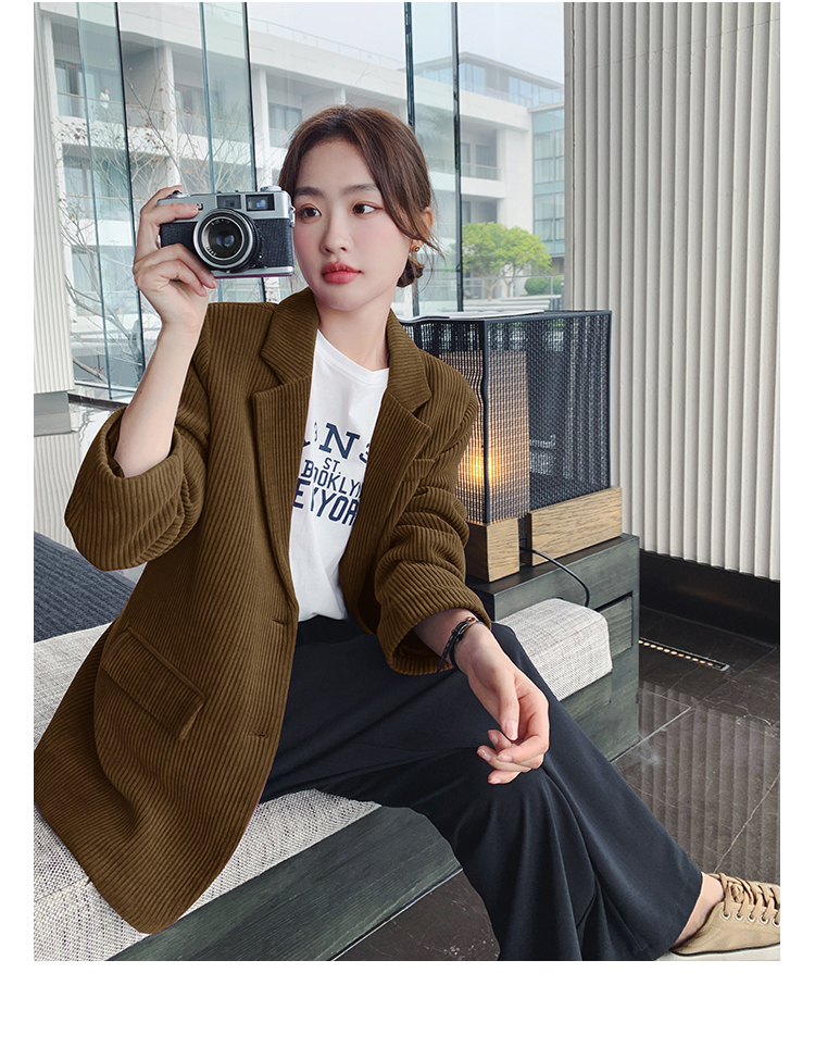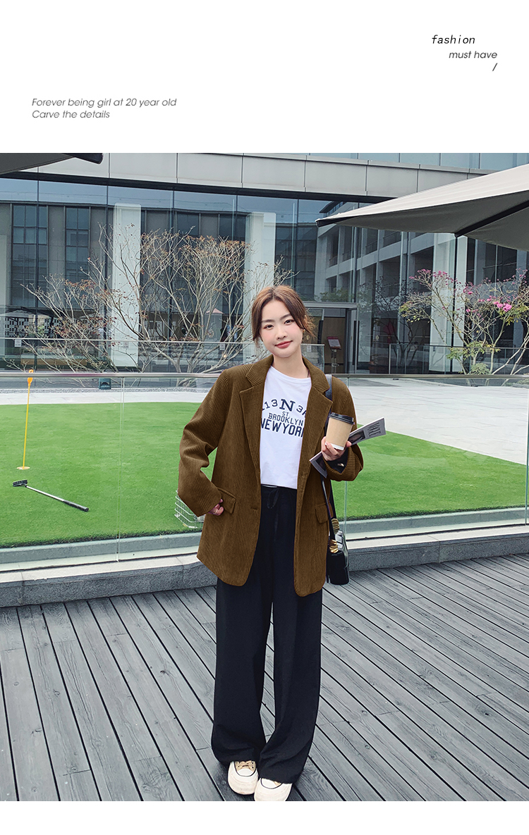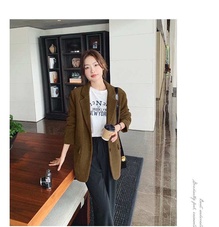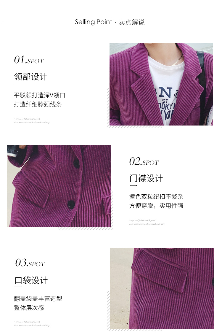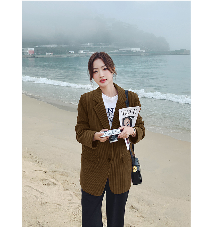 MY14691# 紫色灯芯绒西装外套新款秋冬小个子复古宽松休闲咖色小西服女裝貨源服裝批發