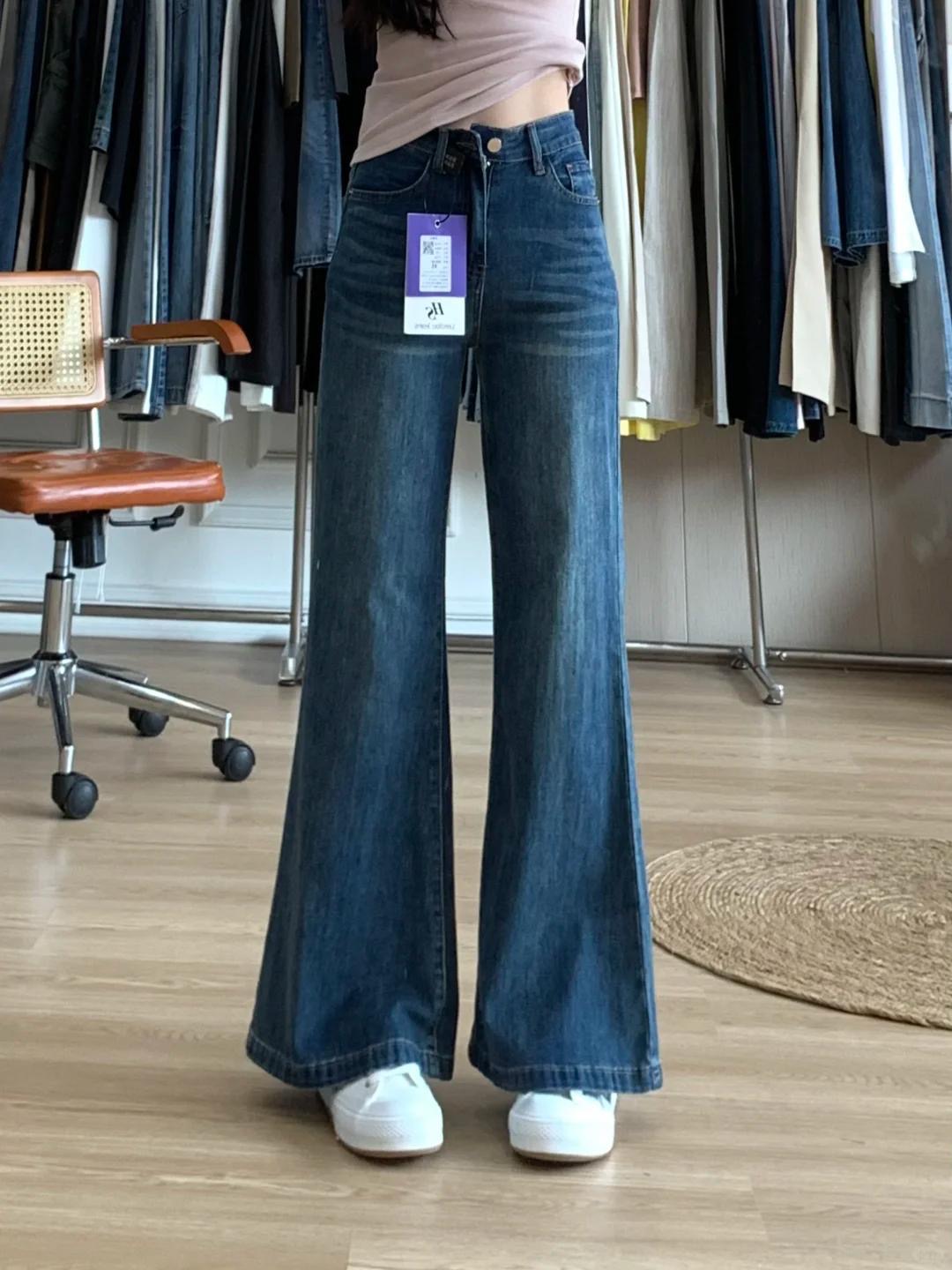 MY14697# 小个子复古微喇牛仔裤女夏季高腰宽松显瘦不贴腿拖地喇叭裤女裝貨源服裝批發