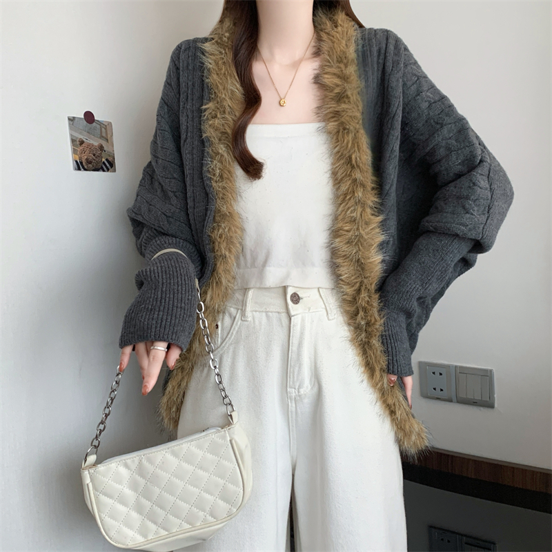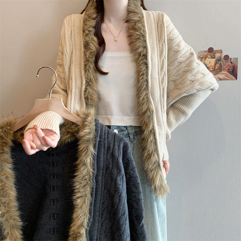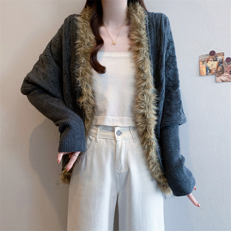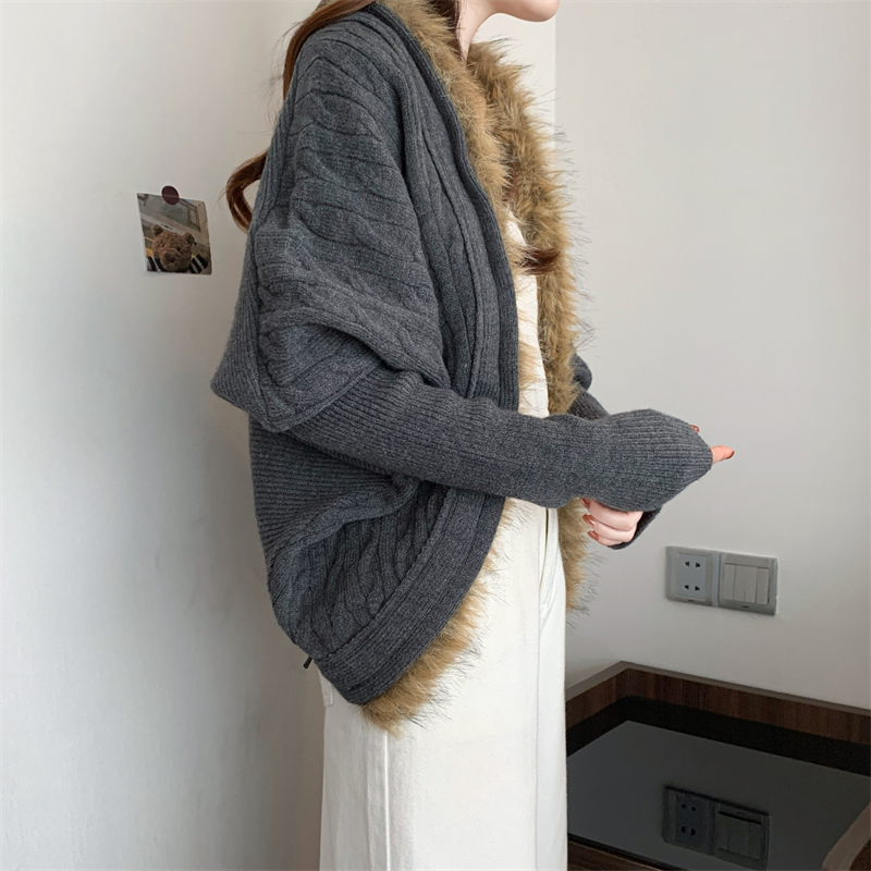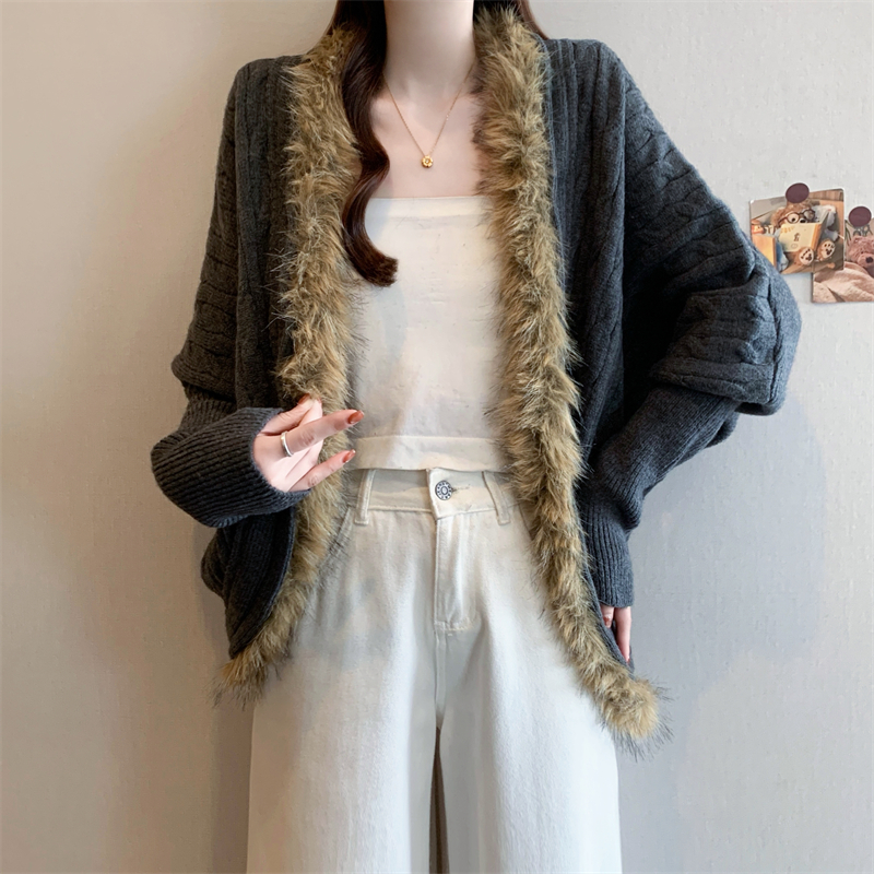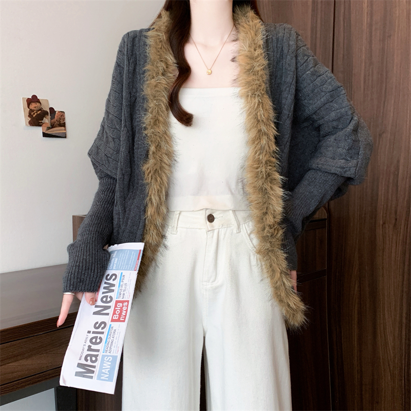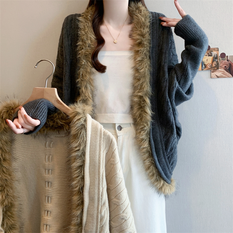 MY14700# 新款胖妹妹显瘦外披开衫毛衣针织衫毛领长袖女装上衣女裝貨源服裝批發