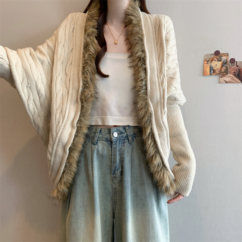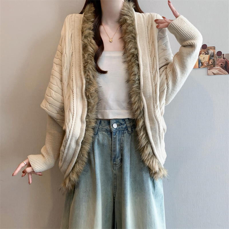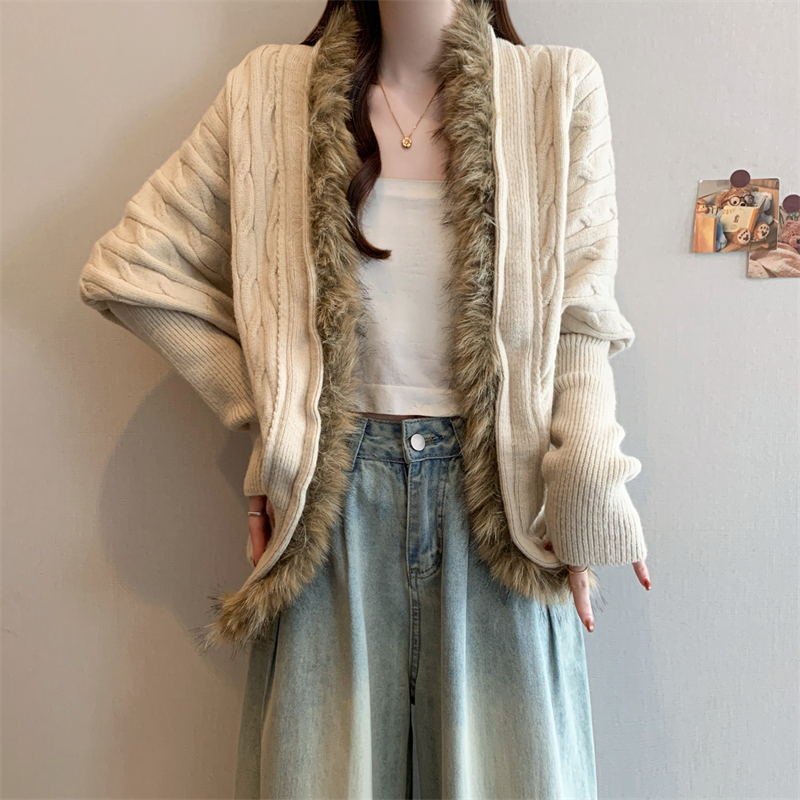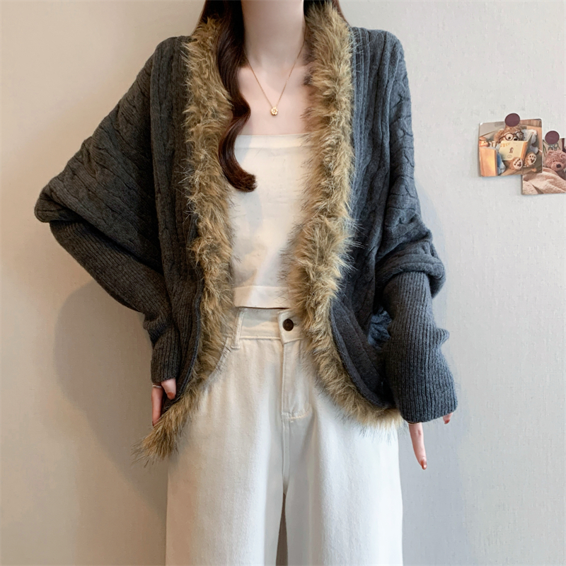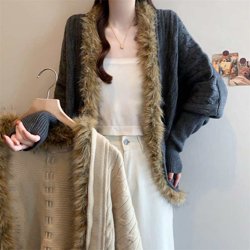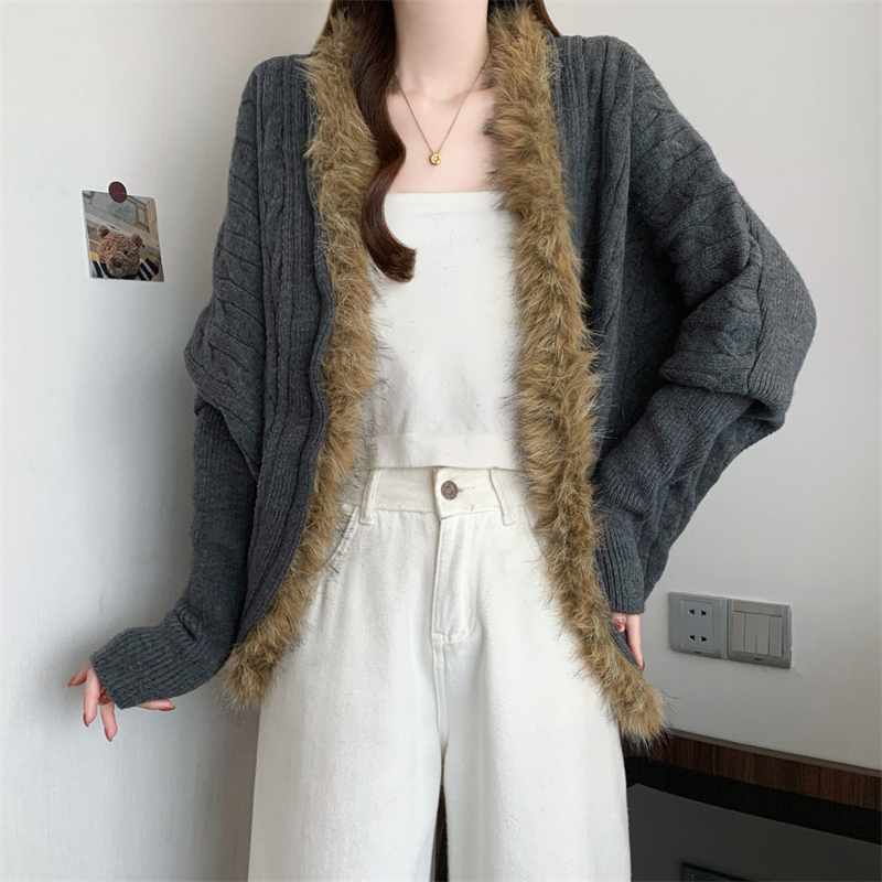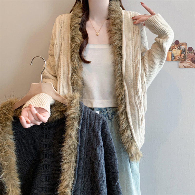 MY14700# 新款胖妹妹显瘦外披开衫毛衣针织衫毛领长袖女装上衣女裝貨源服裝批發