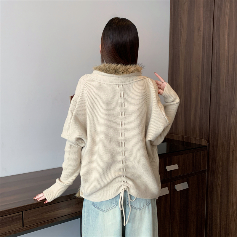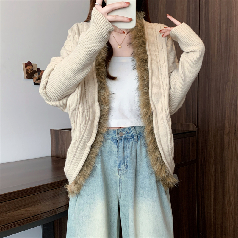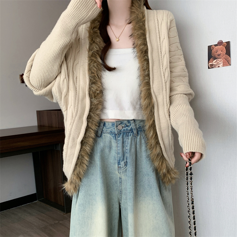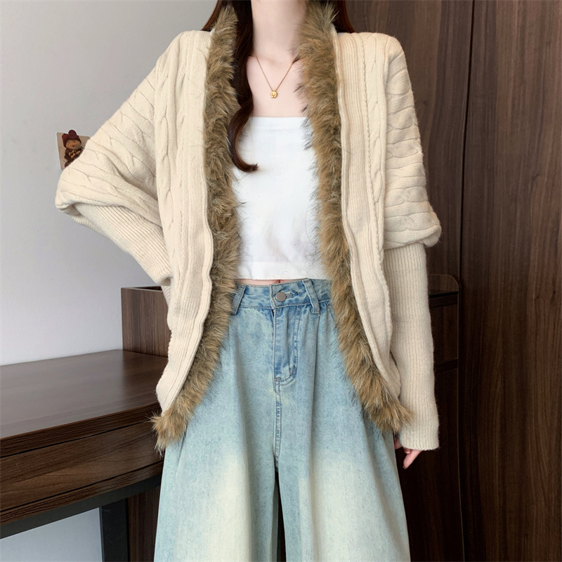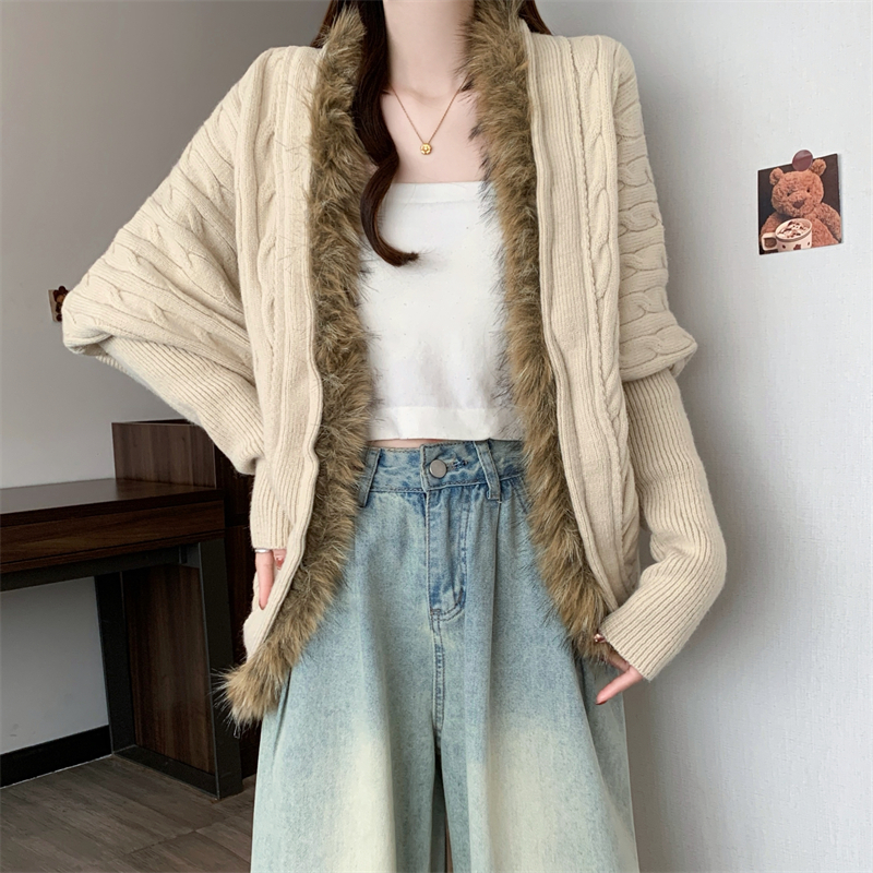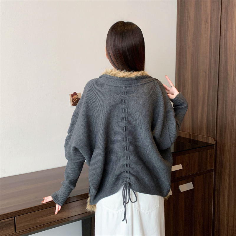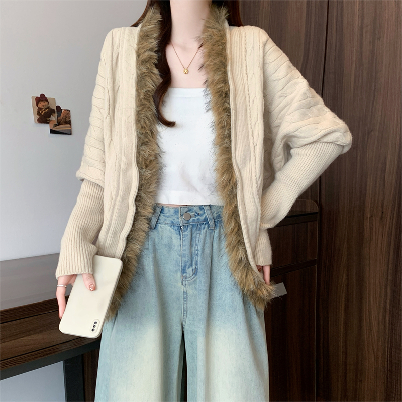 MY14700# 新款胖妹妹显瘦外披开衫毛衣针织衫毛领长袖女装上衣女裝貨源服裝批發