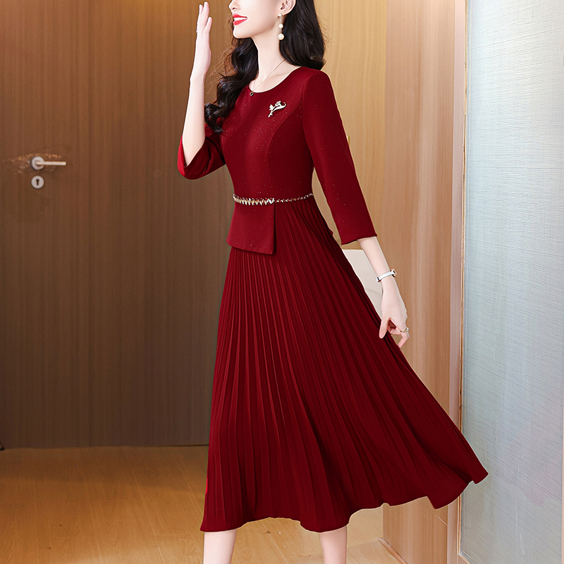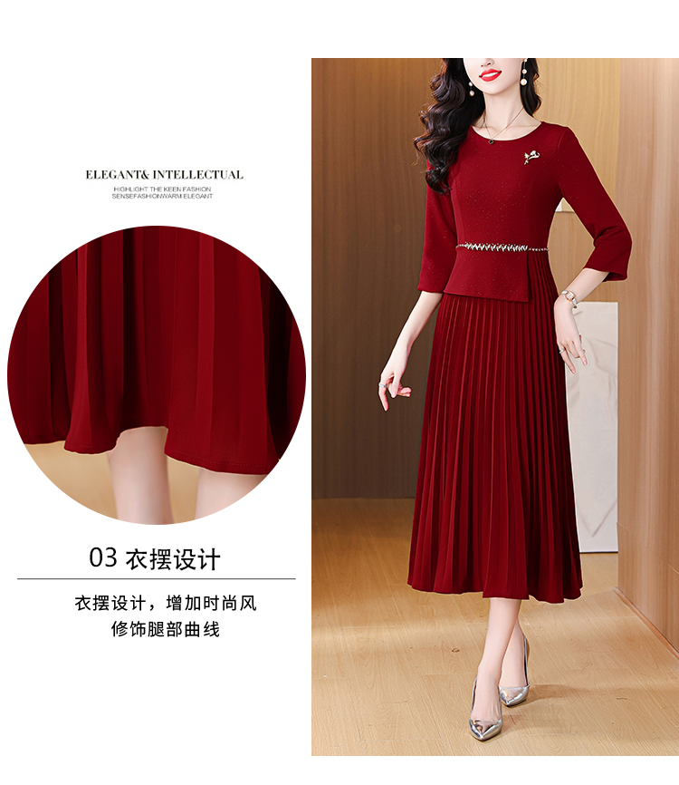 MY14704# 妈妈婚宴礼服年轻高贵参加婚礼连衣裙喜婆婆喜服结婚长袖大气女裝貨源服裝批發
