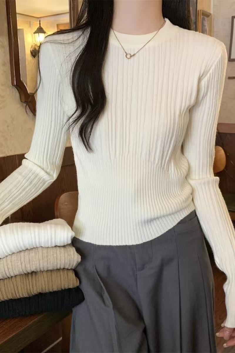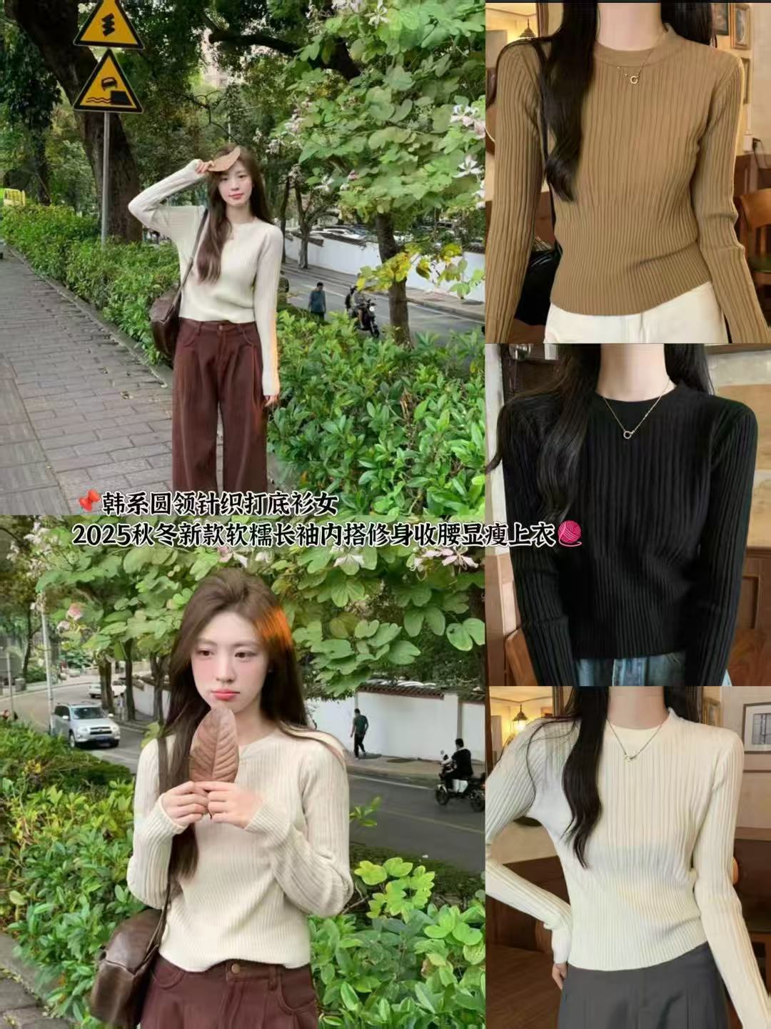 MY14718# 圆领打底衫女新款高级感毛衣内搭长袖针织衫上衣女裝貨源服裝批發