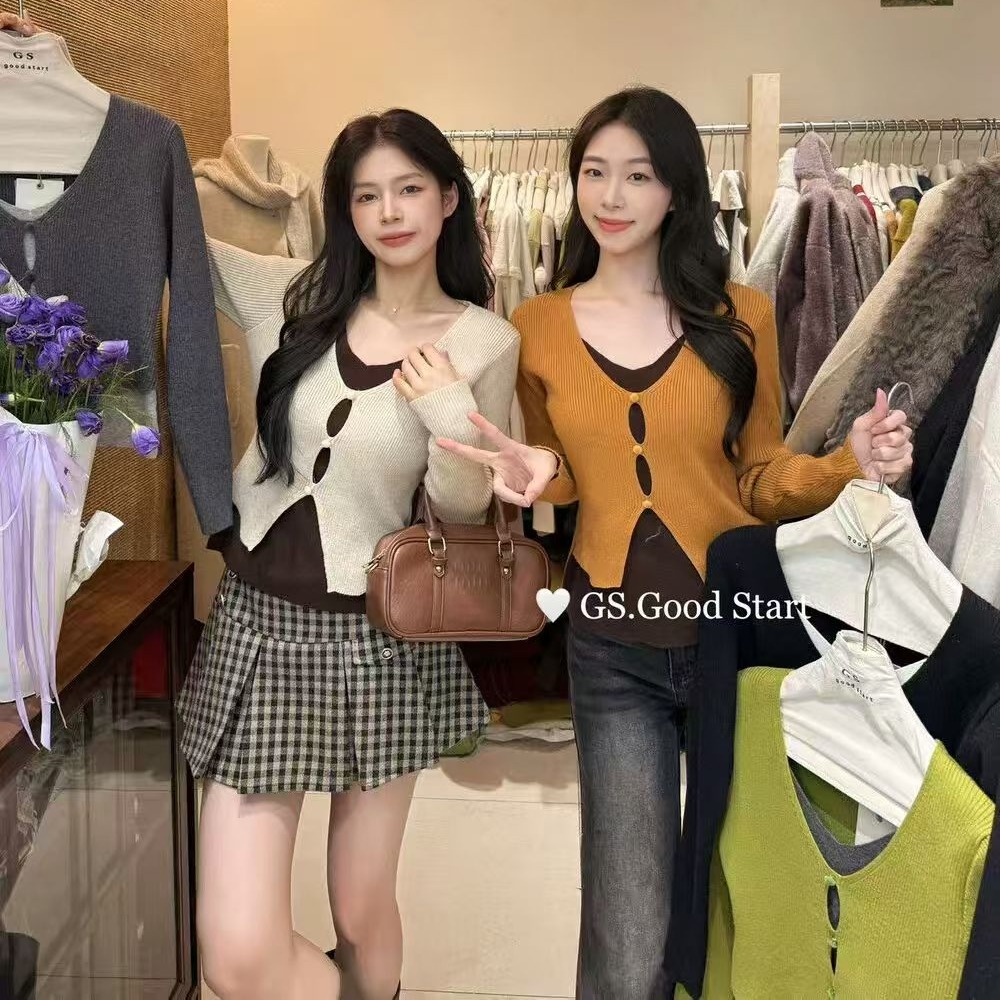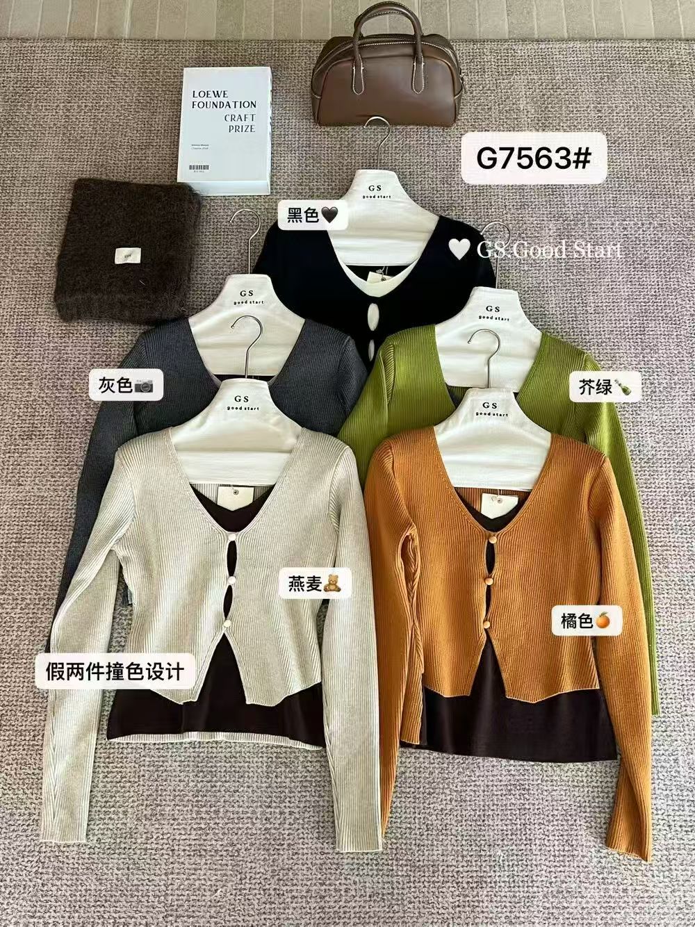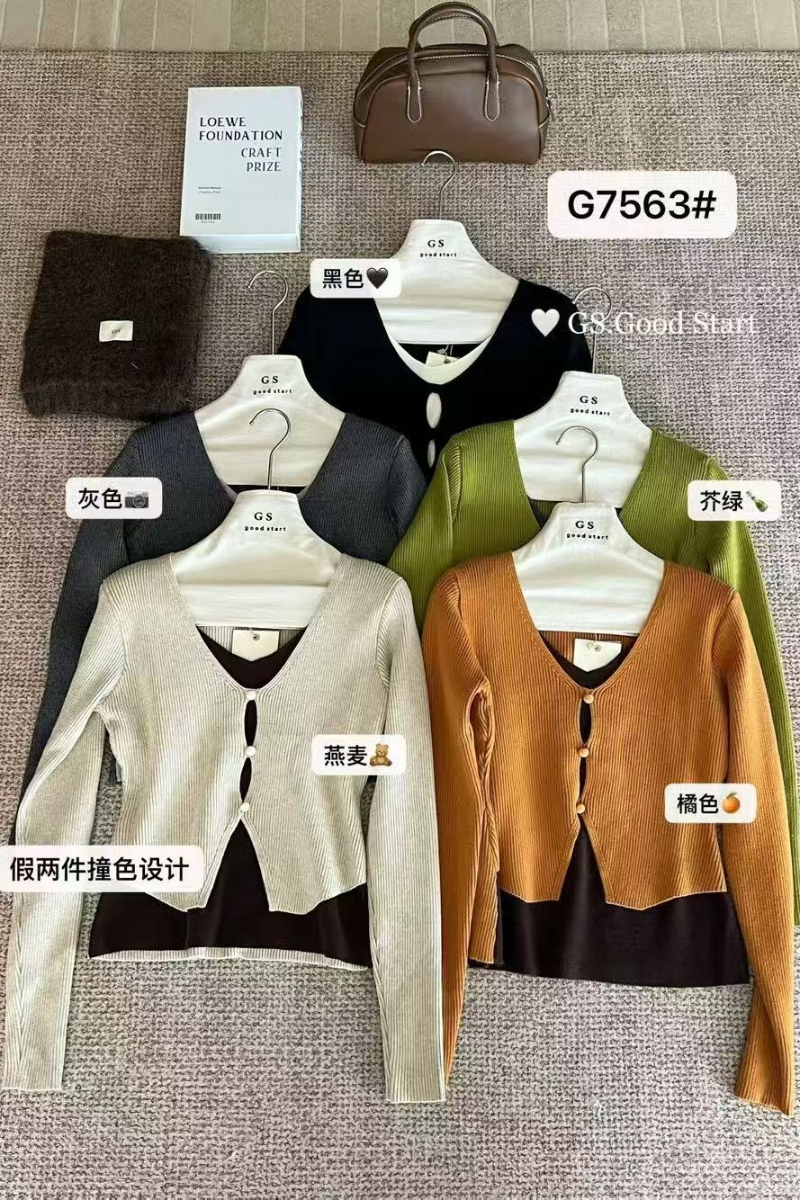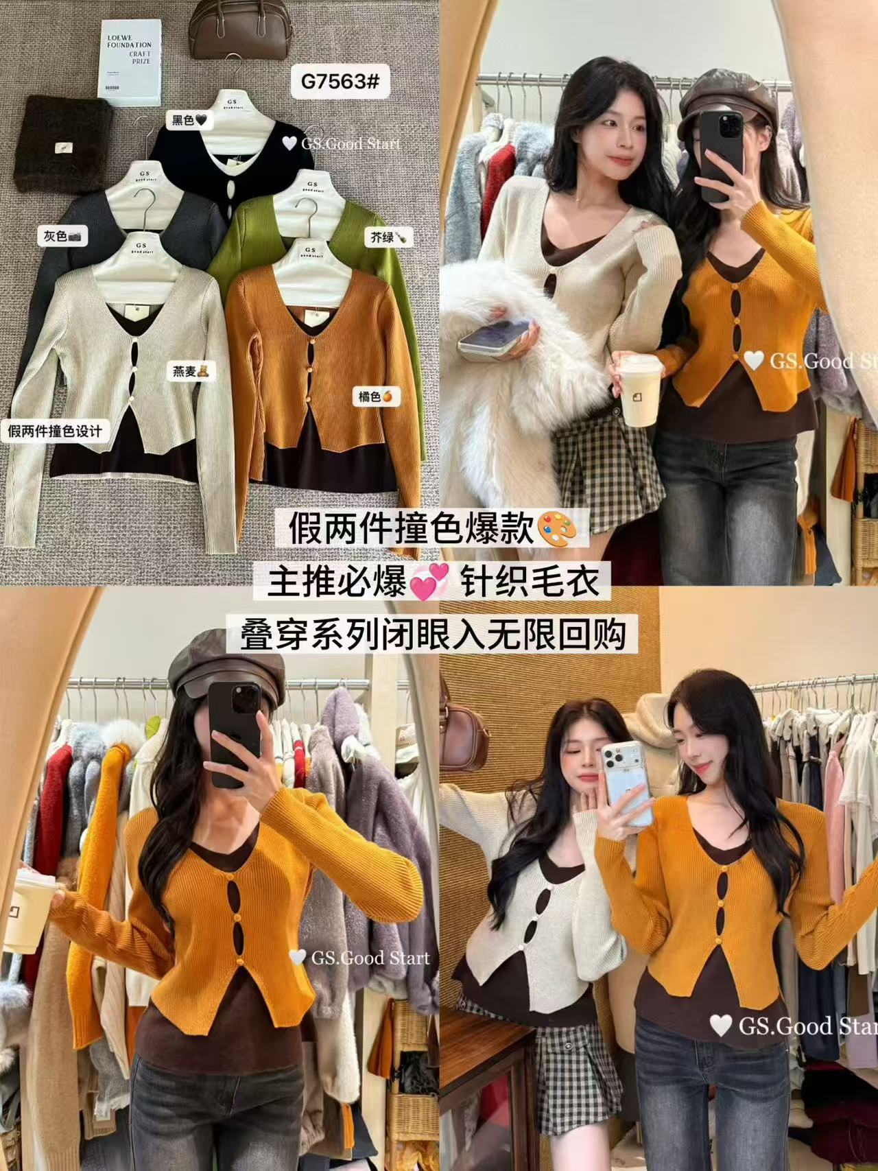 MY14719# 假两件撞色爆款主推必爆' 针织毛衣叠穿系列闭眼女裝貨源服裝批發