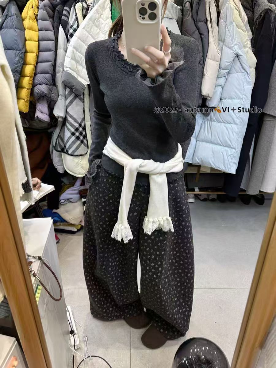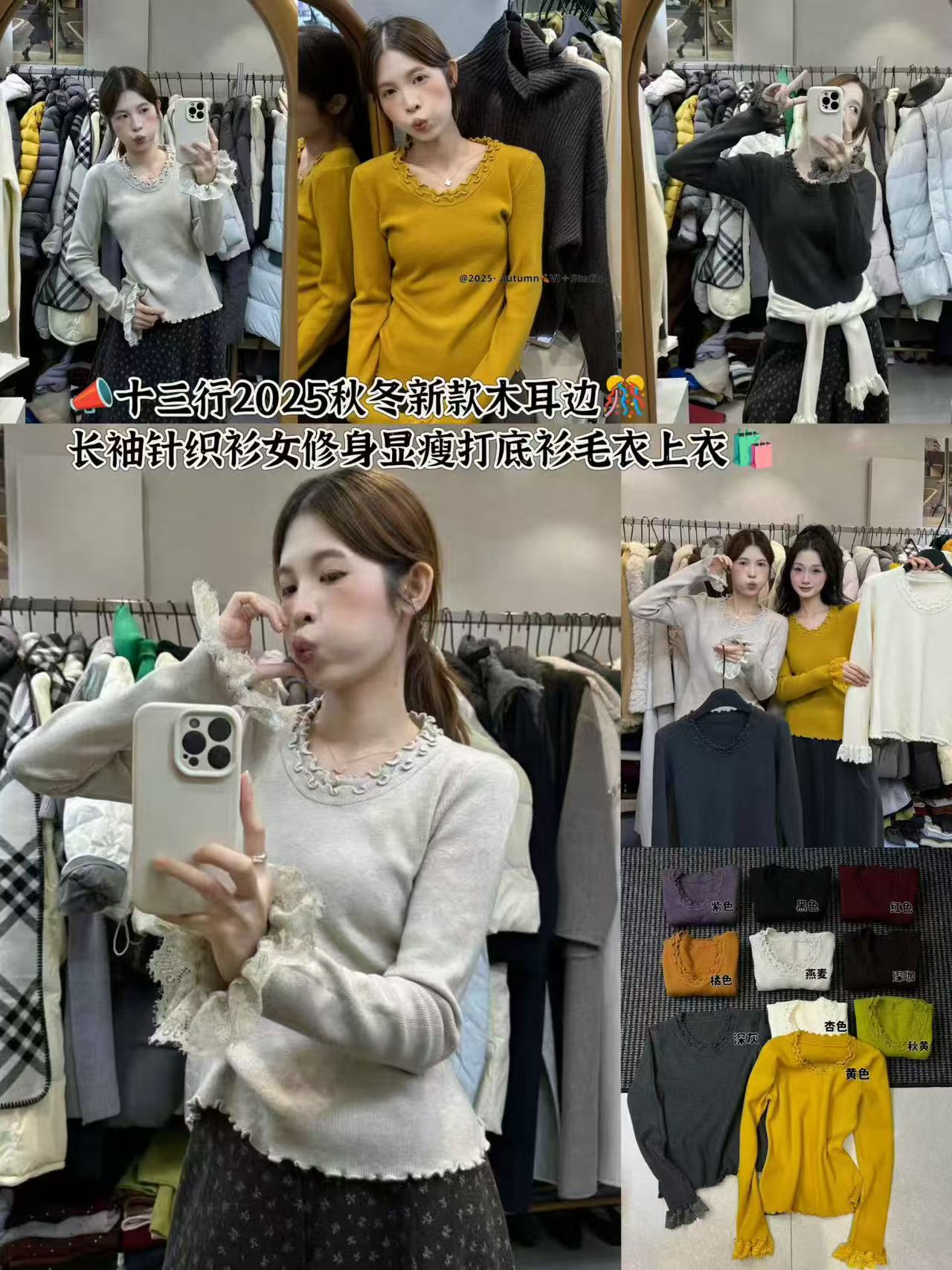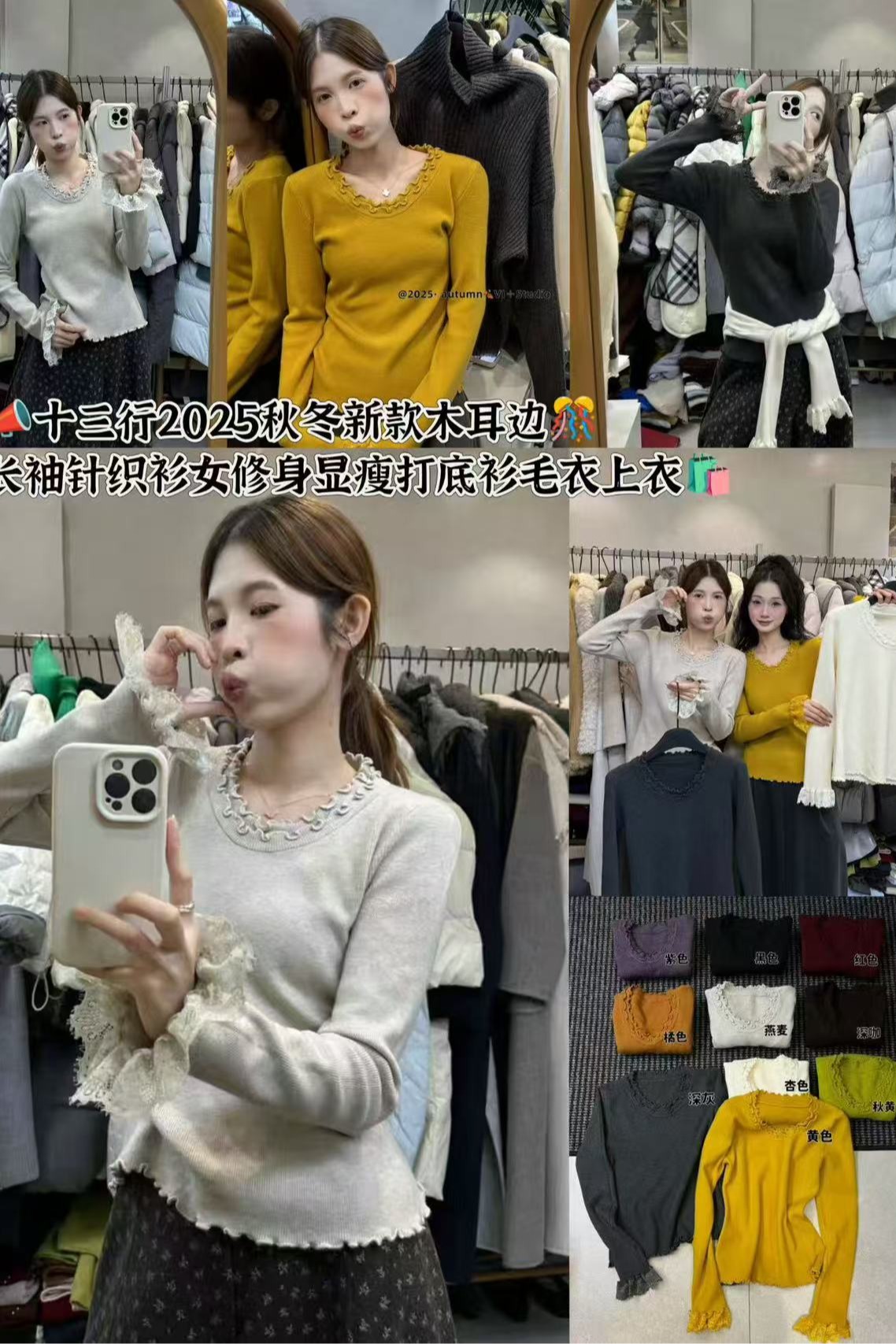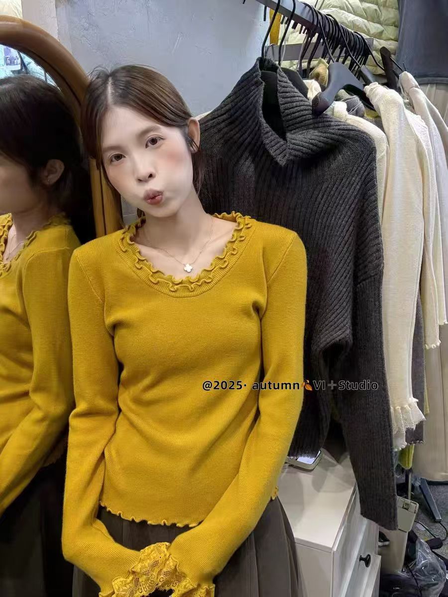 MY14720# 蕾丝新款韩版打底衫长袖减龄百搭舒适别致上衣休闲针织衫通勤女裝貨源服裝批發