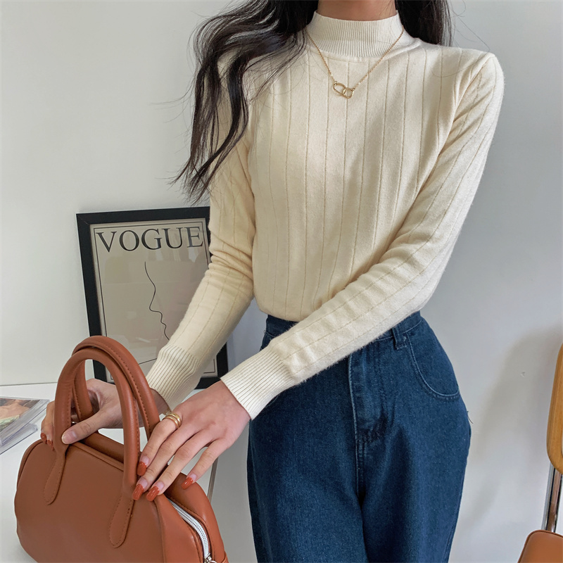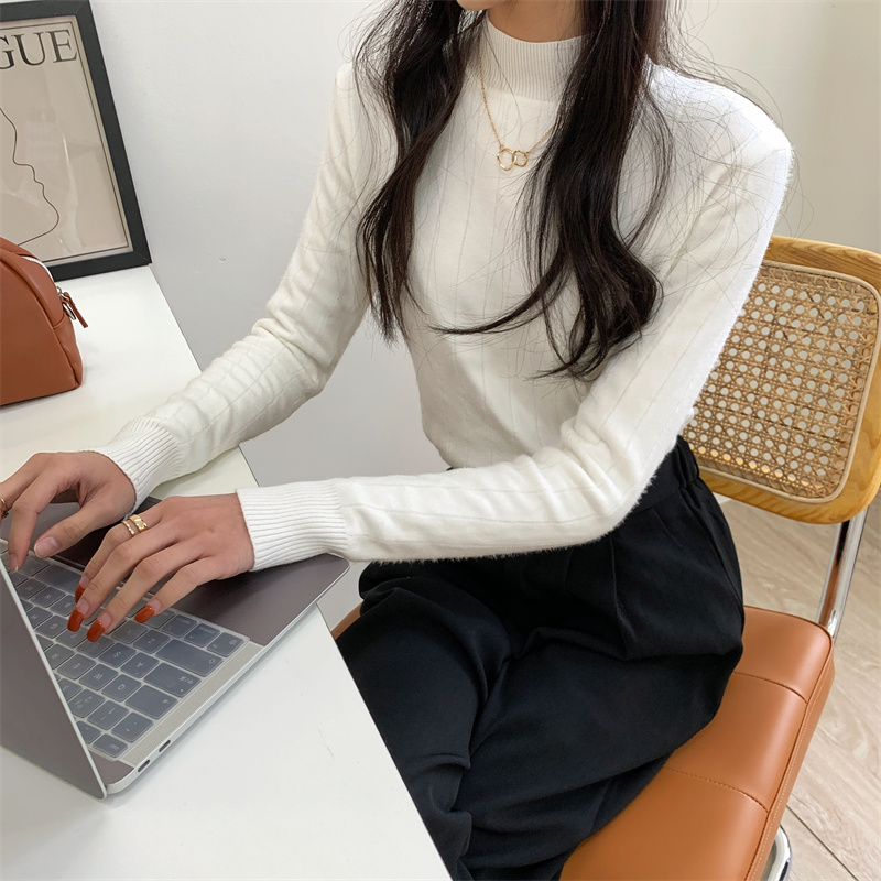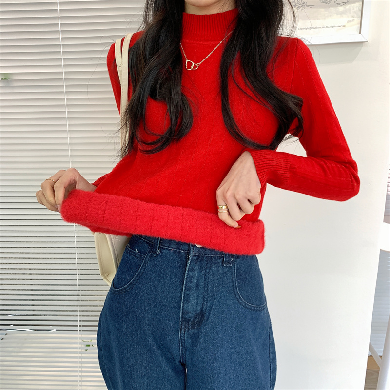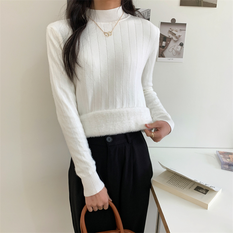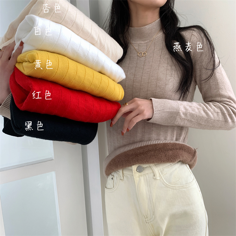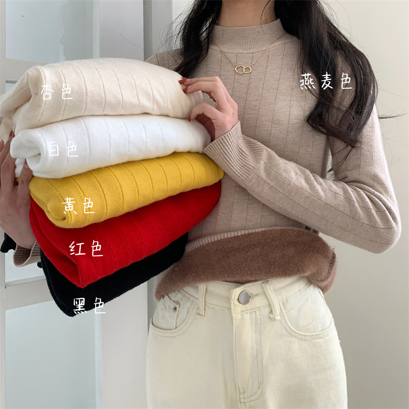 MY14729# 加绒加厚打底毛衣女一体水貂绒半高领内搭针织衫女裝貨源服裝批發