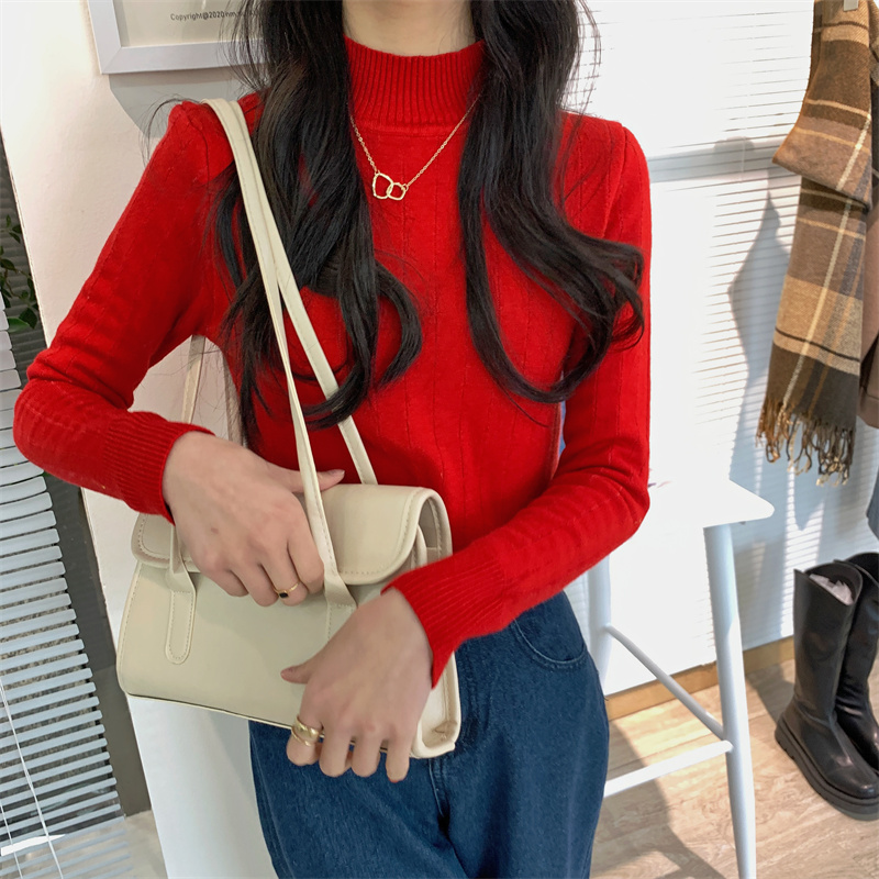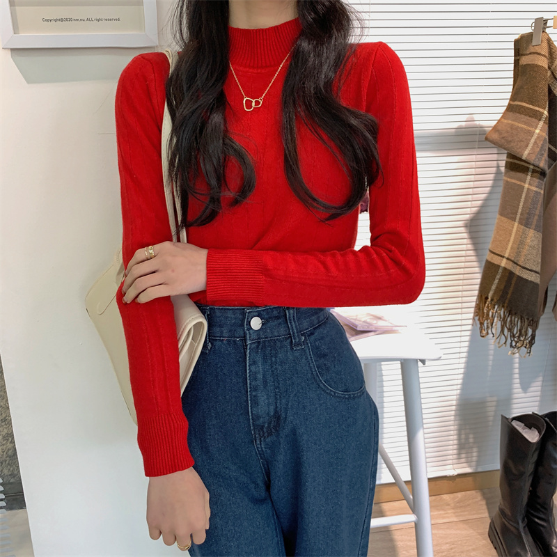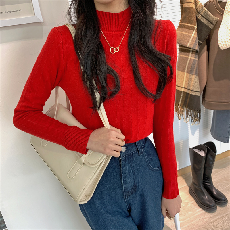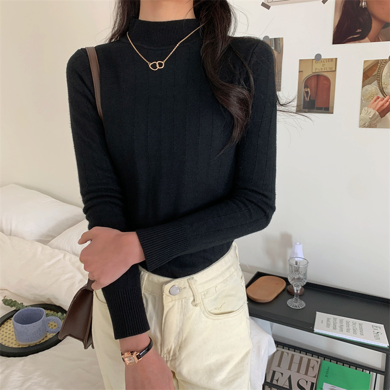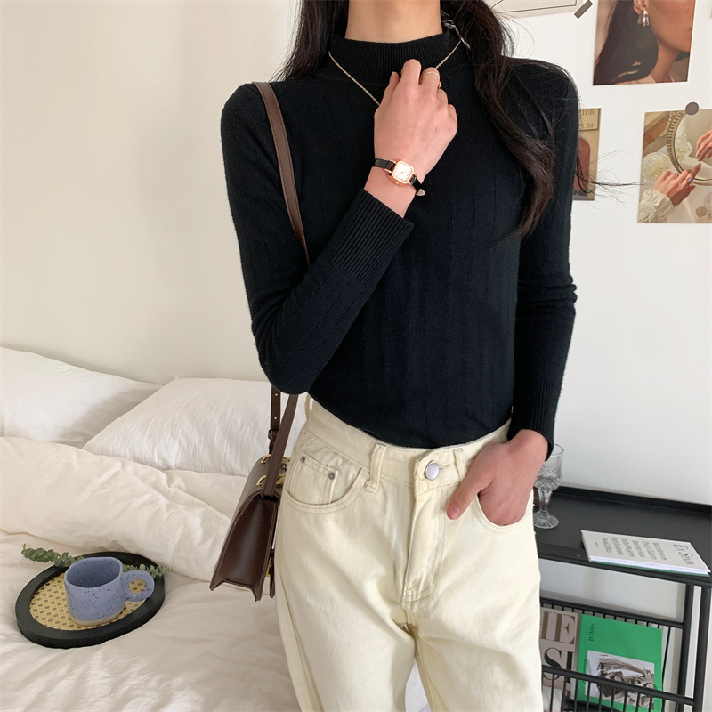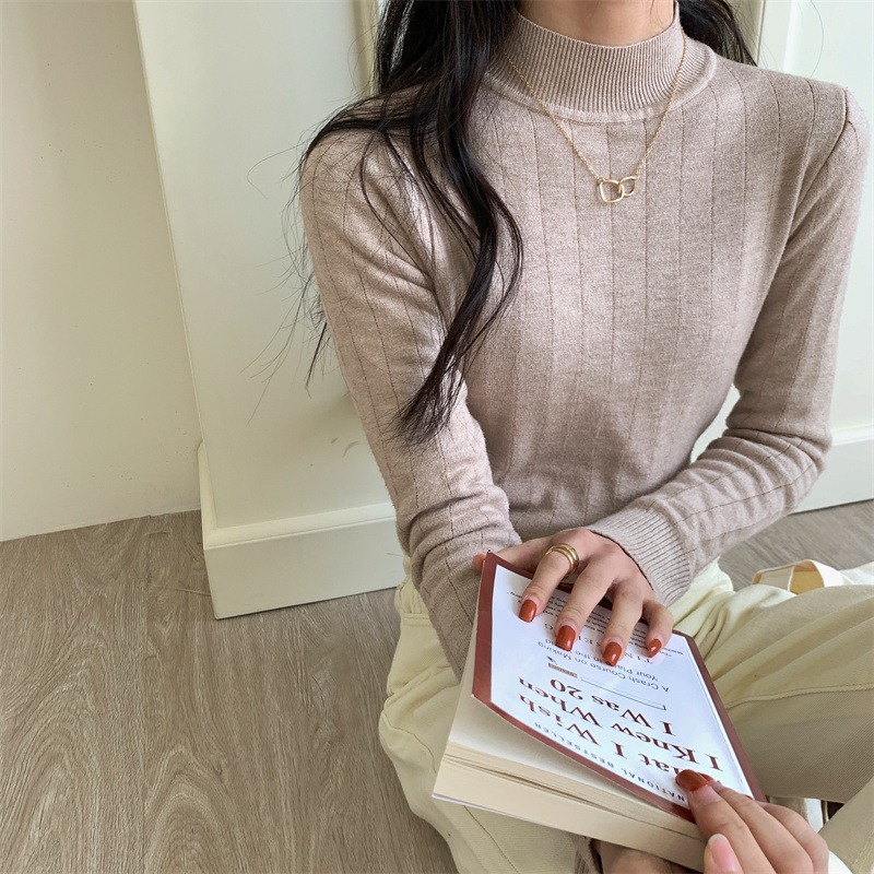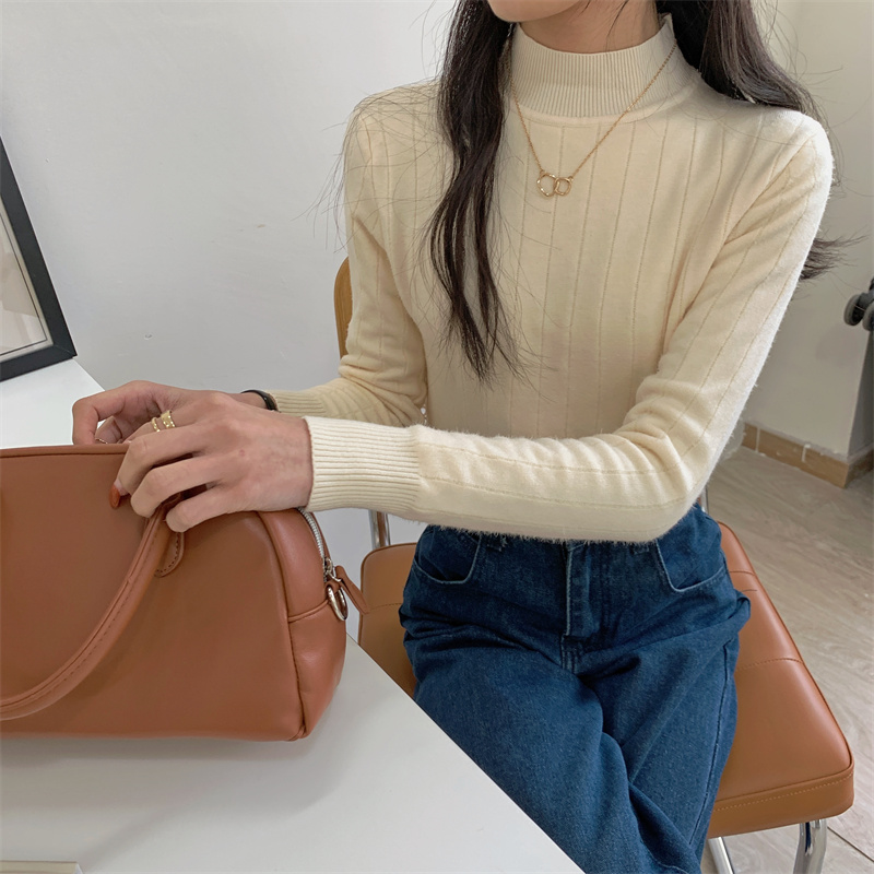 MY14729# 加绒加厚打底毛衣女一体水貂绒半高领内搭针织衫女裝貨源服裝批發