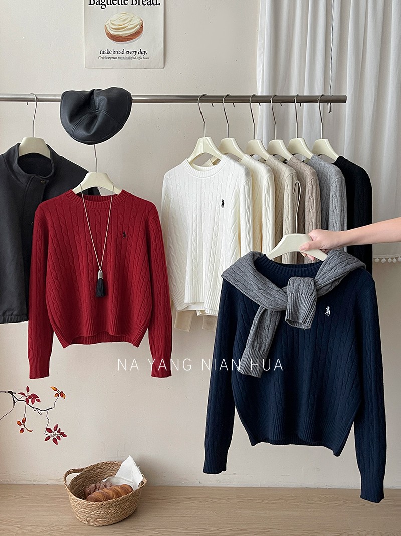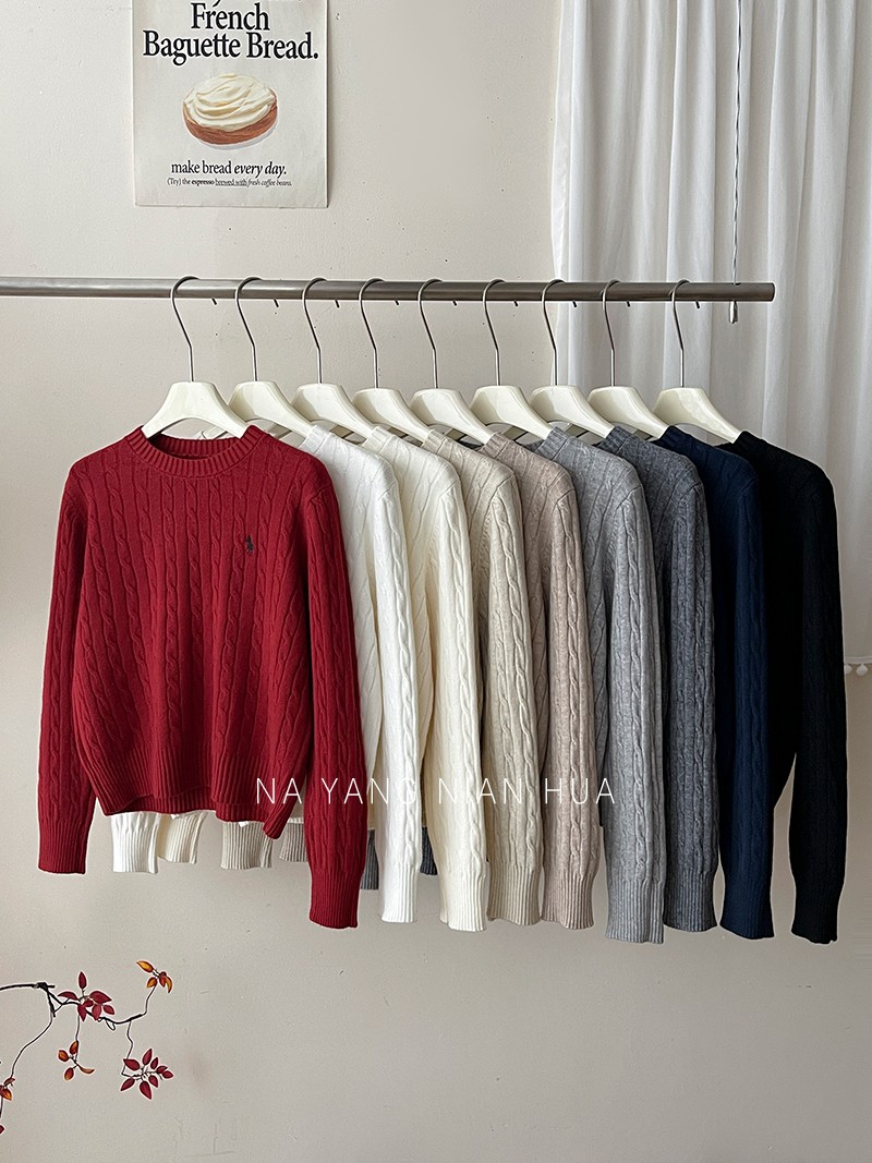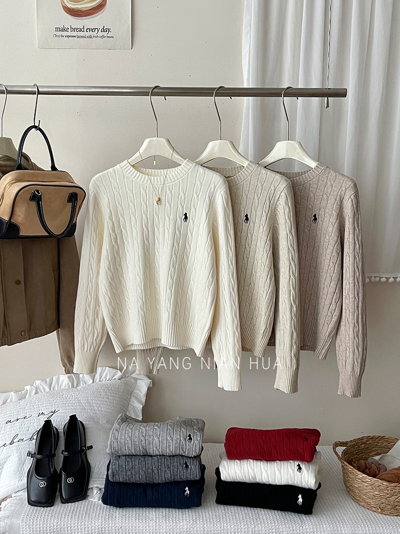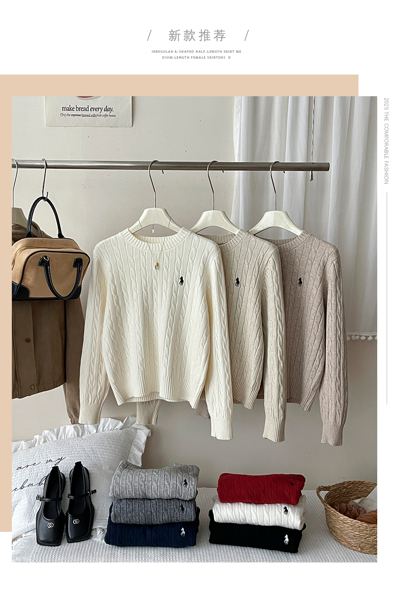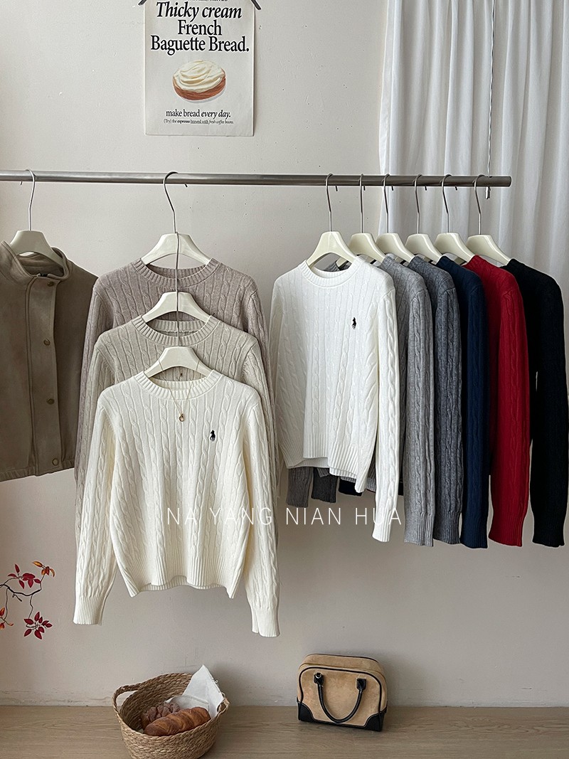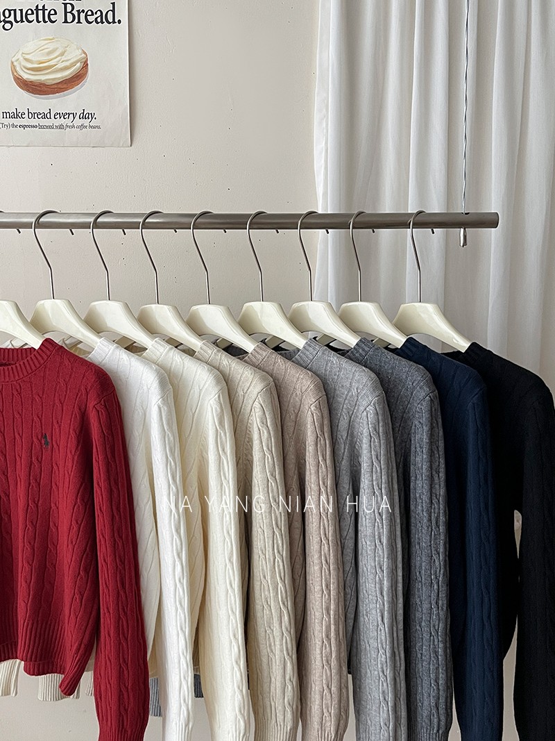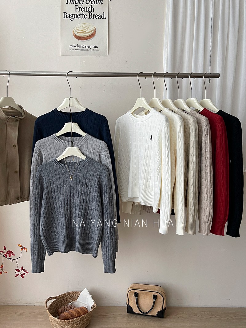 MY14731# 日韩系复古老钱风马刺绣羊绒针织衫女秋冬内外搭叠穿打底麻花毛衣女裝貨源服裝批發