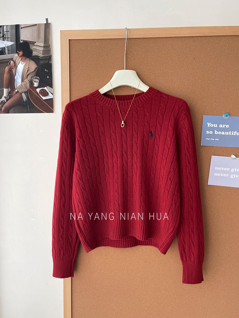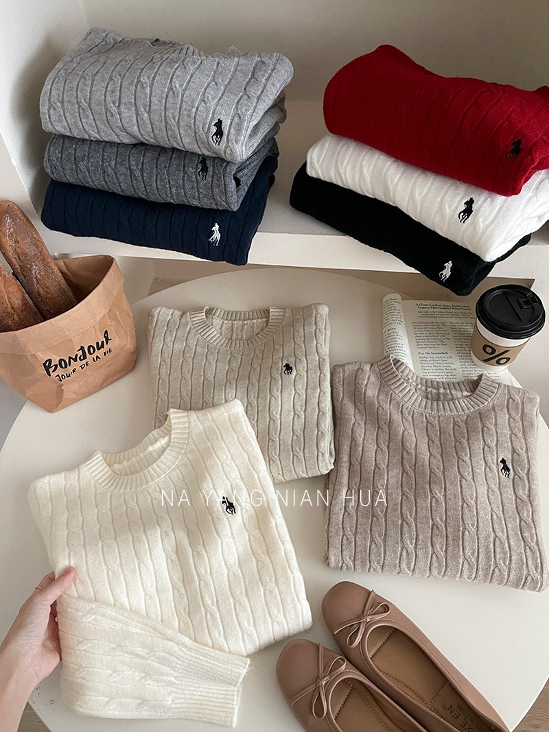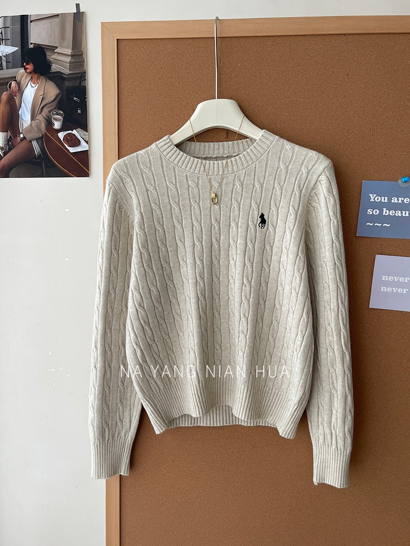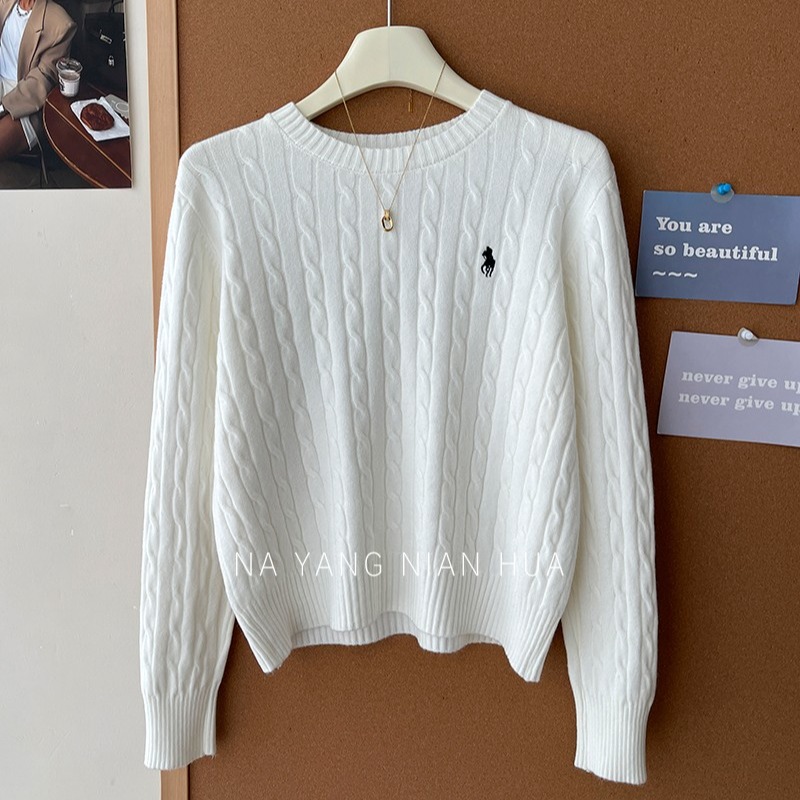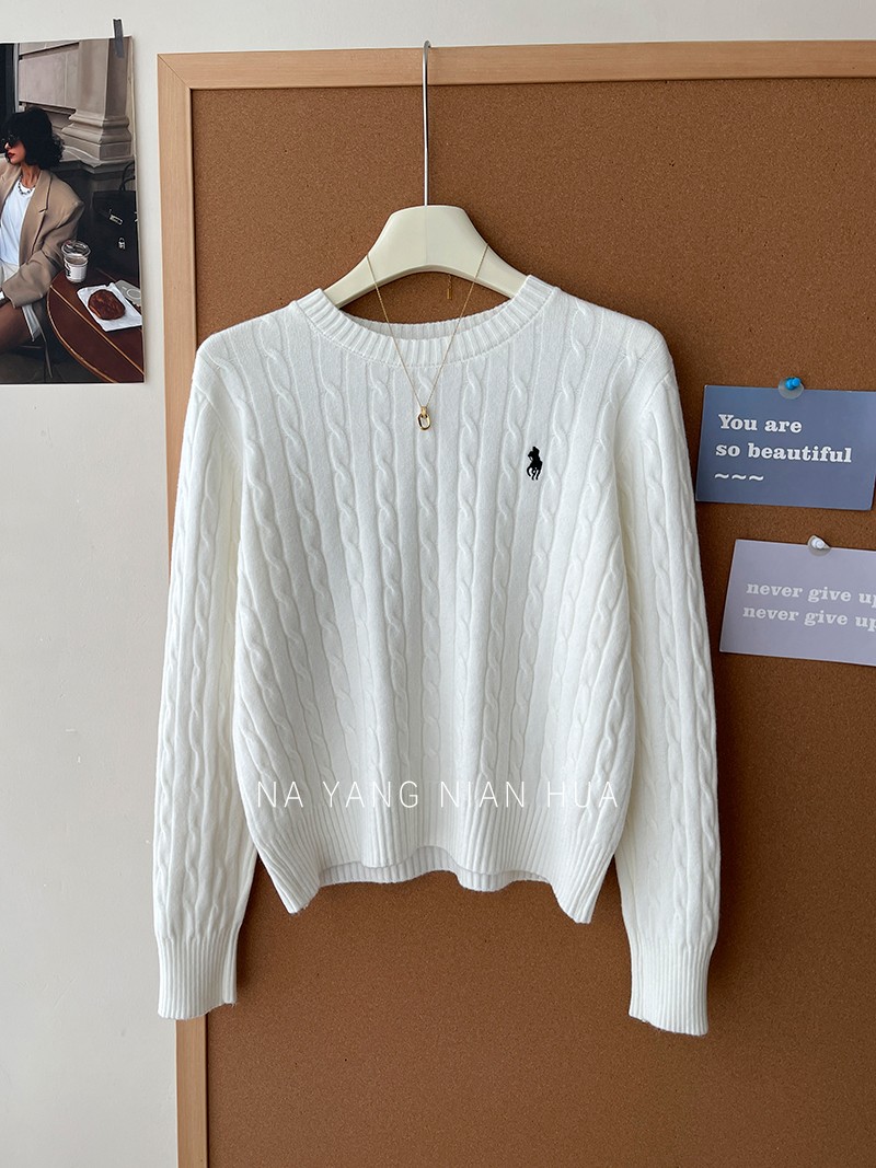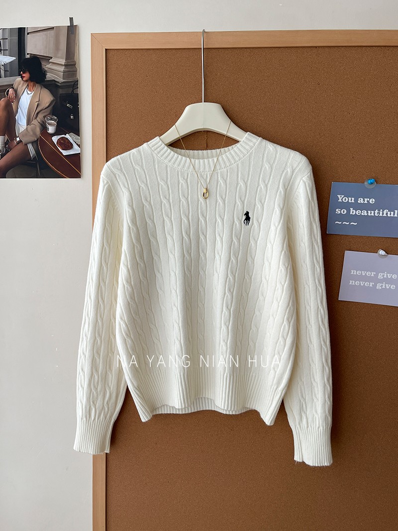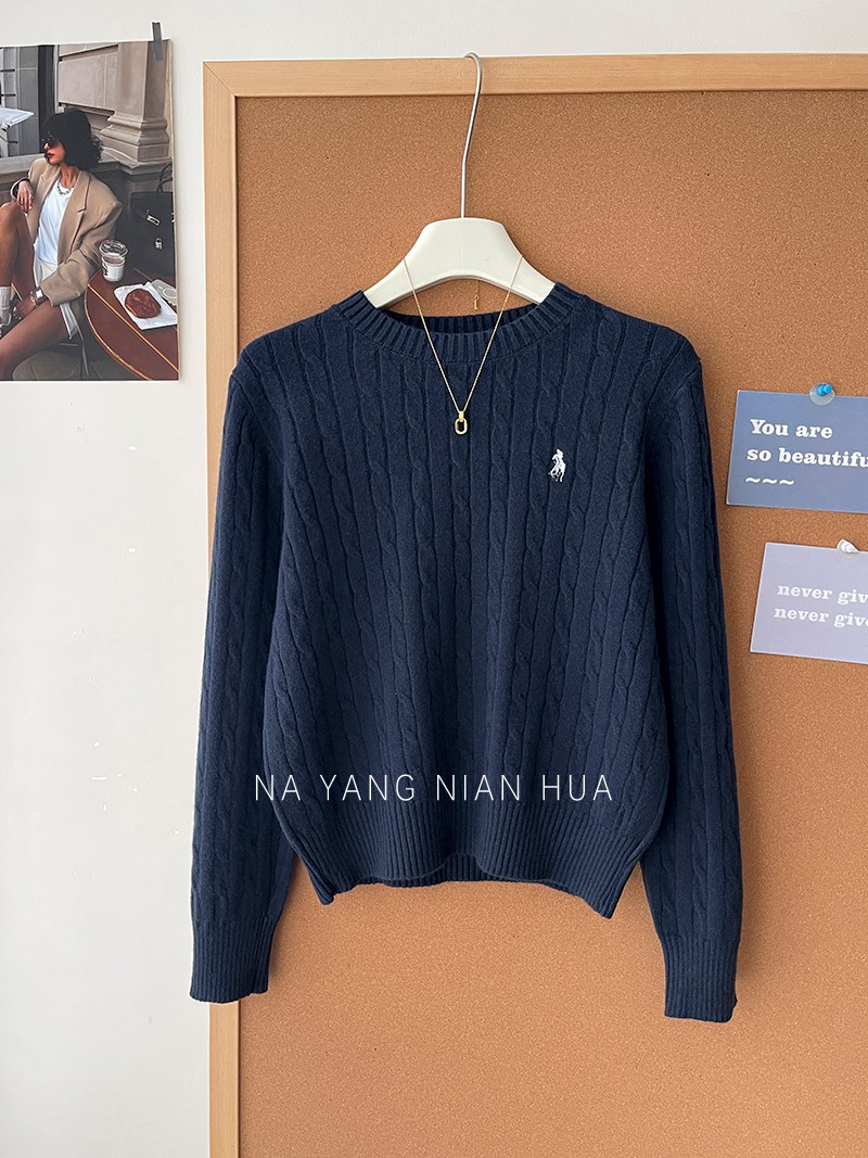 MY14731# 日韩系复古老钱风马刺绣羊绒针织衫女秋冬内外搭叠穿打底麻花毛衣女裝貨源服裝批發