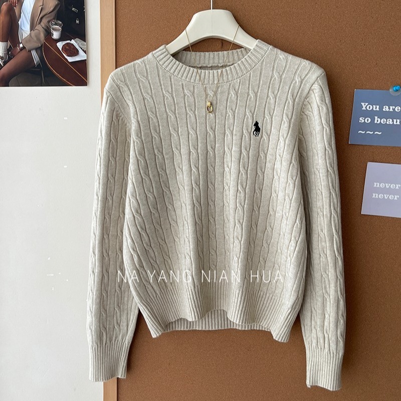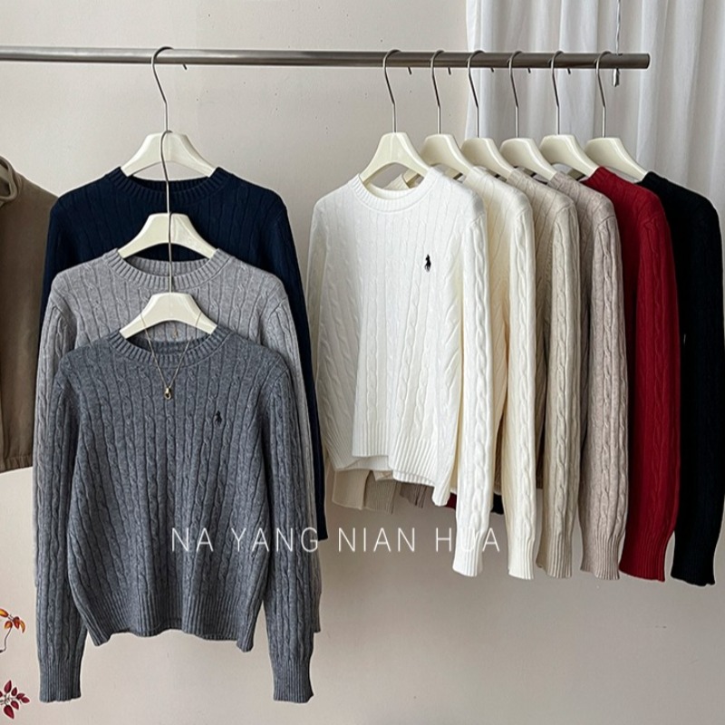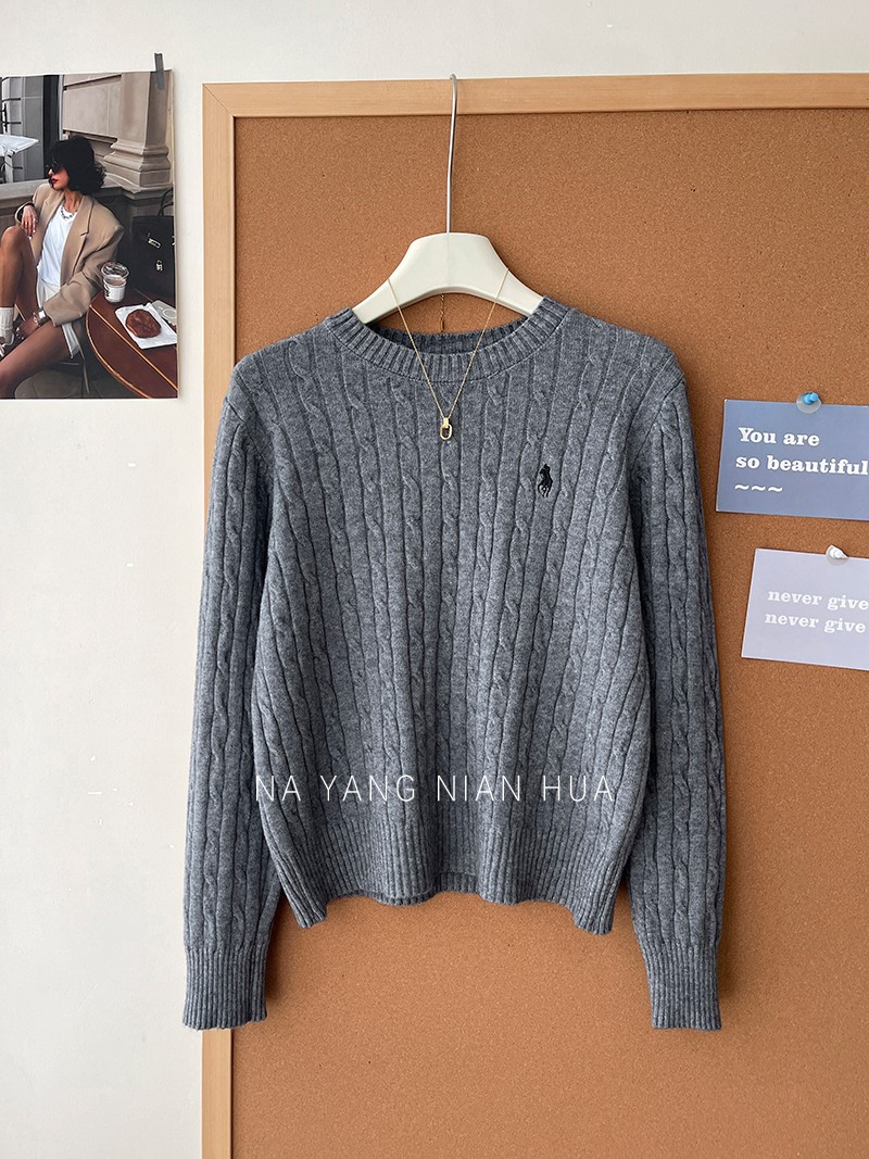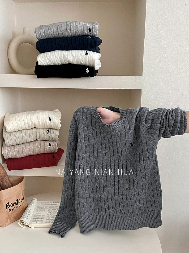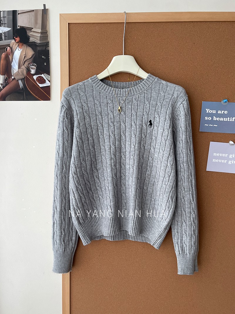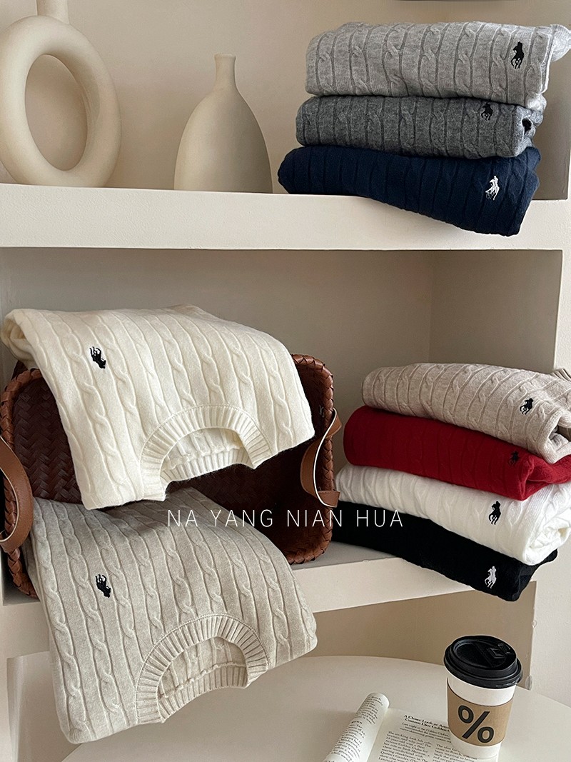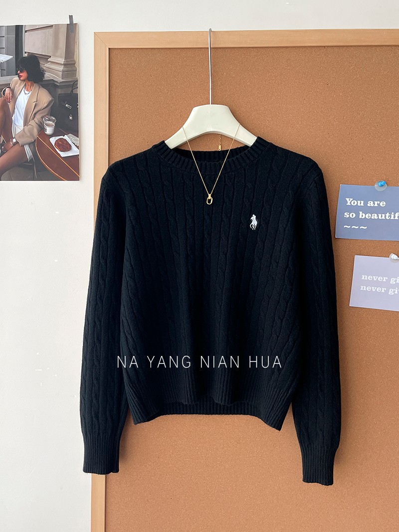 MY14731# 日韩系复古老钱风马刺绣羊绒针织衫女秋冬内外搭叠穿打底麻花毛衣女裝貨源服裝批發