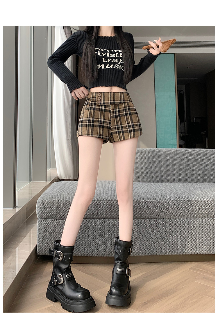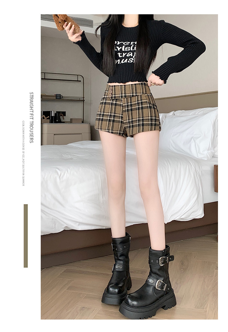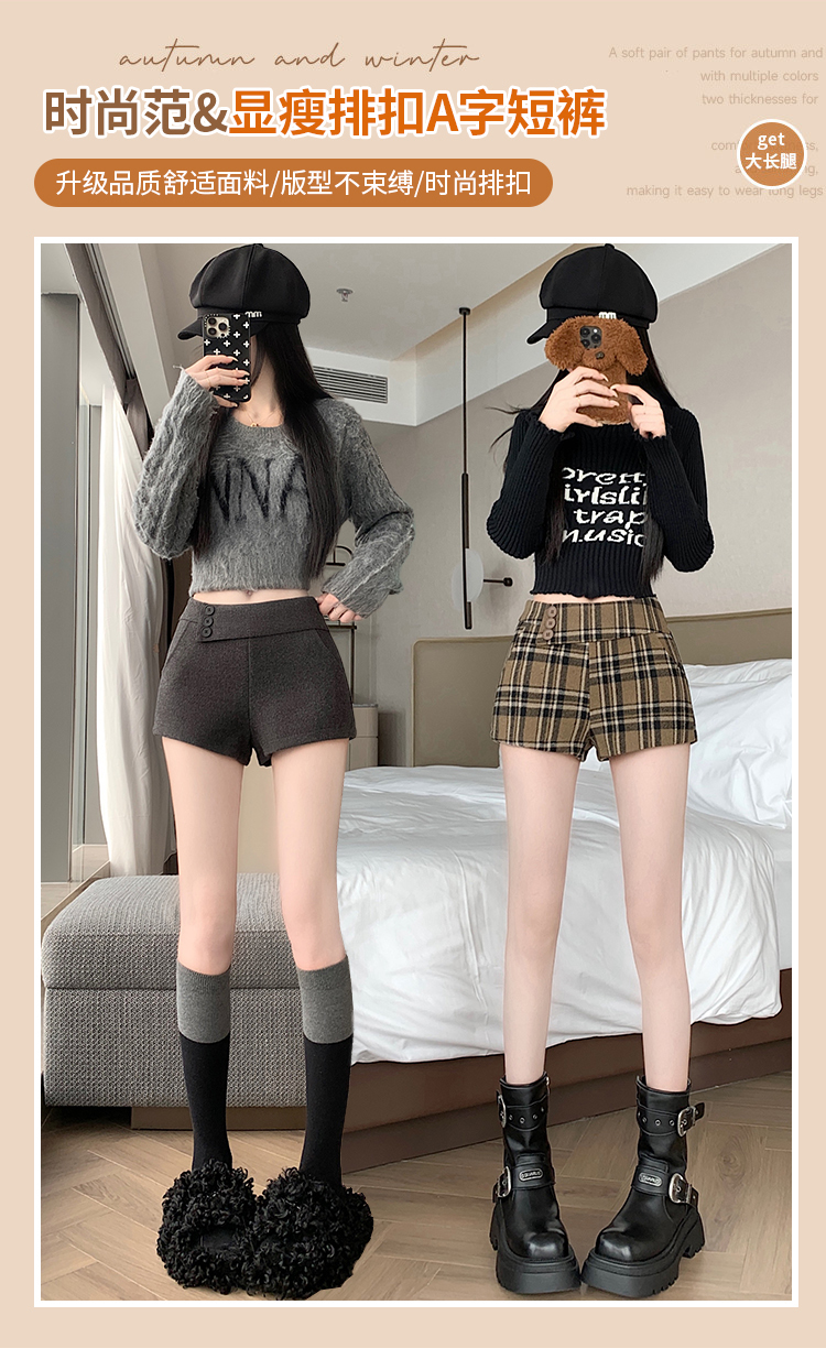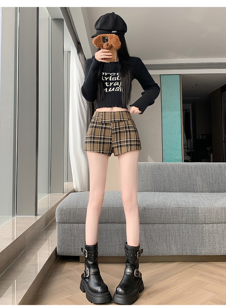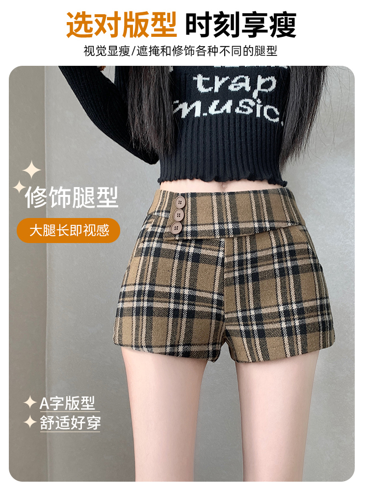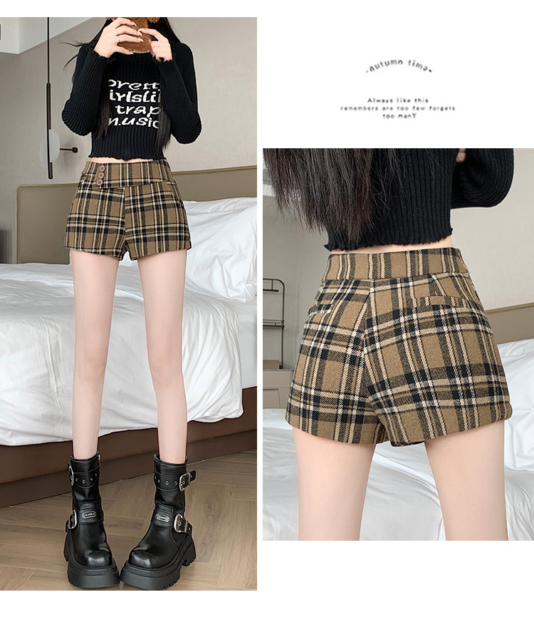 MY14750# 新款复古新款撞色格纹低腰休闲裤女秋冬别致减龄显瘦辣妹短裤女裝貨源服裝批發