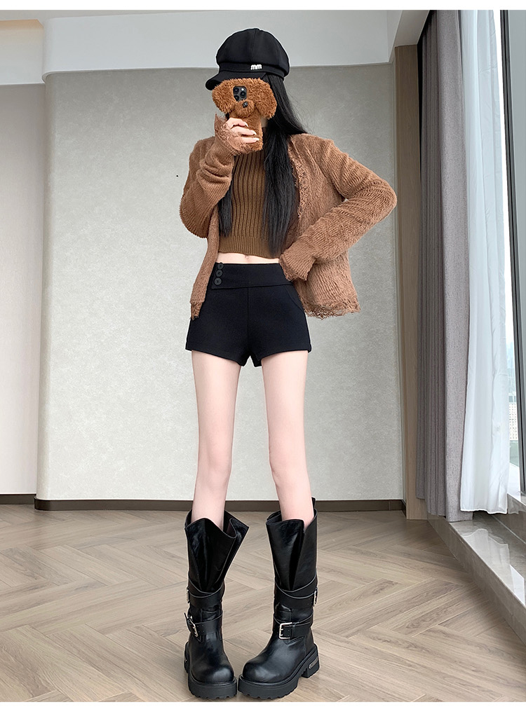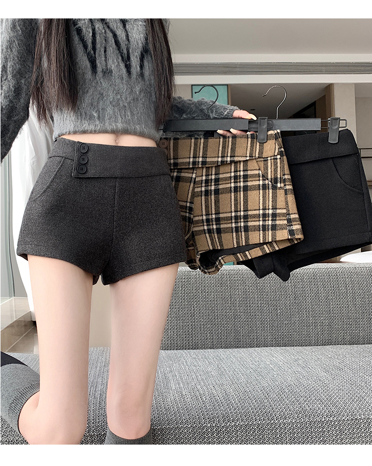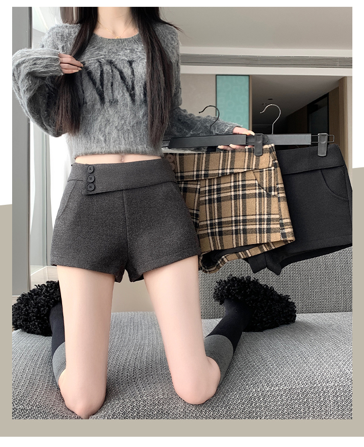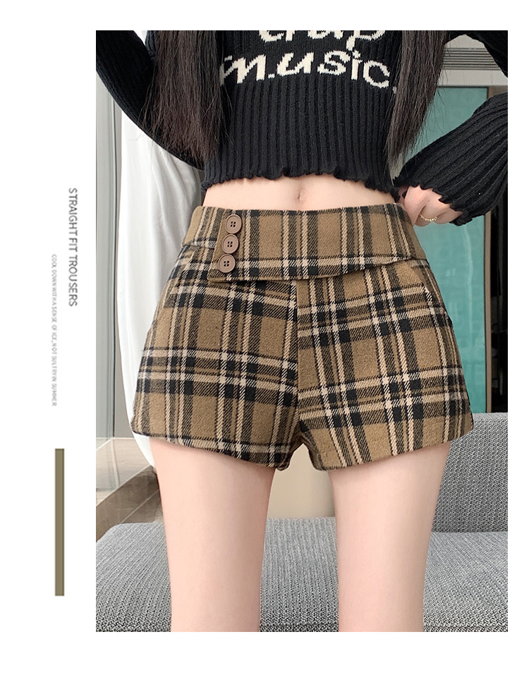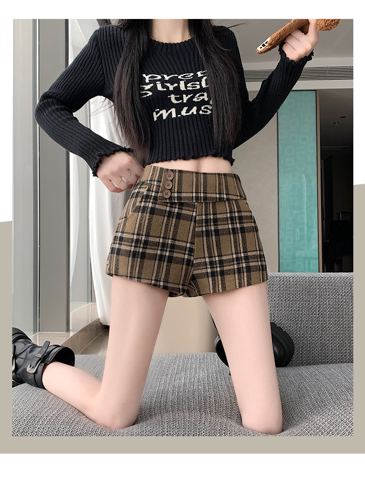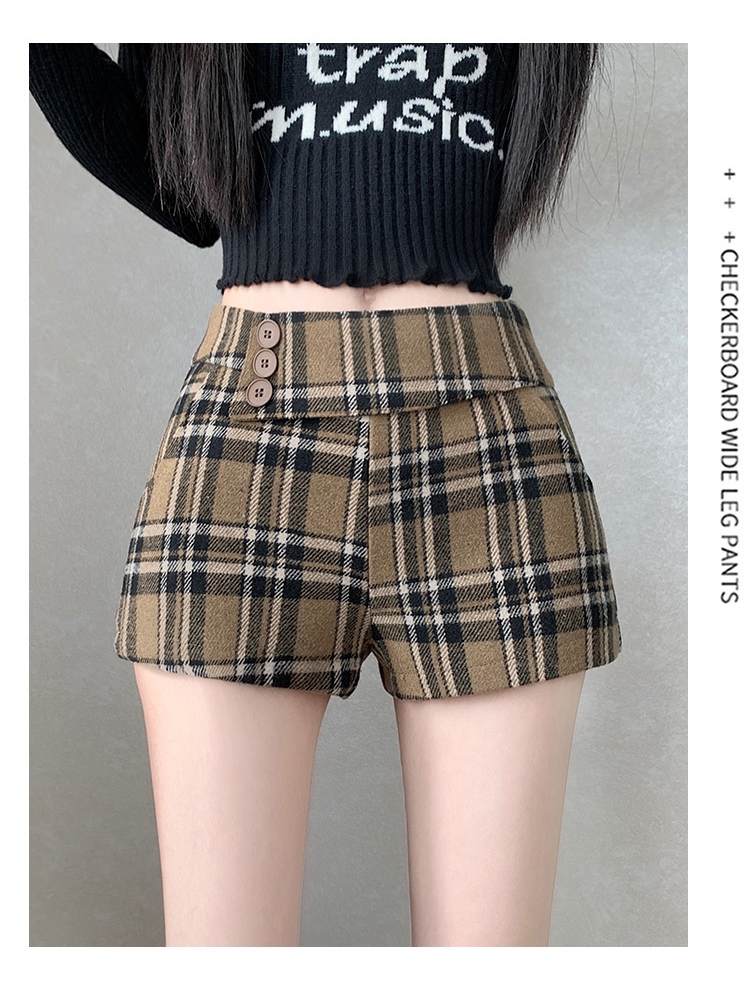 MY14750# 新款复古新款撞色格纹低腰休闲裤女秋冬别致减龄显瘦辣妹短裤女裝貨源服裝批發