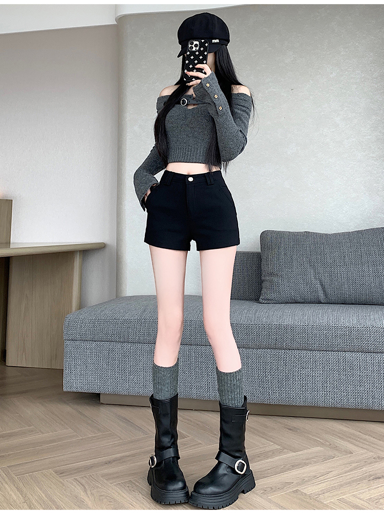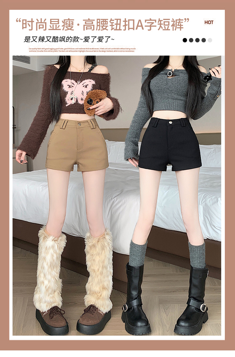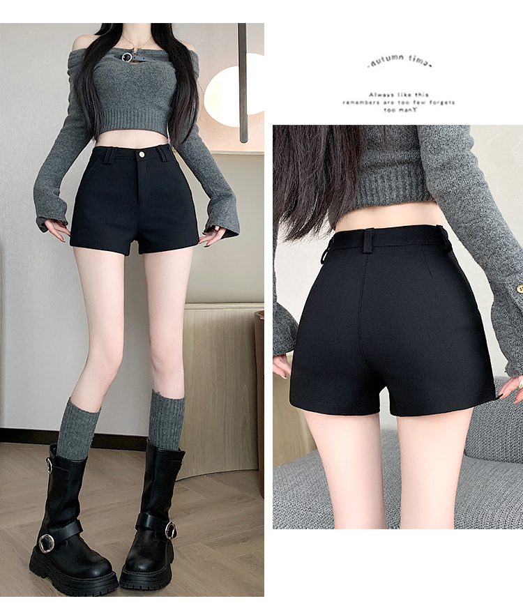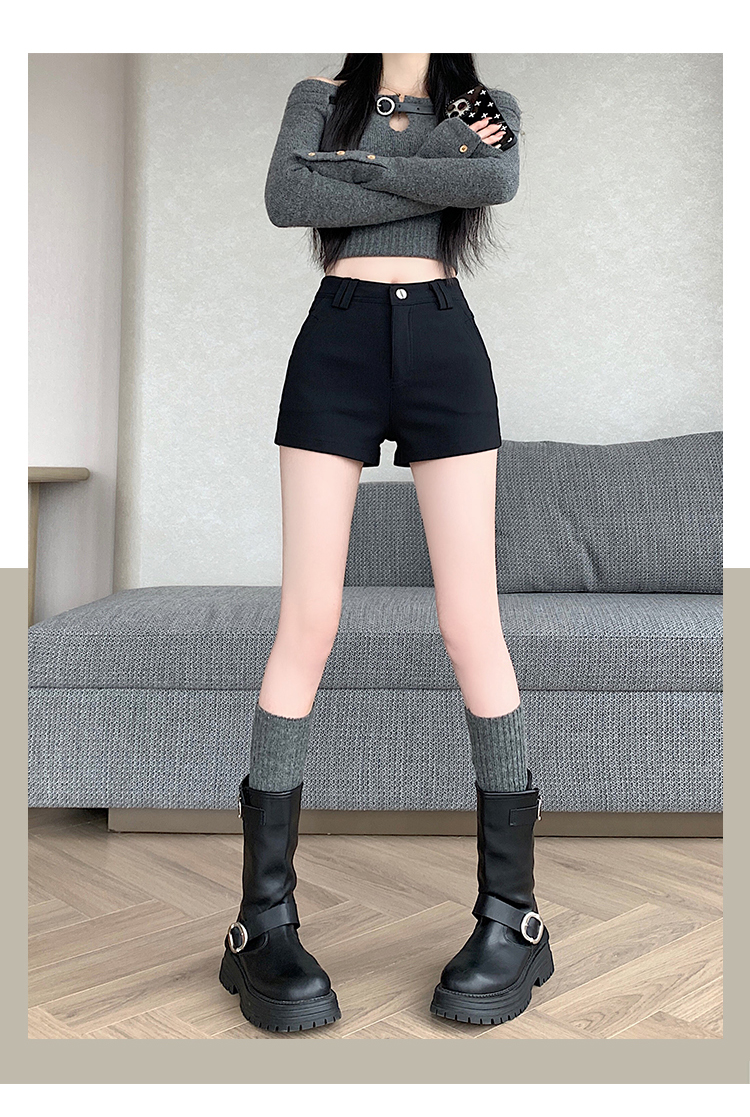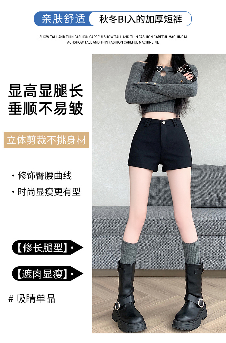 MY14752# 新款黑色高腰加厚短裤女辣妹弹力显瘦包臀紧身热裤靴裤女裝貨源服裝批發