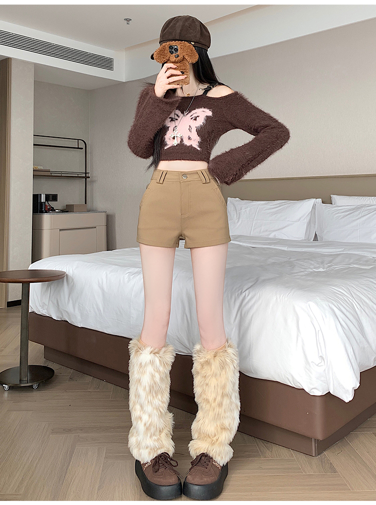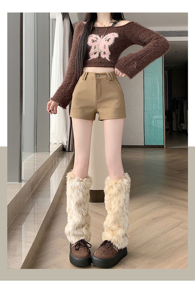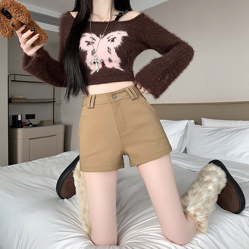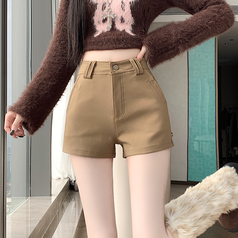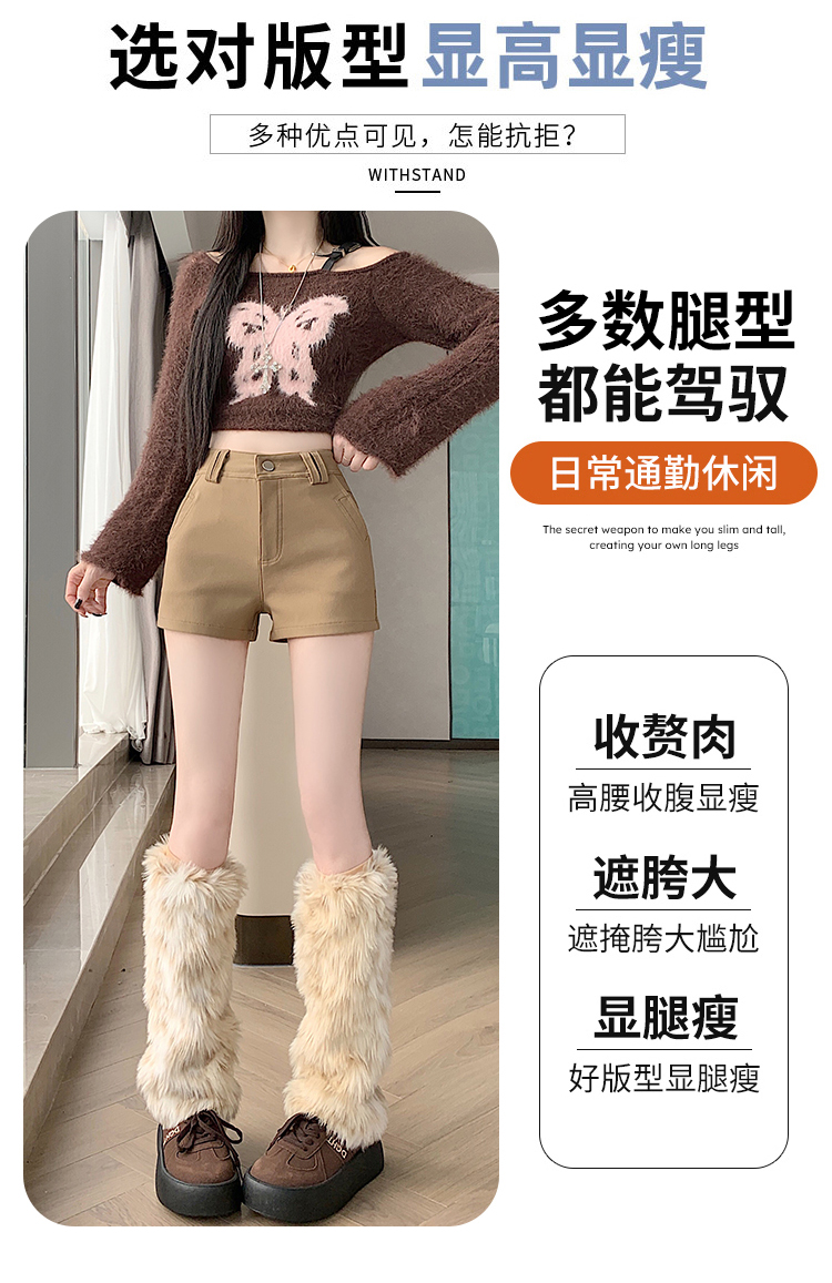 MY14752# 新款黑色高腰加厚短裤女辣妹弹力显瘦包臀紧身热裤靴裤女裝貨源服裝批發