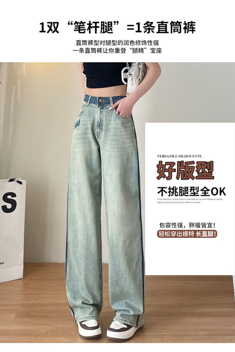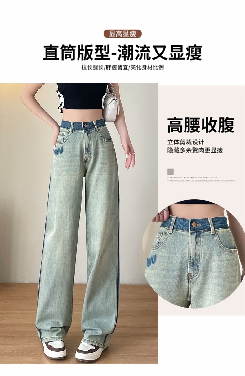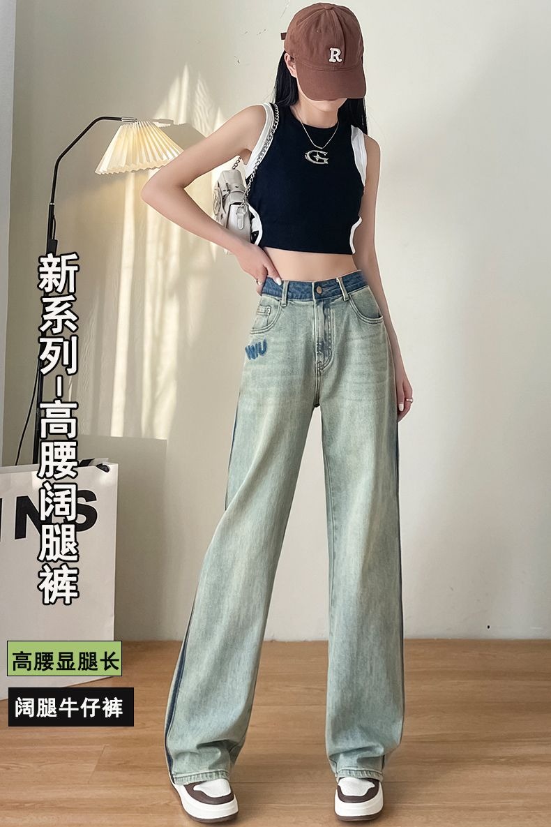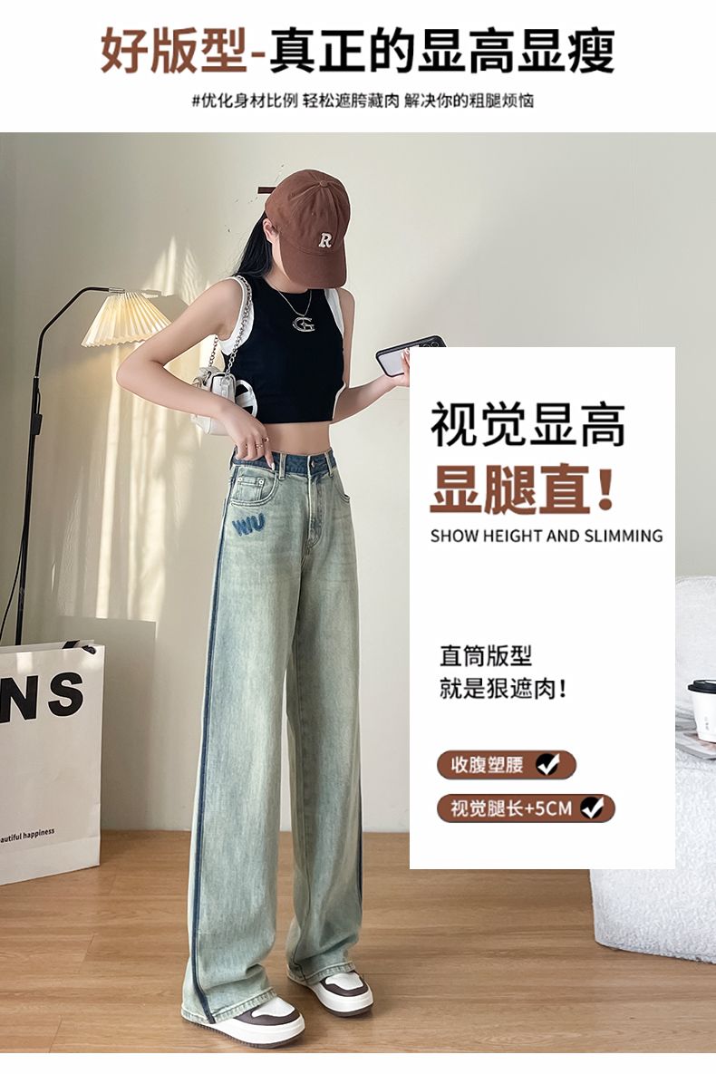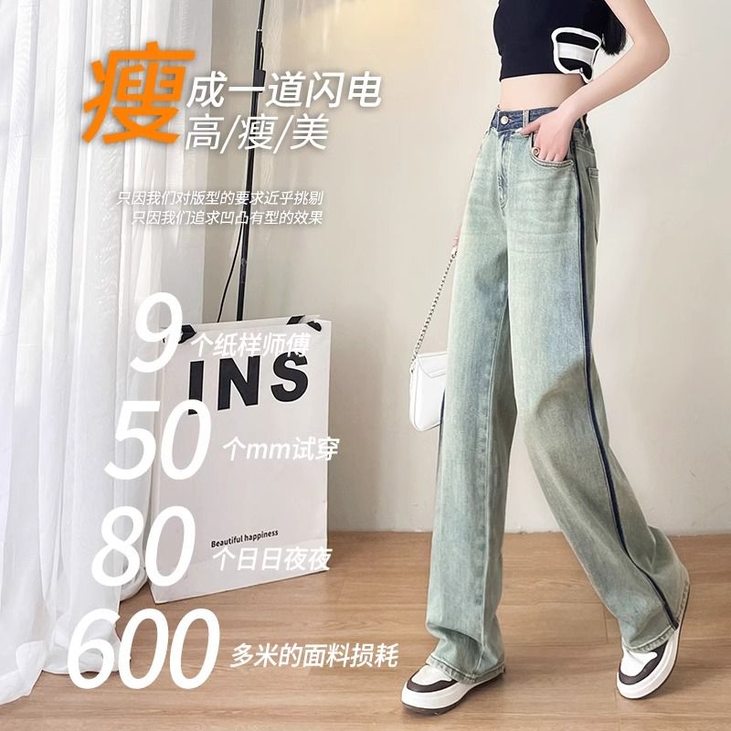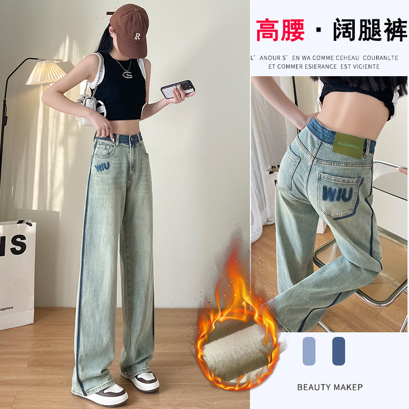 MY14775# 高腰窄版直筒牛仔裤女加绒新款垂感宽松阔腿拖地裤子女裝貨源服裝批發